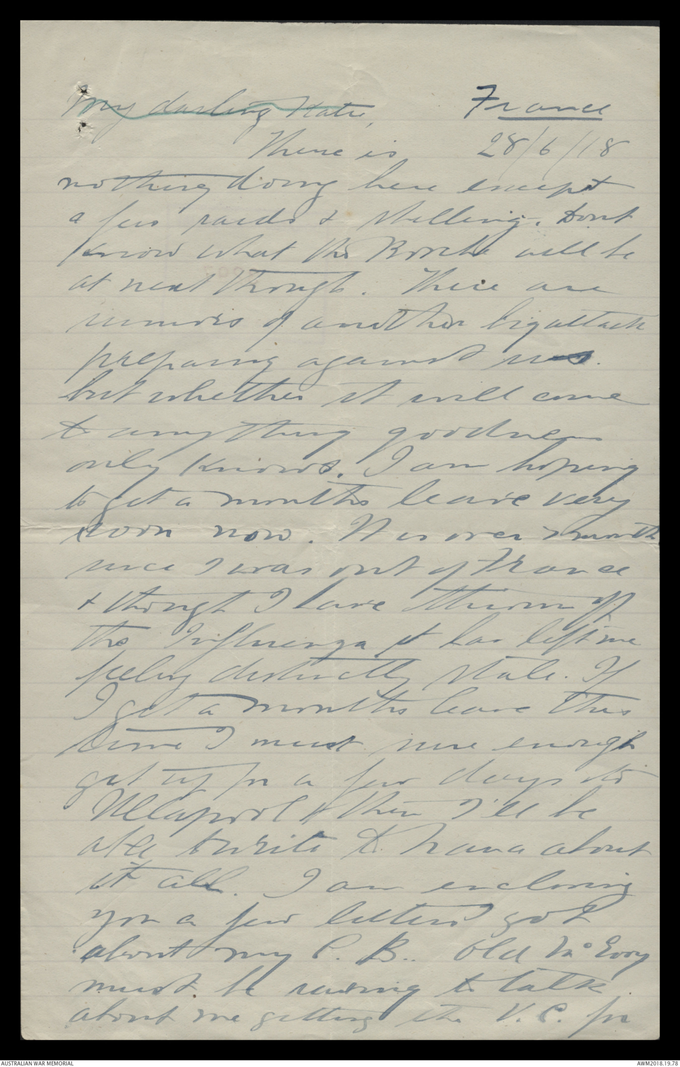 Letters from Harold Edward 'Pompey' Elliott to his family June 1918 - October 1918 - Part 4