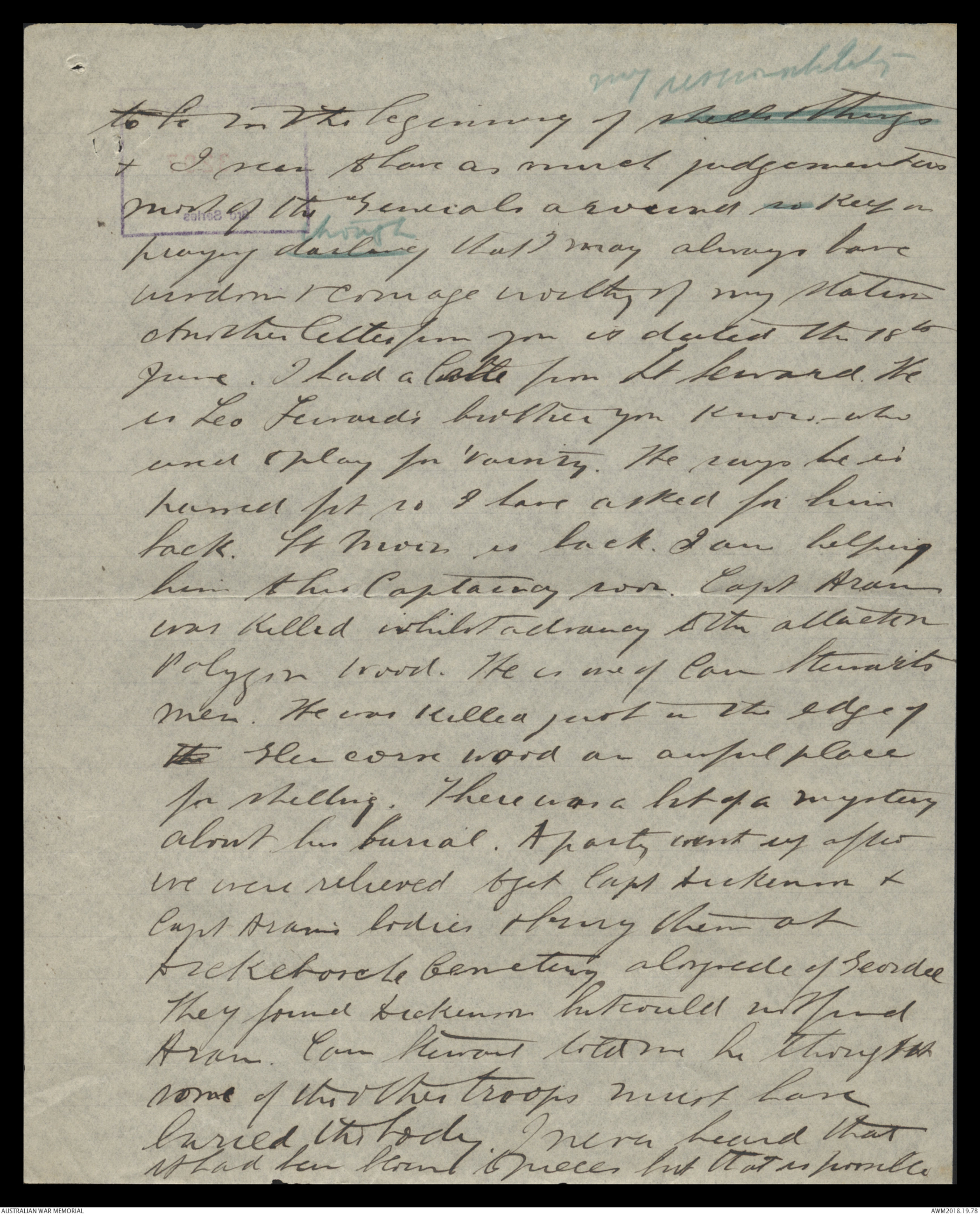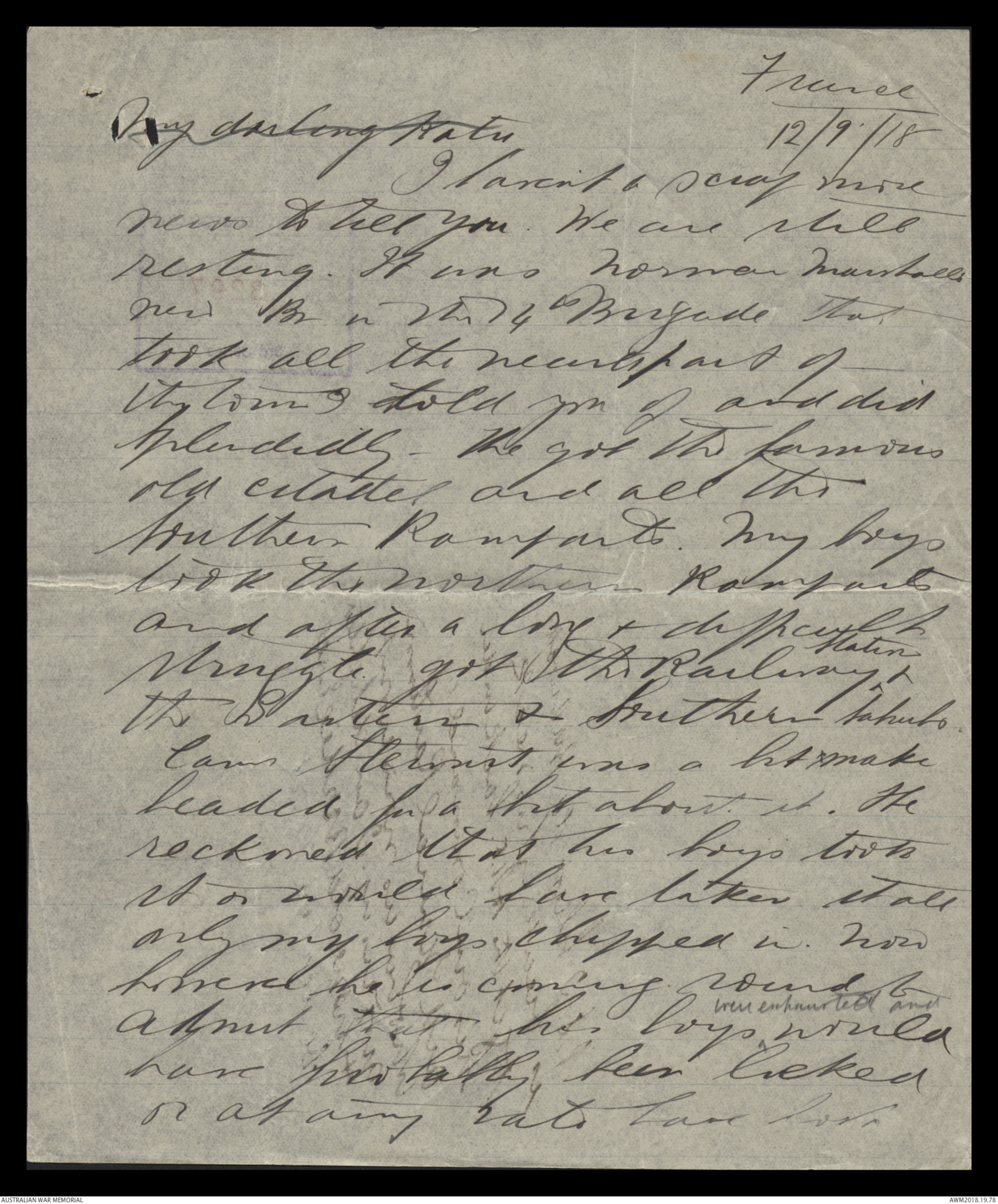 Letters from Harold Edward 'Pompey' Elliott to his family June 1918 - October 1918 - Part 8