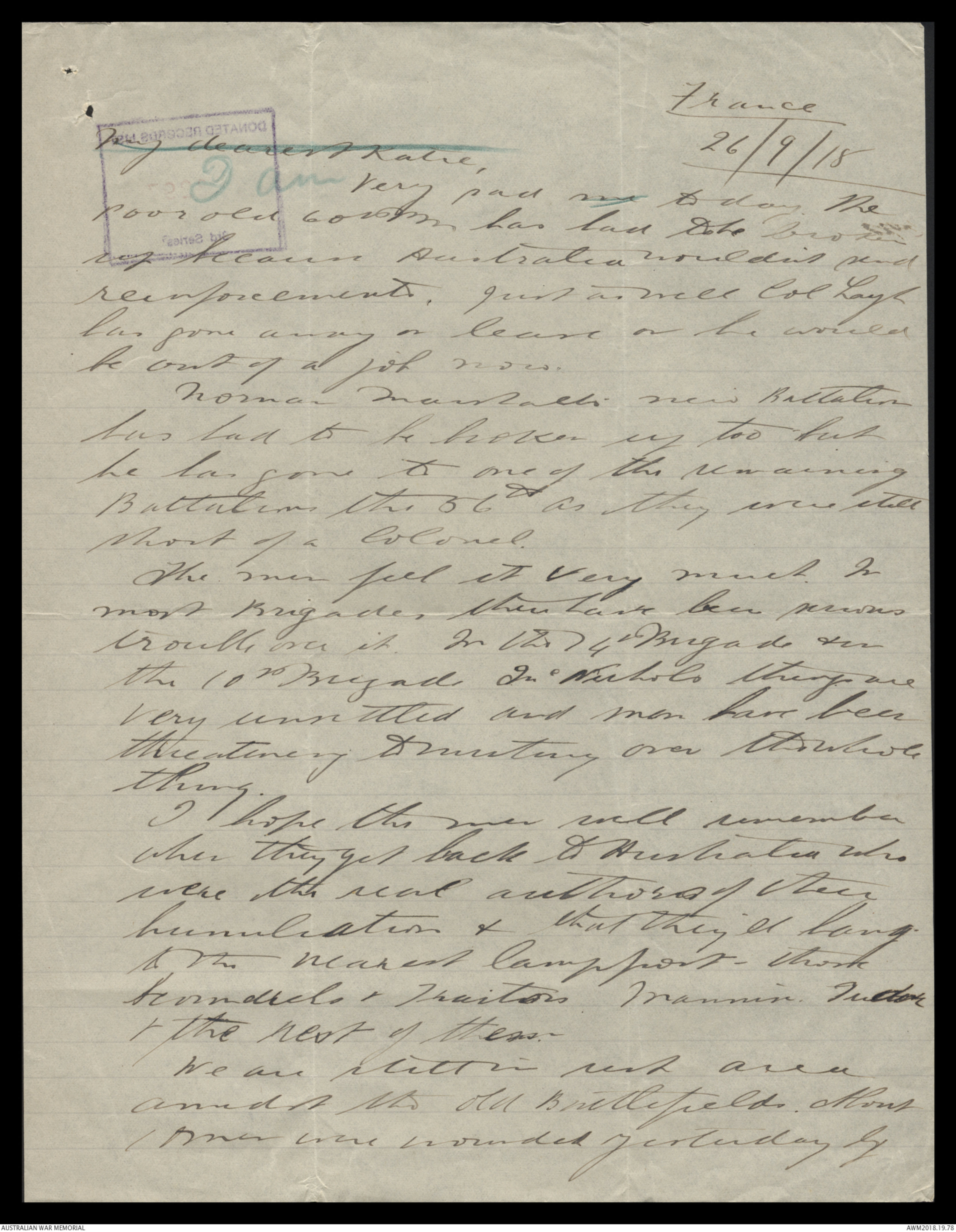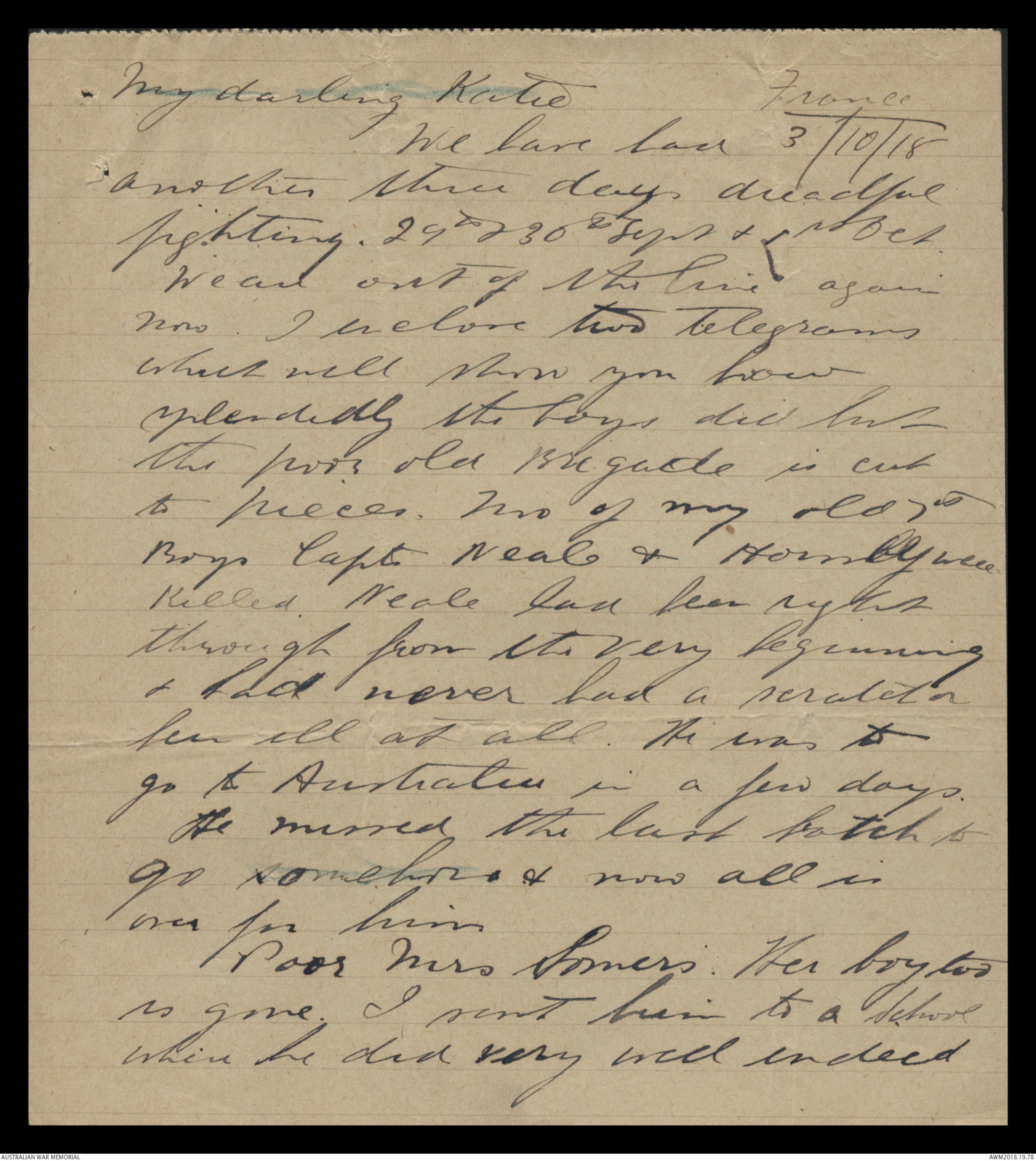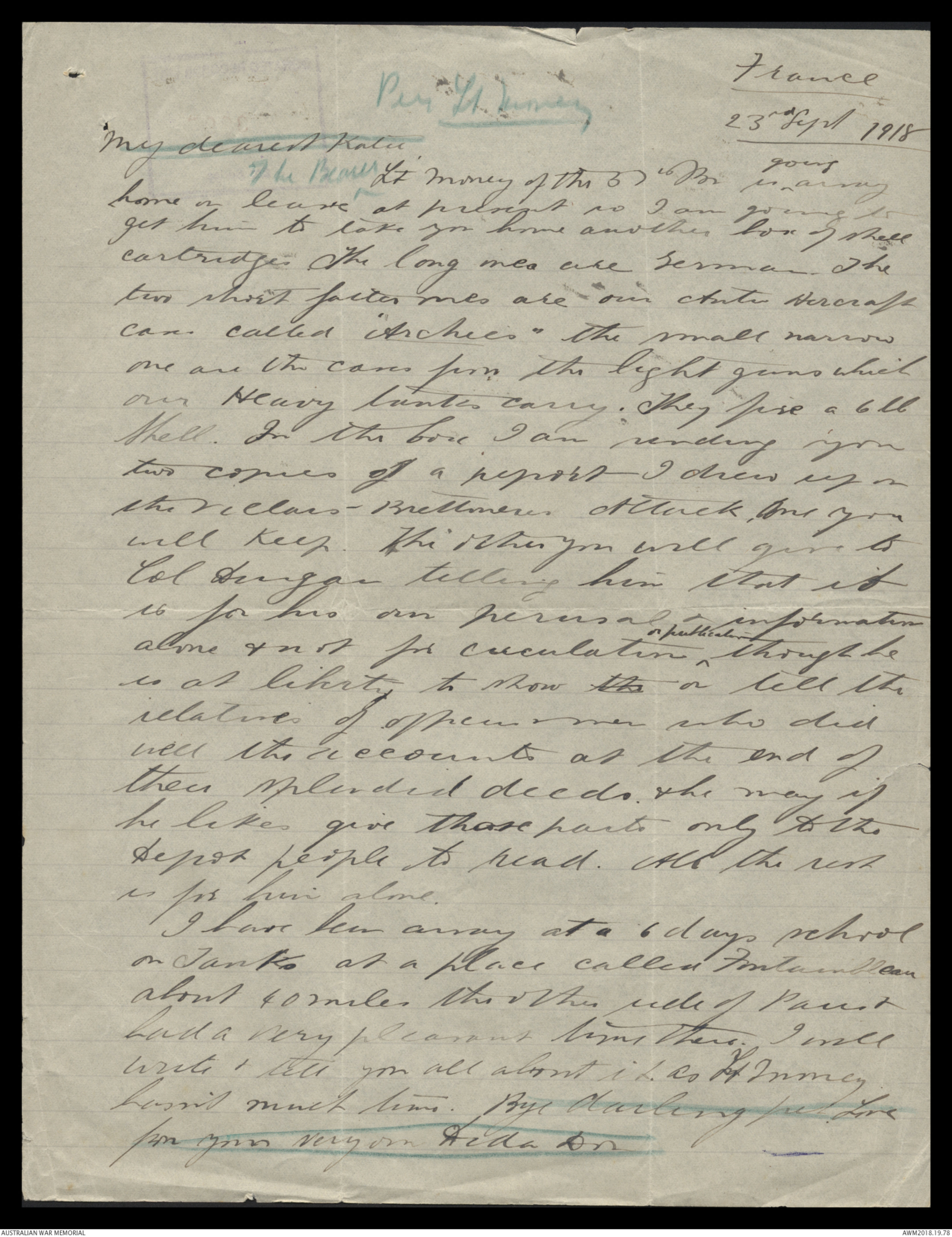 Letters from Harold Edward 'Pompey' Elliott to his family June 1918 - October 1918 - Part 10