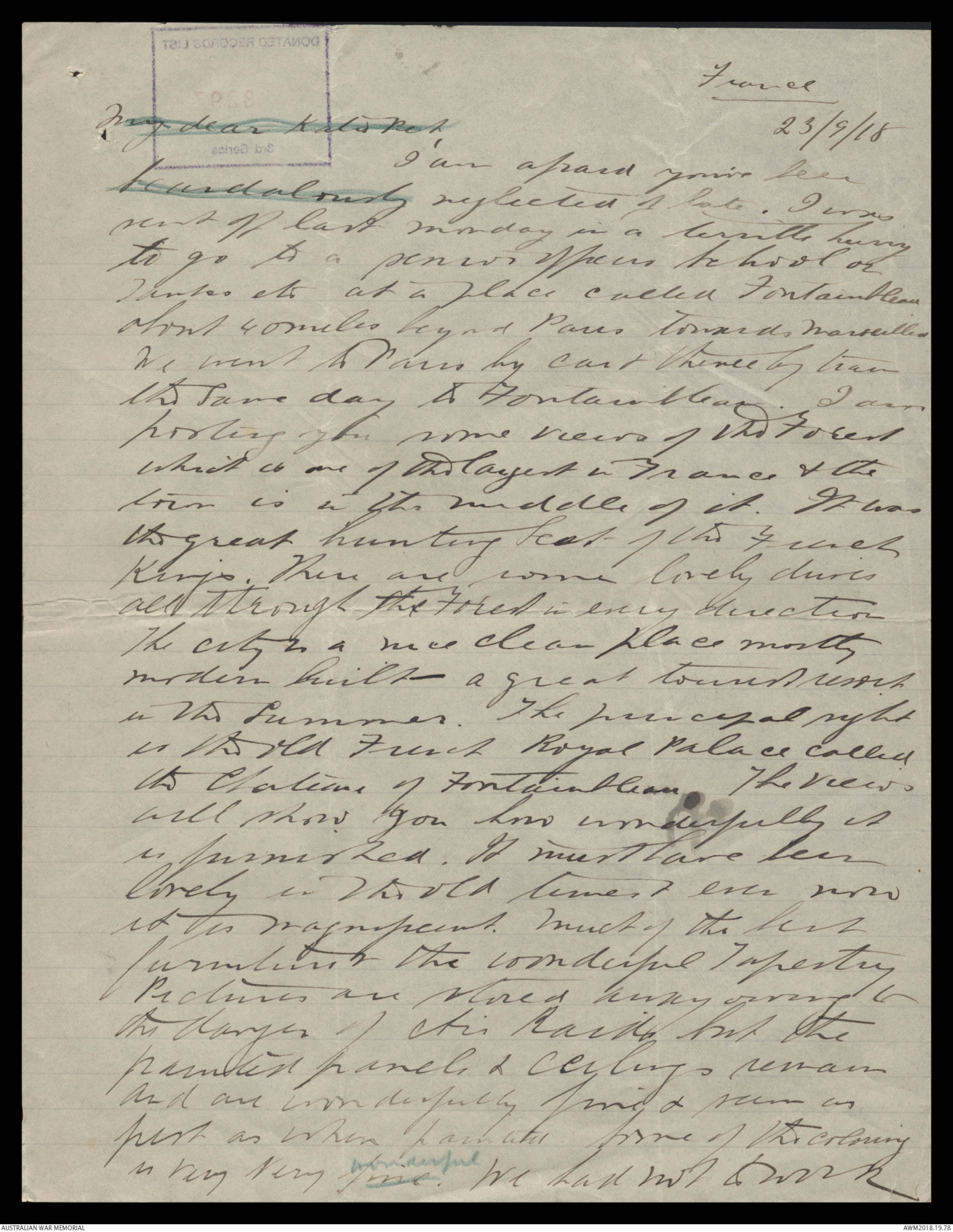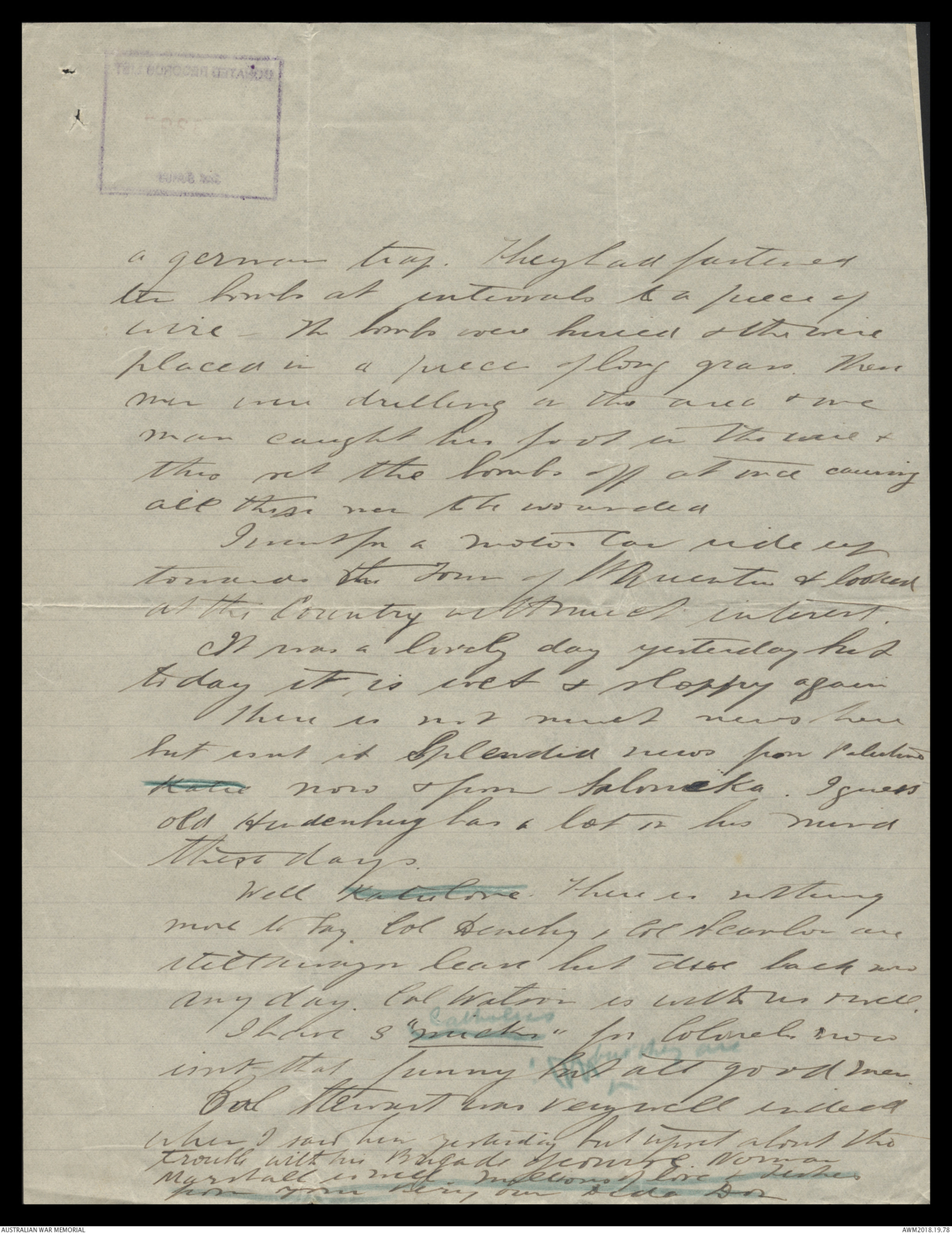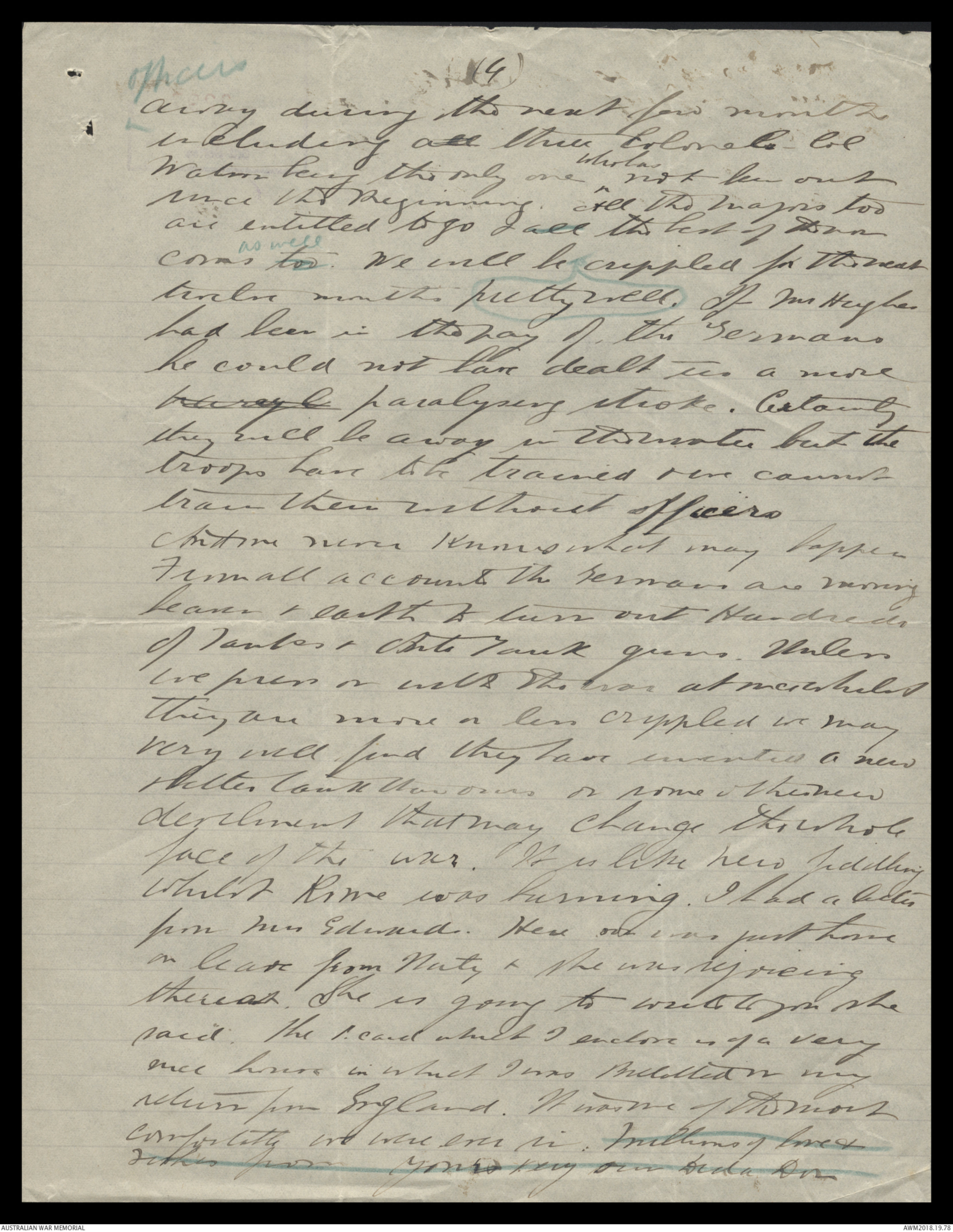 Letters from Harold Edward 'Pompey' Elliott to his family June 1918 - October 1918 - Part 10