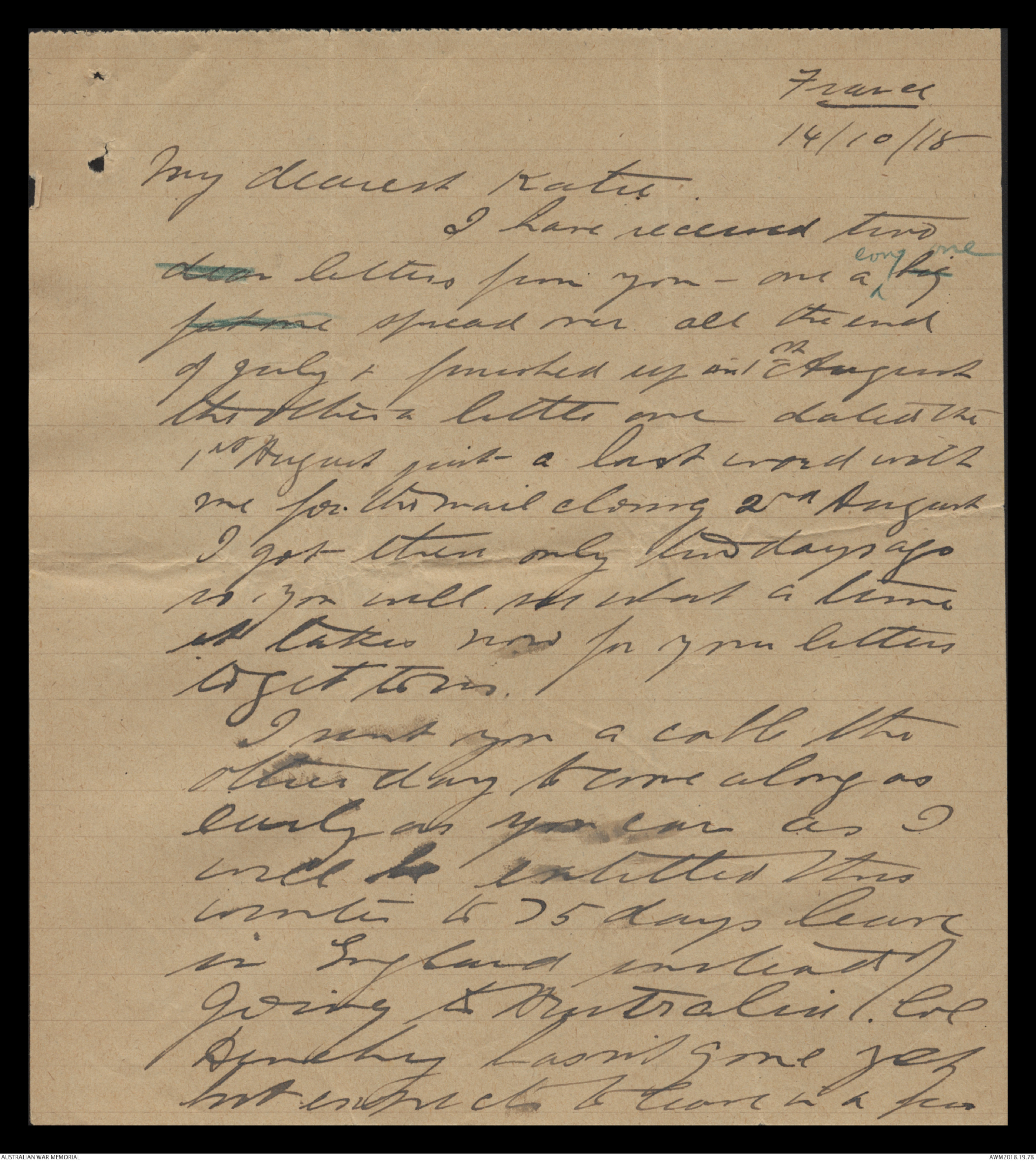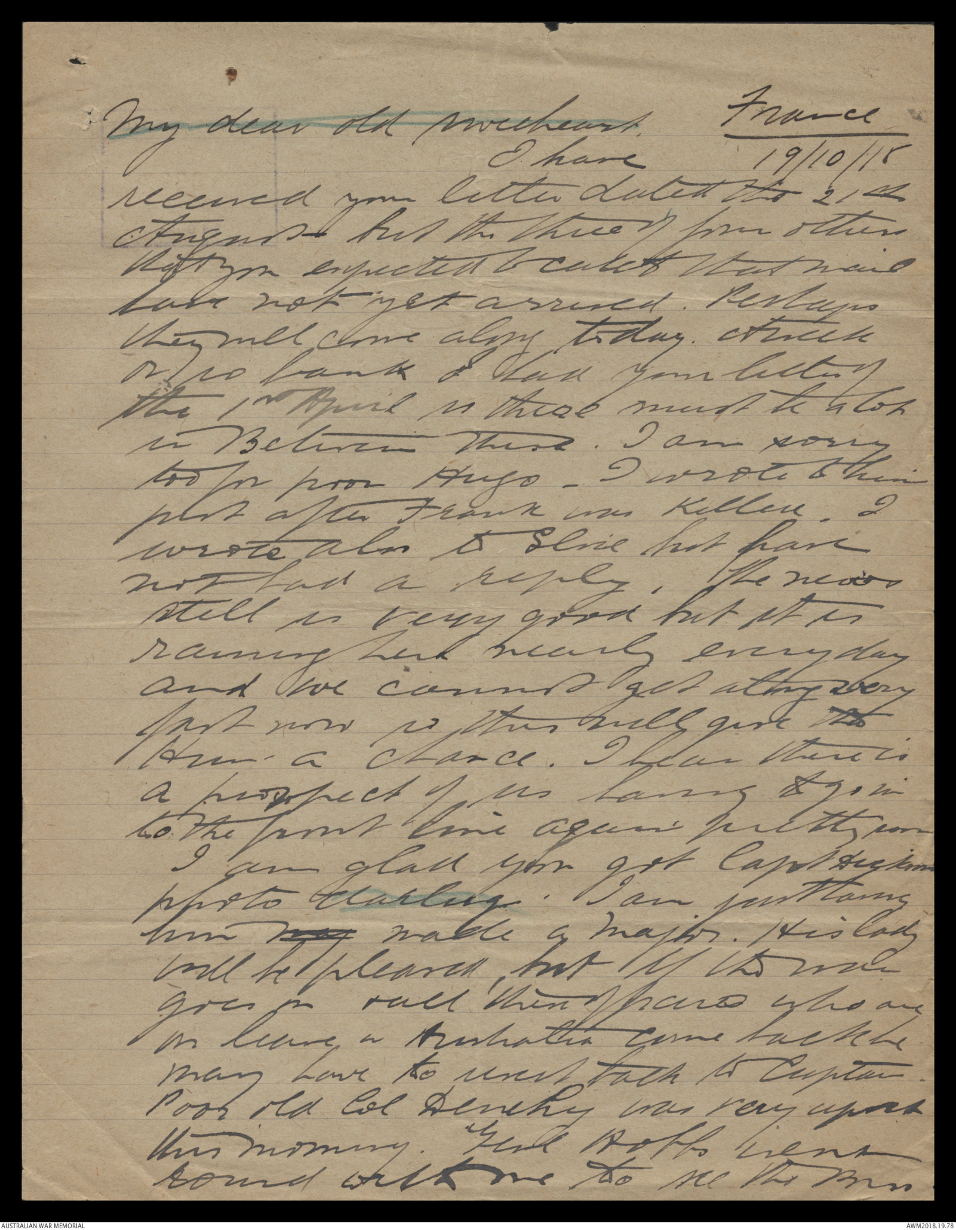 Letters from Harold Edward 'Pompey' Elliott to his family June 1918 - October 1918 - Part 11