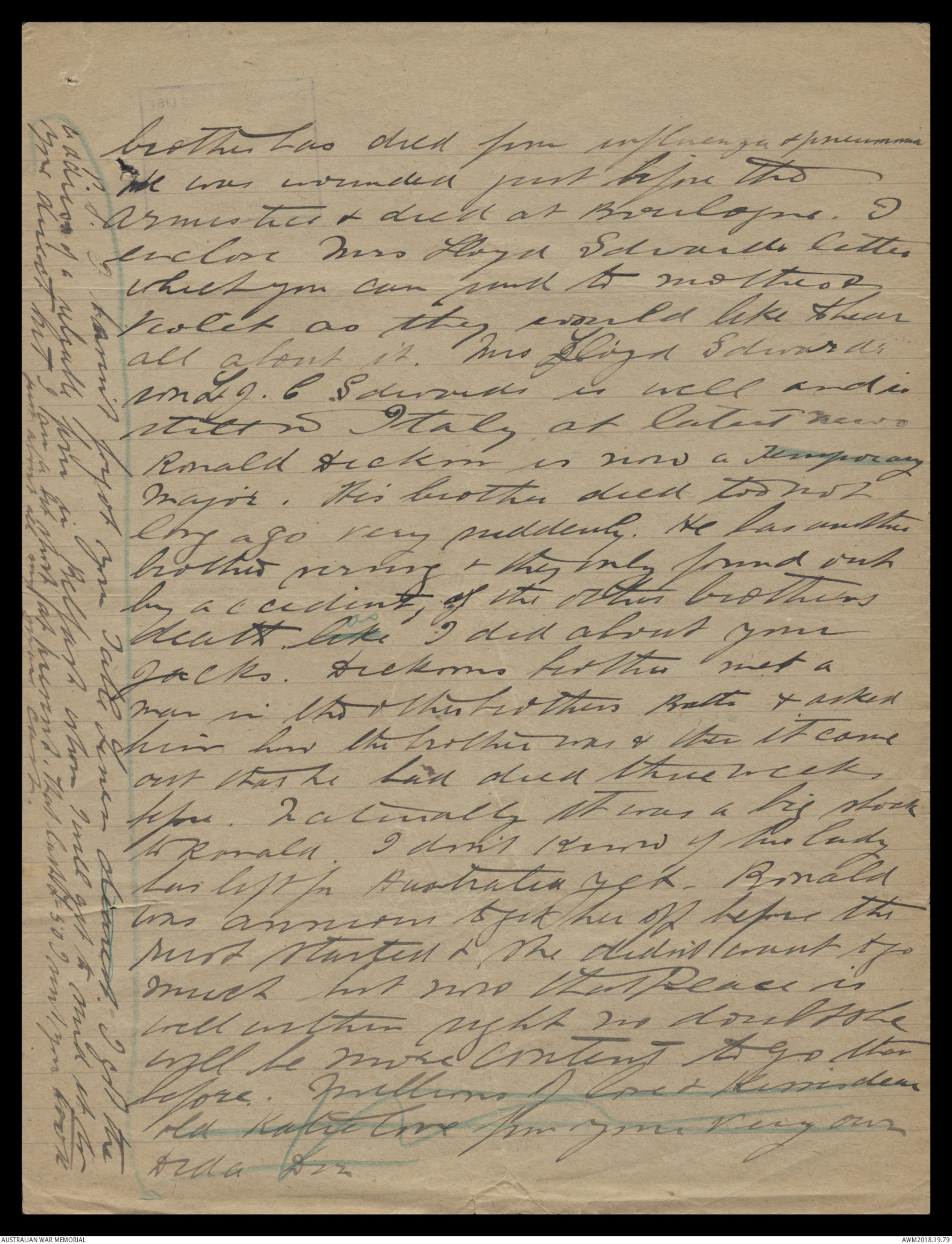 enclose Mrs Loyd Ediaid letter