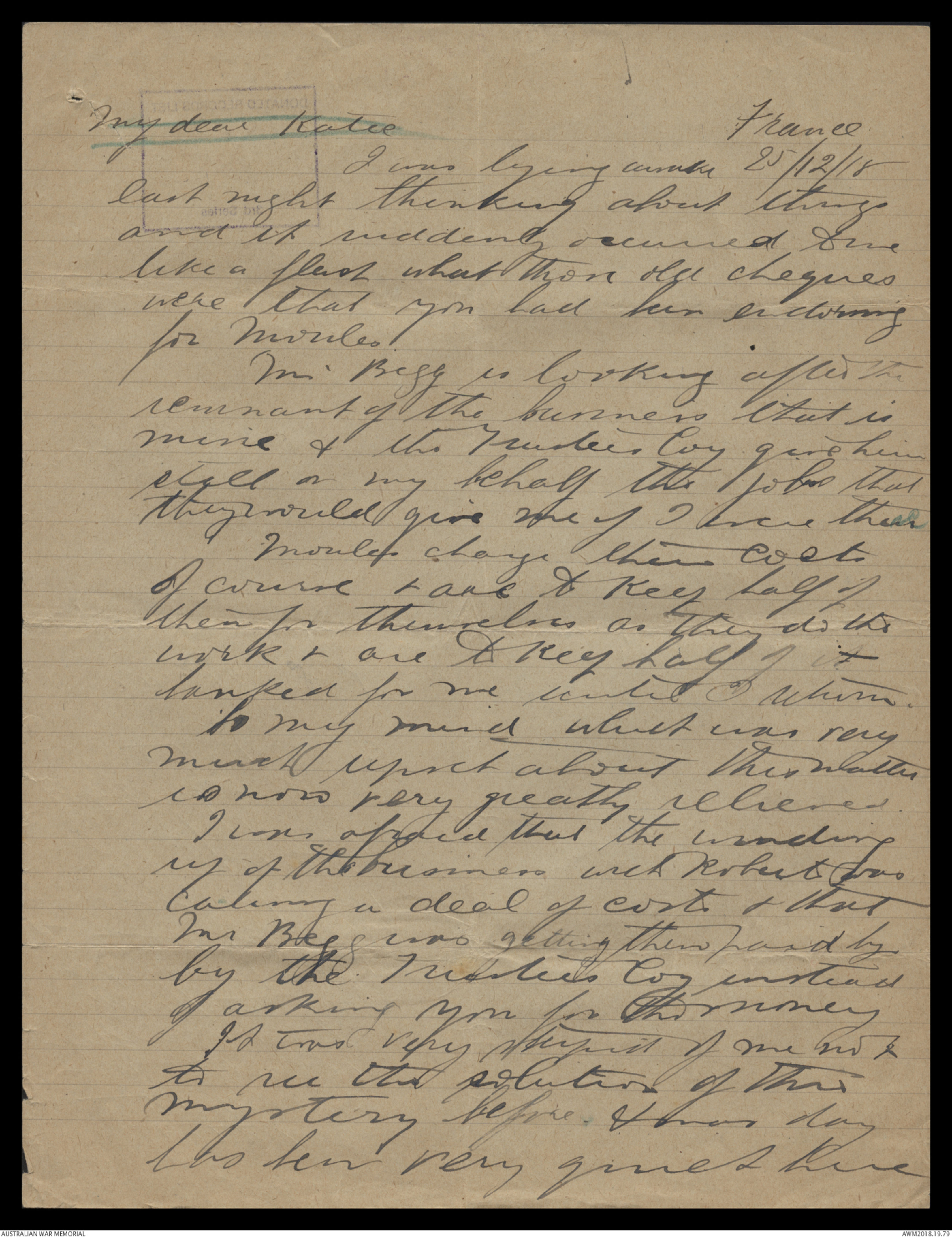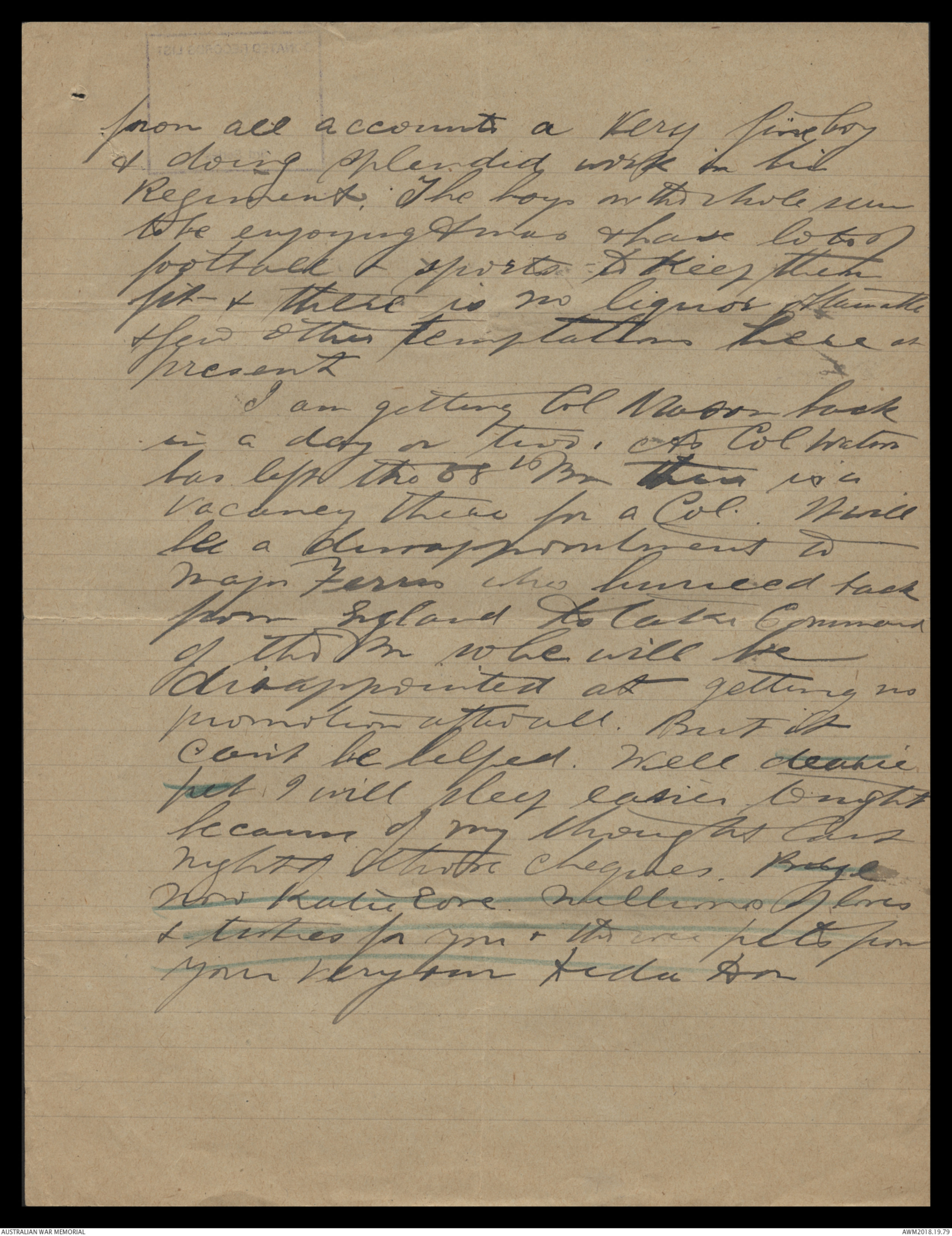 Letters from Harold Edward 'Pompey' Elliot to his family, November 1918 - February 1919 - Part 5