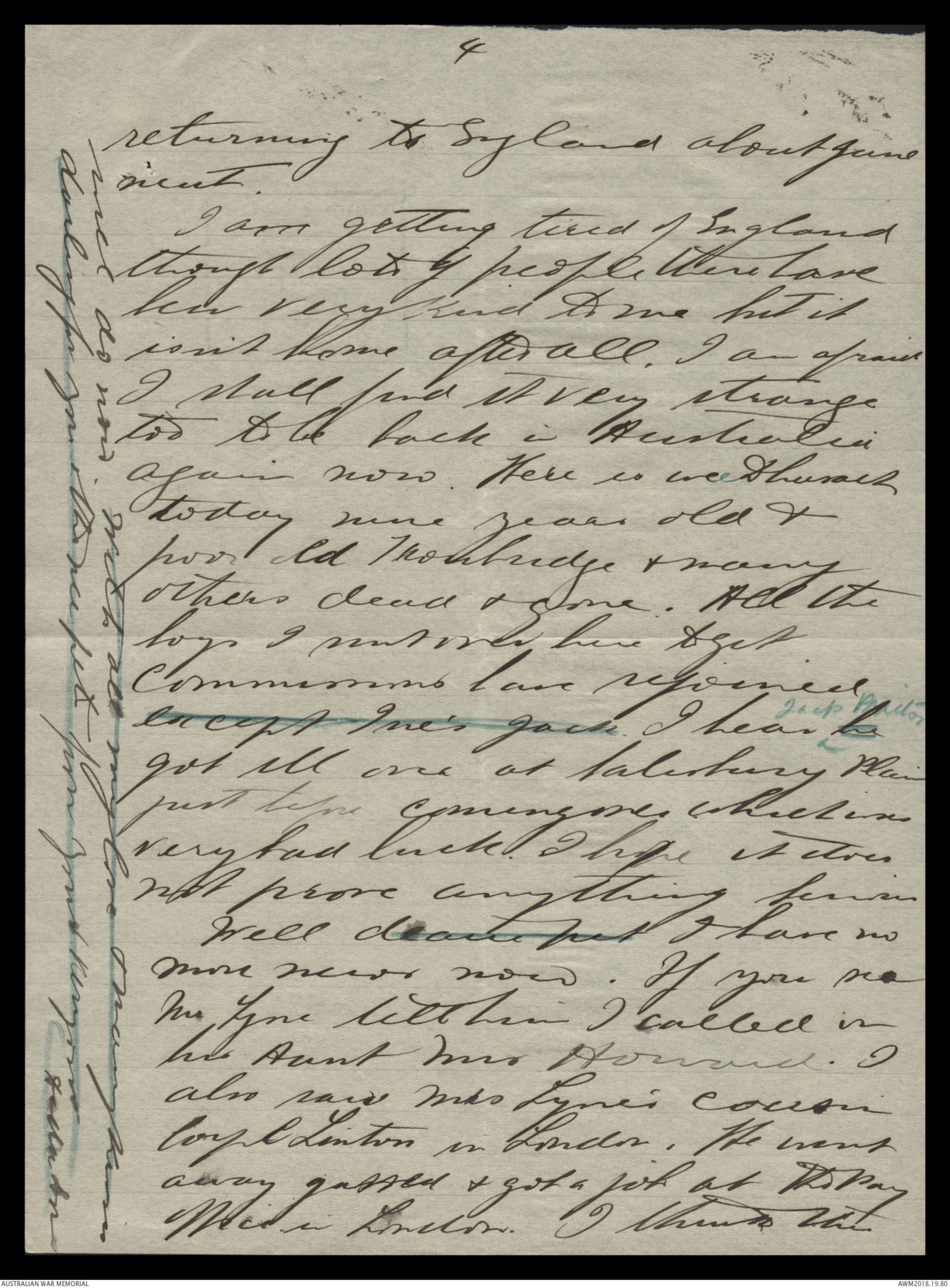 returning to England about June
