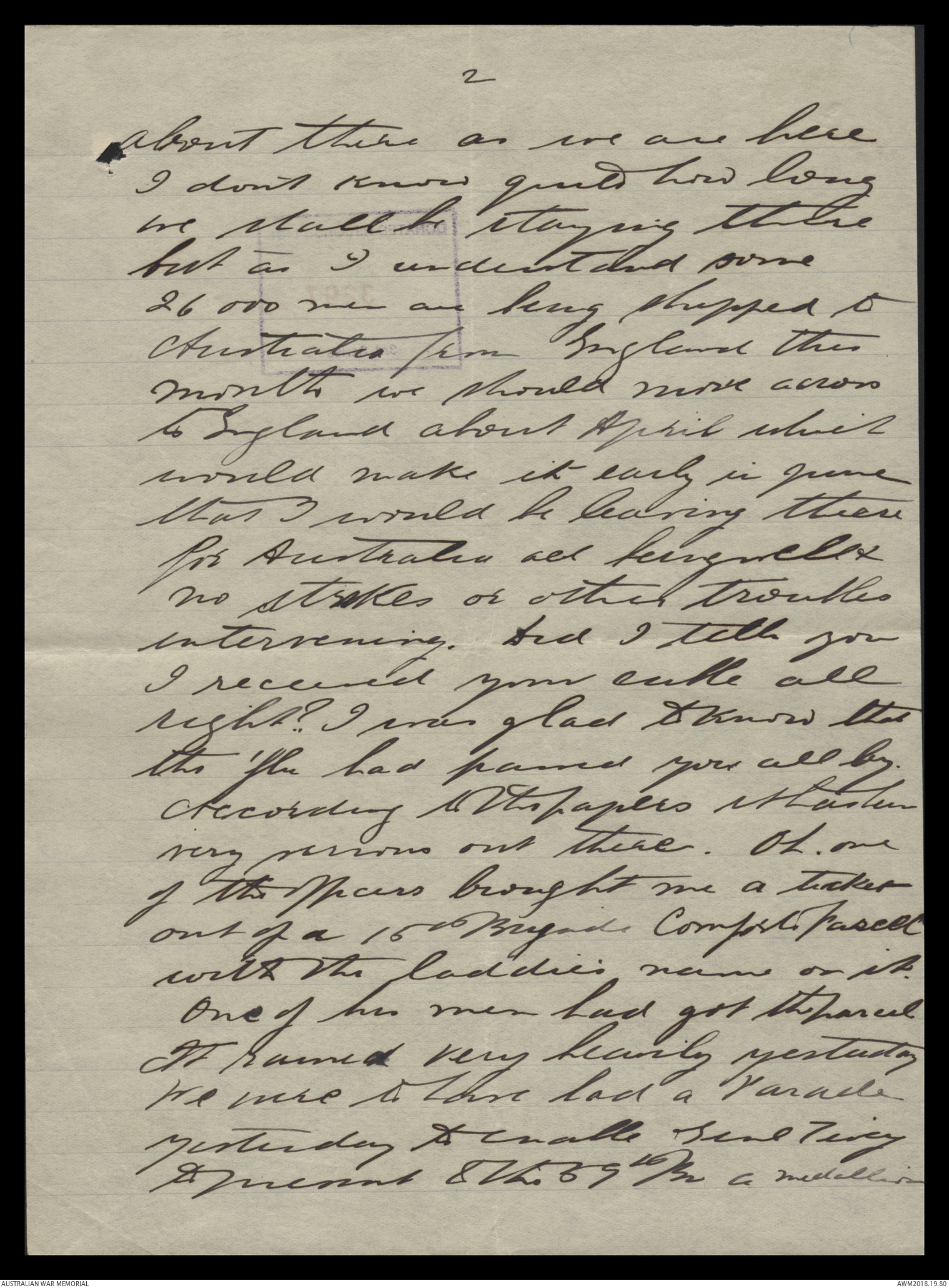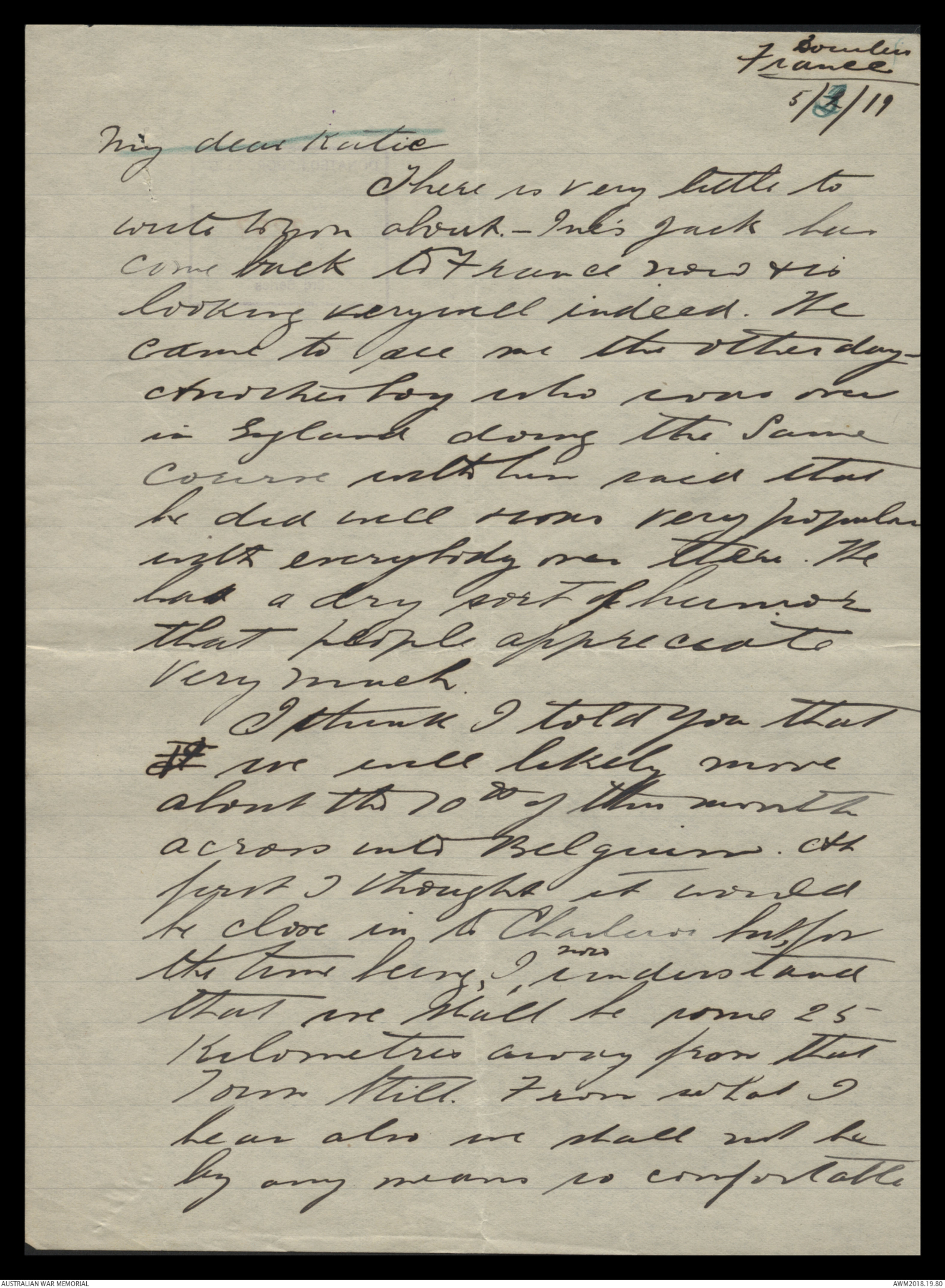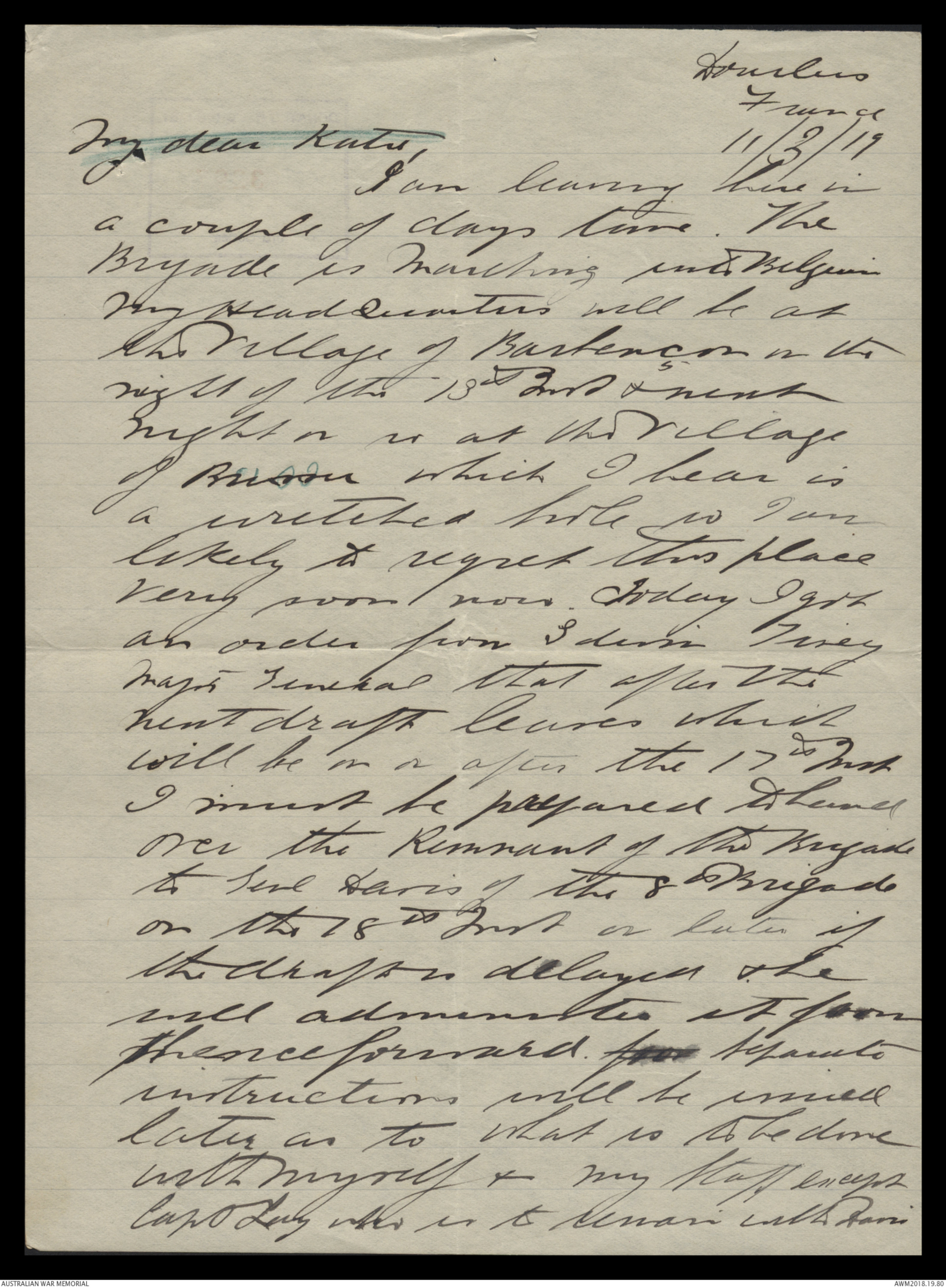 Letters from Harold Edward 'Pompey' Elliott to his family, March 1919 - May 1919 - Part 1