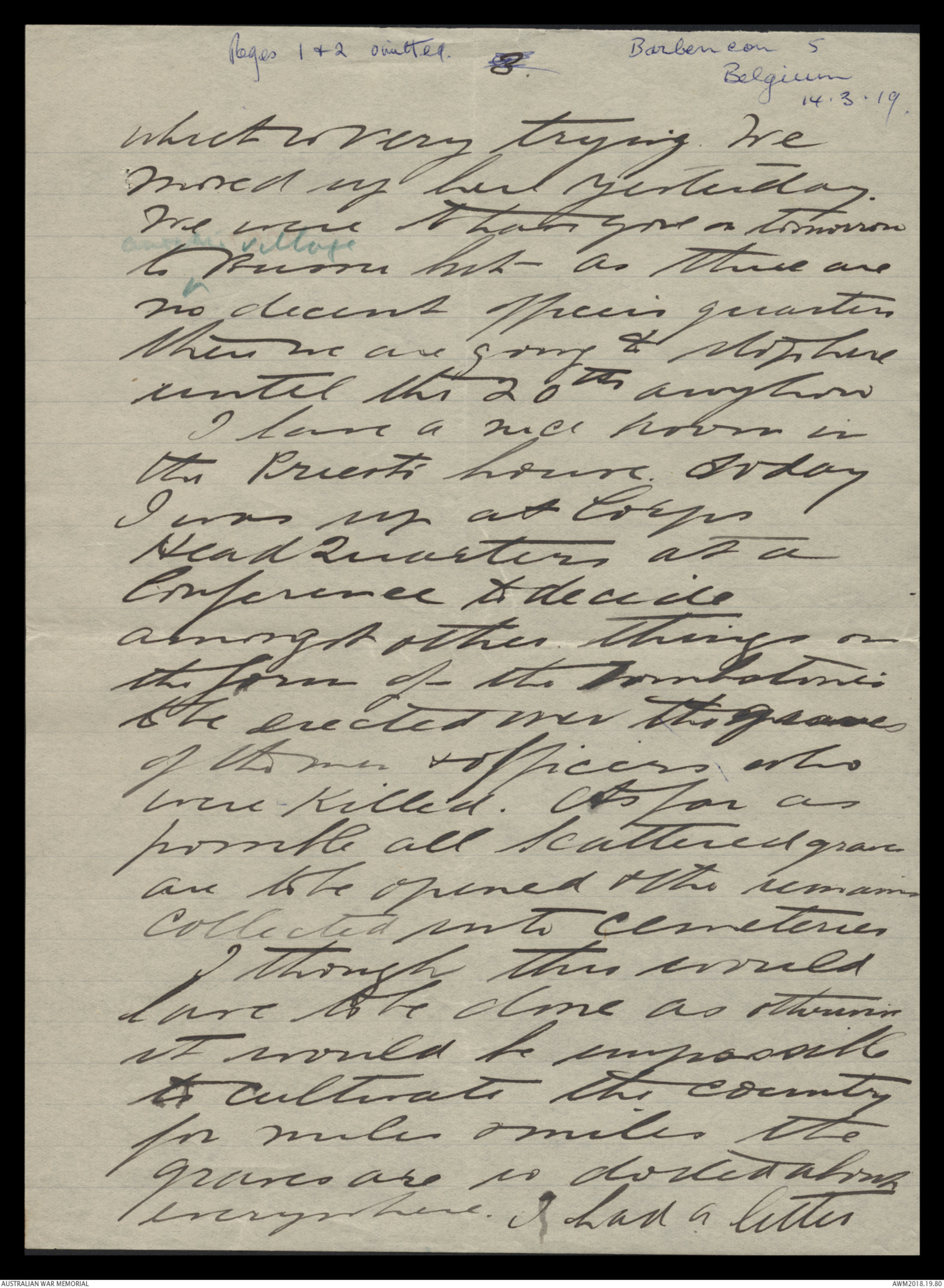 Letters from Harold Edward 'Pompey' Elliott to his family, March 1919 - May 1919 - Part 2