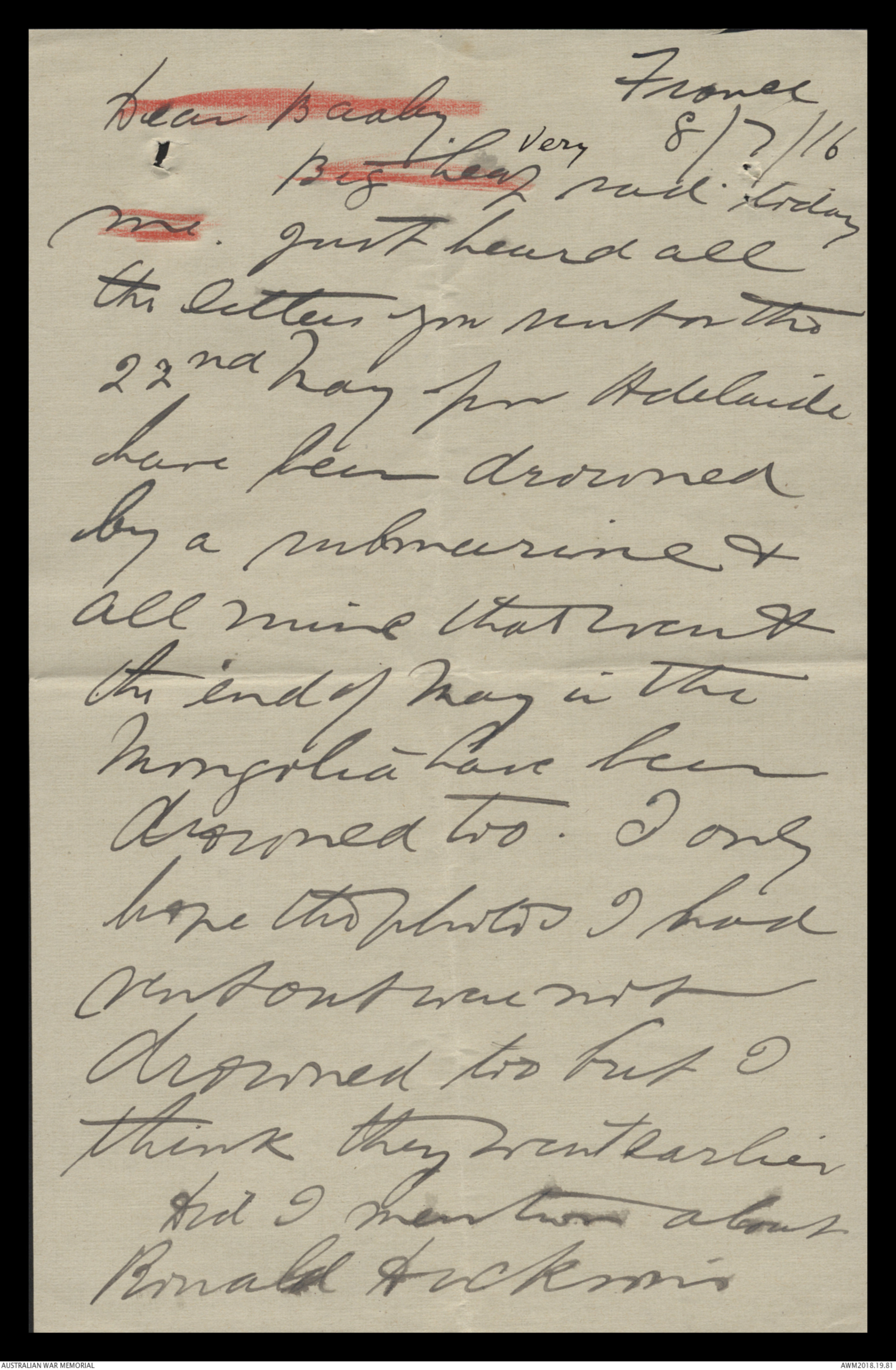 Letters from Harold Edward 'Pompey' Elliott to his sister-in-law, April 1915 - December 1916 - Part 3