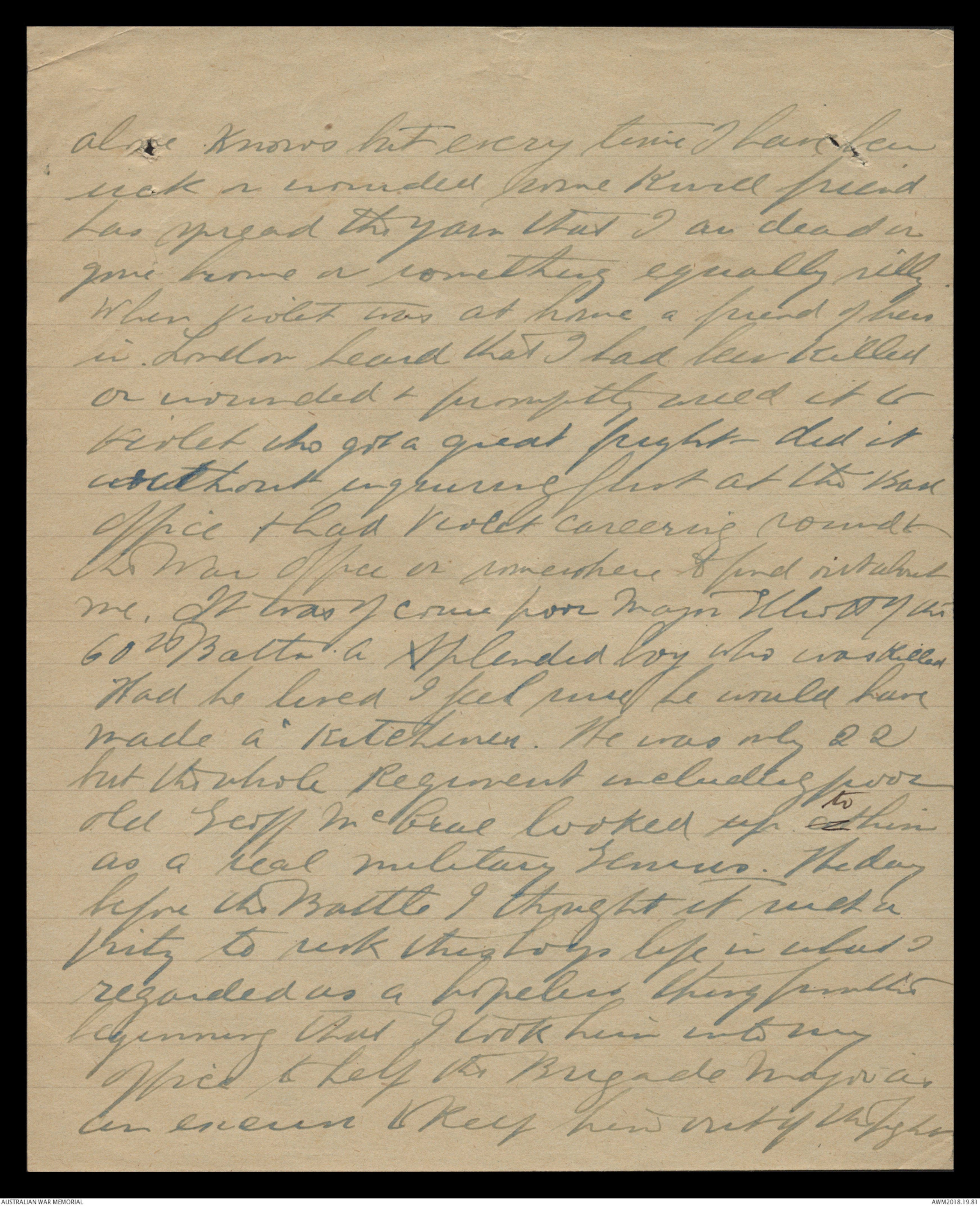 60th Battn A Splendid boy who was Killed