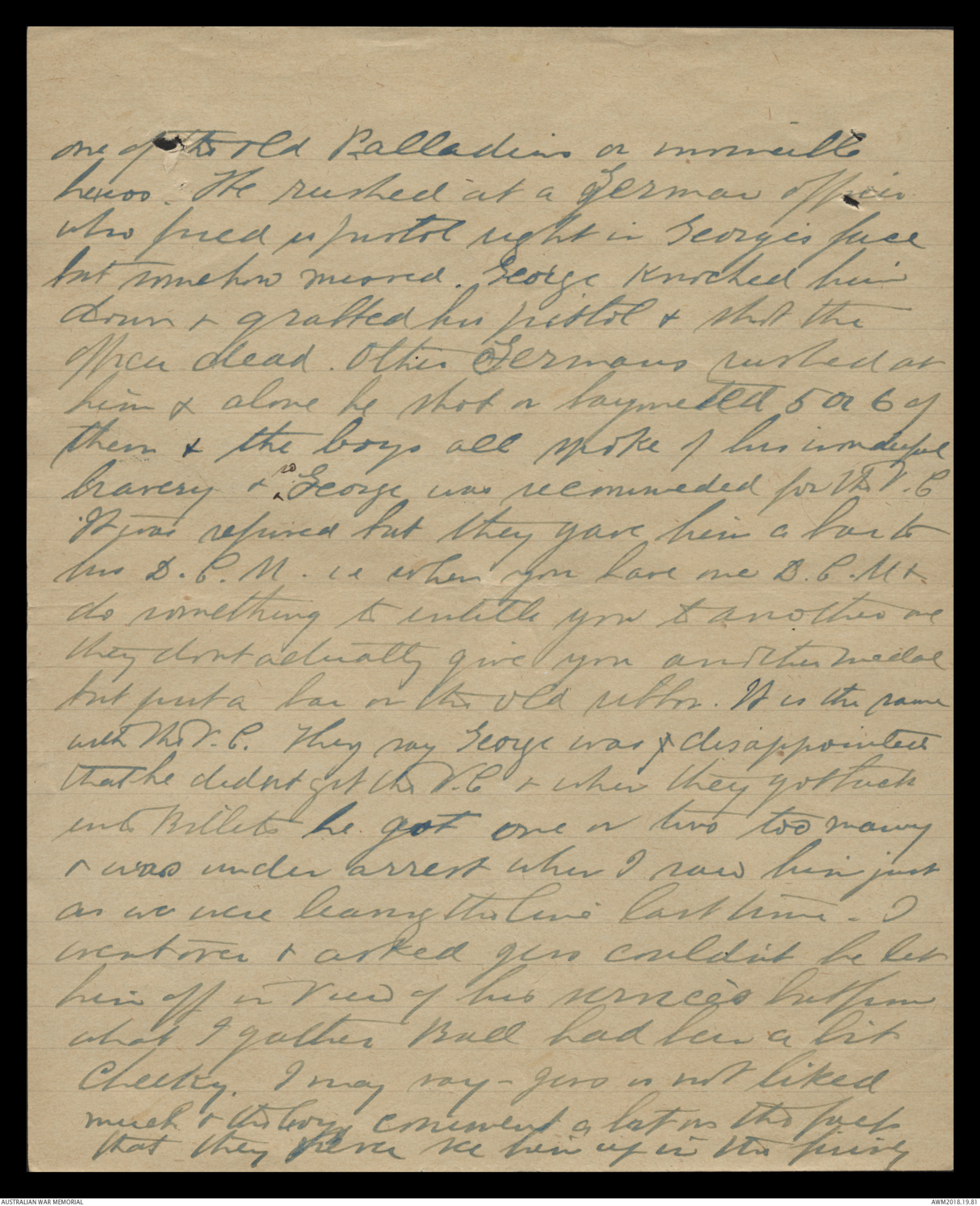 bravery & [[ so ]] George was recommeded for the V.C