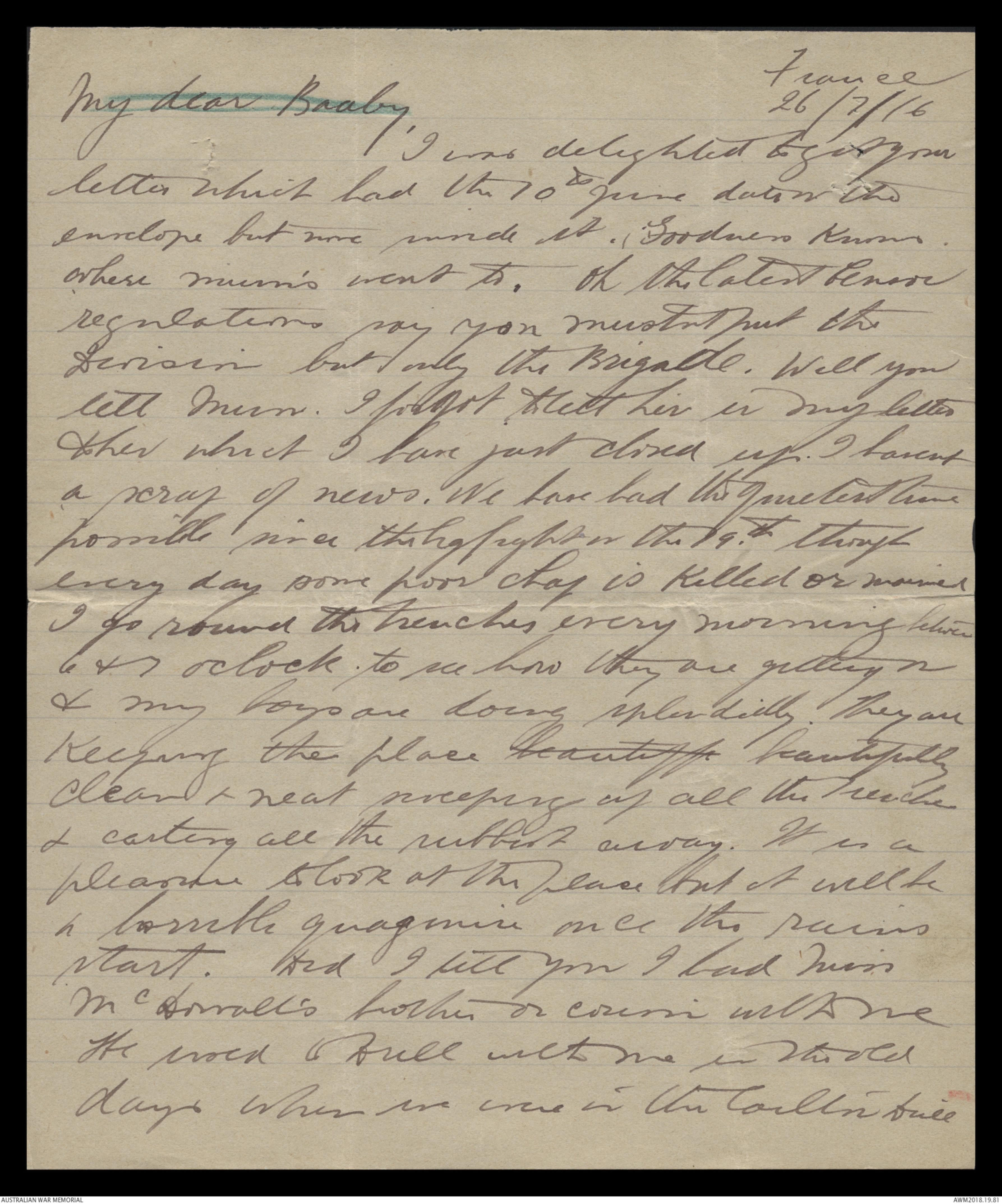 Letters from Harold Edward 'Pompey' Elliott to his sister-in-law, April 1915 - December 1916 - Part 4