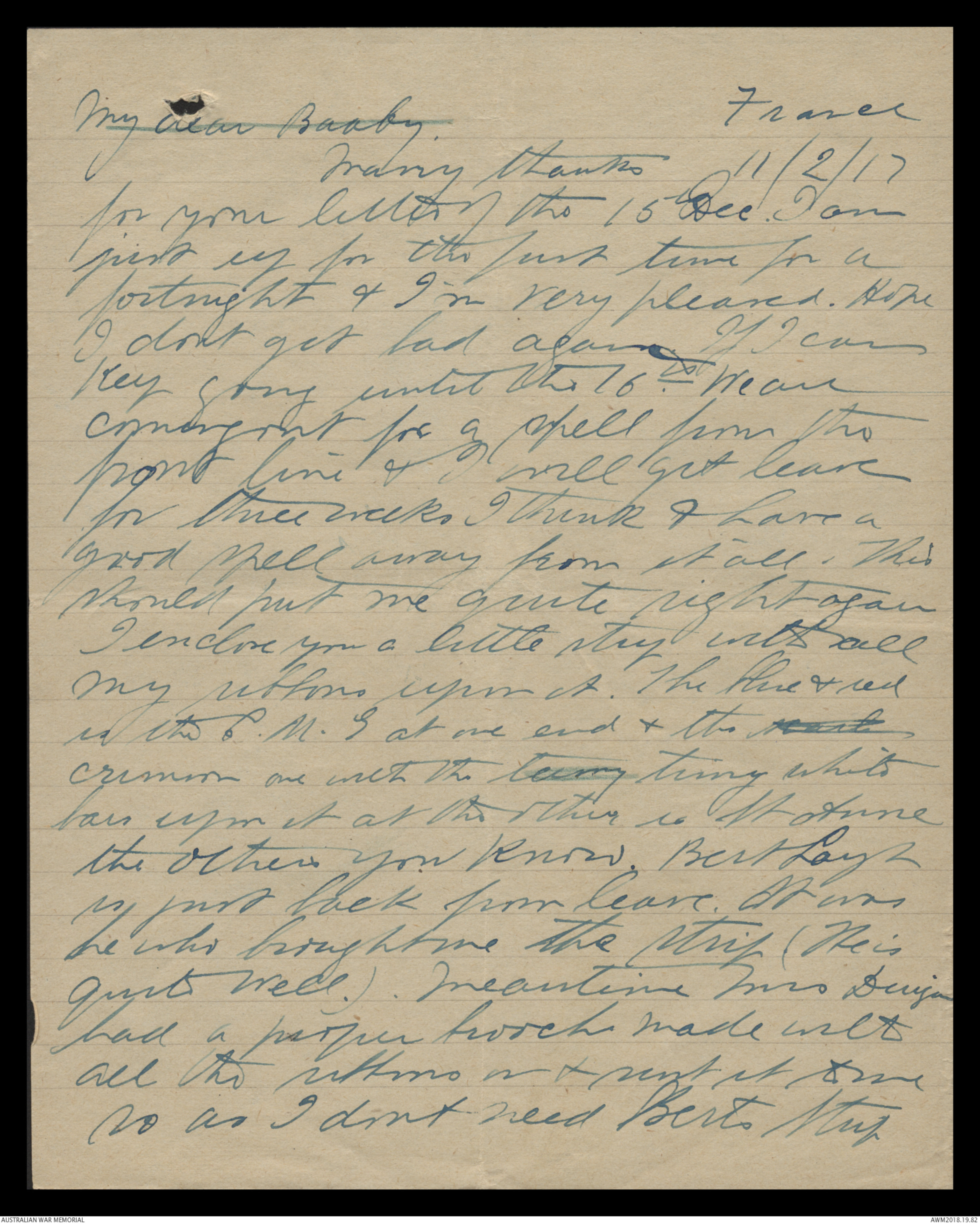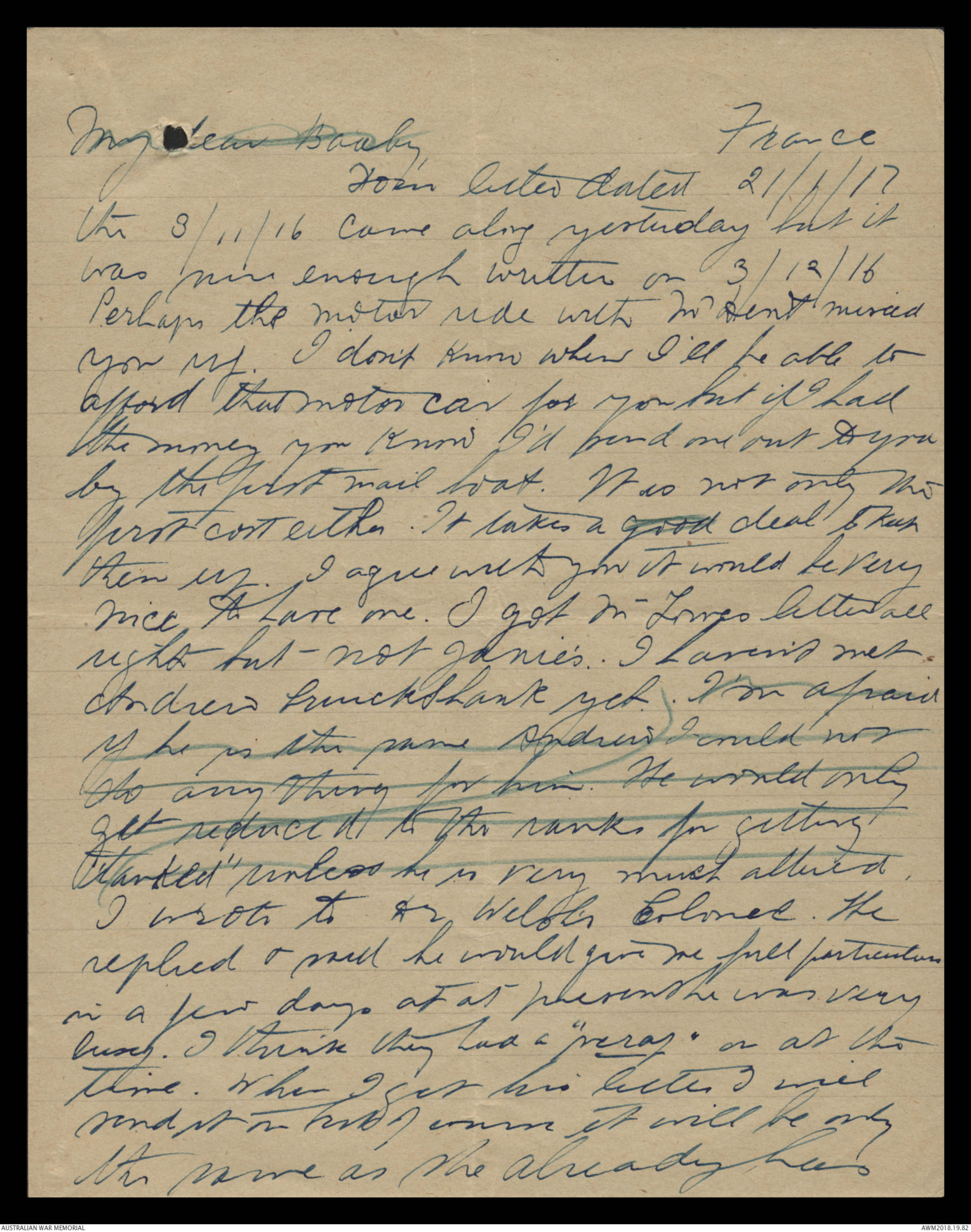 Letters from Harold Edward 'Pompey' Elliott to his sister-in-law, January 1917 - April 1919 - Part 1