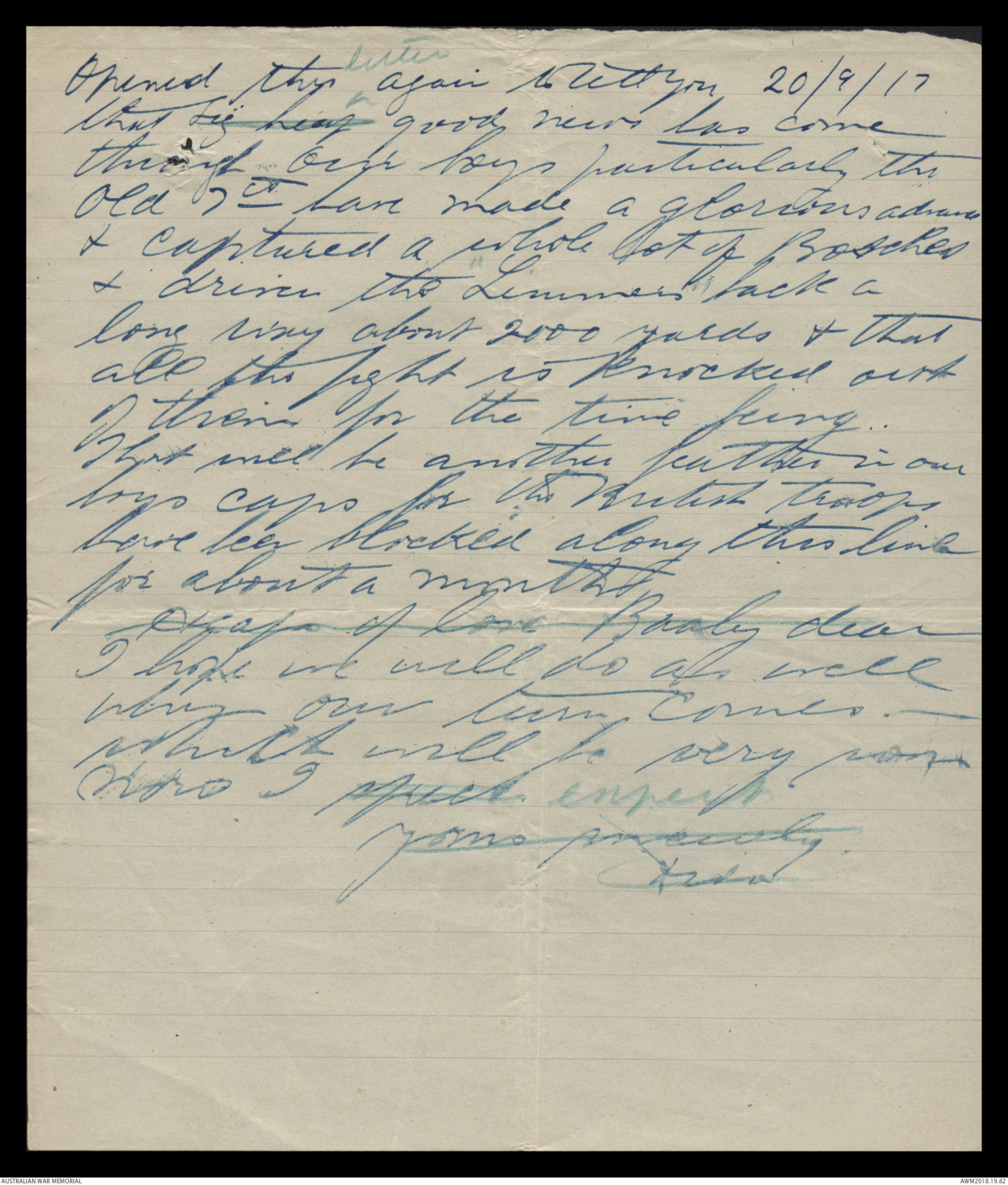 Letters from Harold Edward 'Pompey' Elliott to his sister-in-law, January 1917 - April 1919 - Part 8