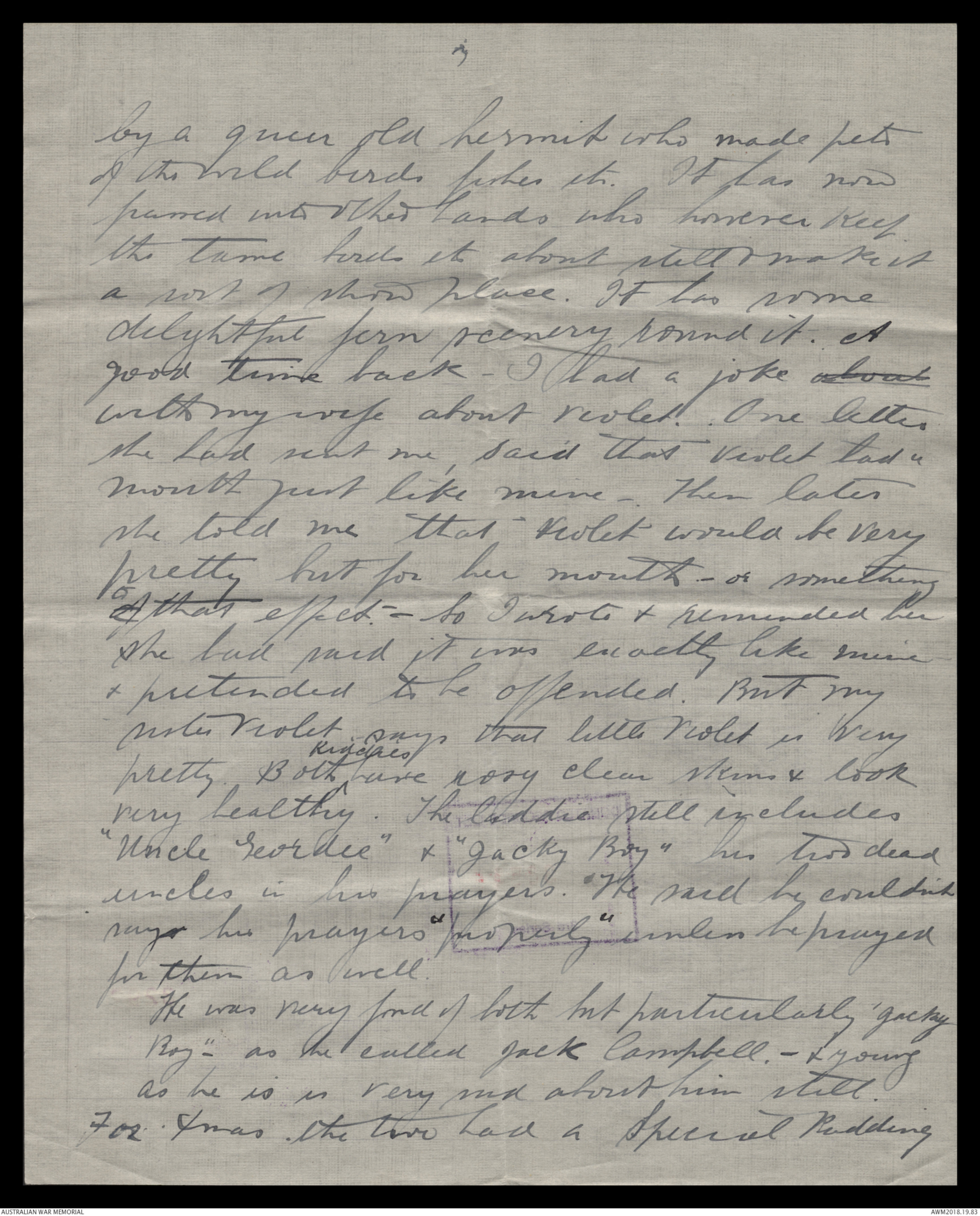 with my wife about Violet. One letter