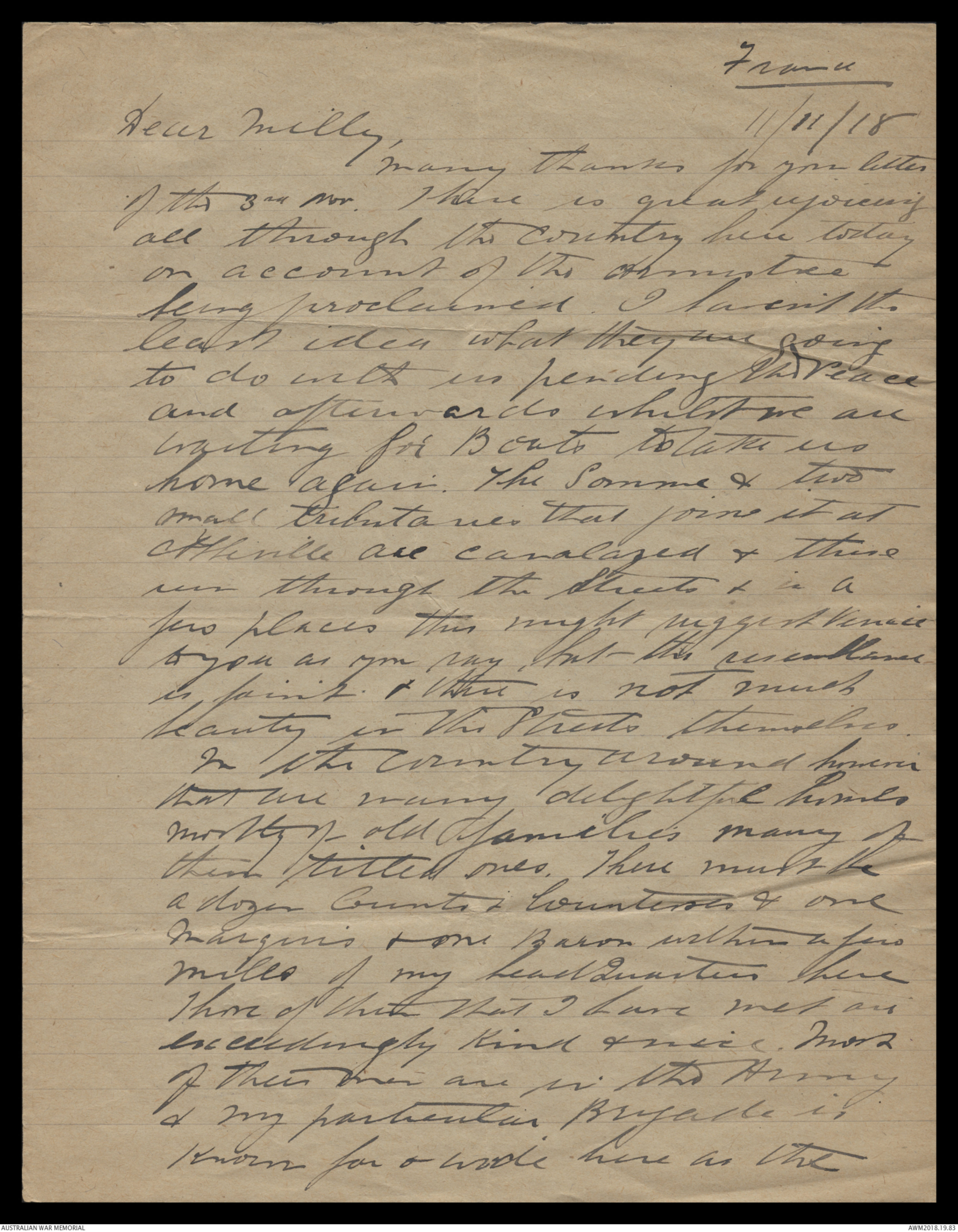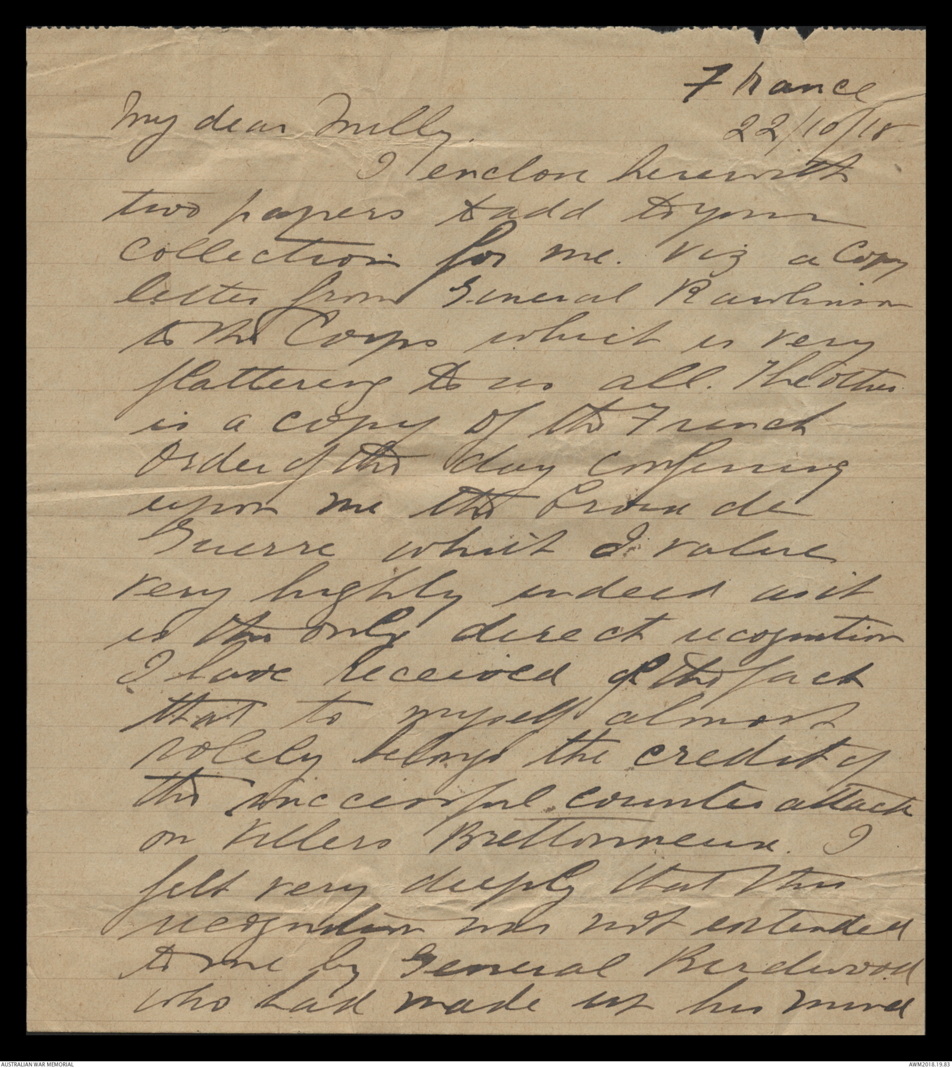 Letters from Harold Edward 'Pompey' Elliott to his cousin Emily Edwards, July 1916 - December 1918 - Part 9