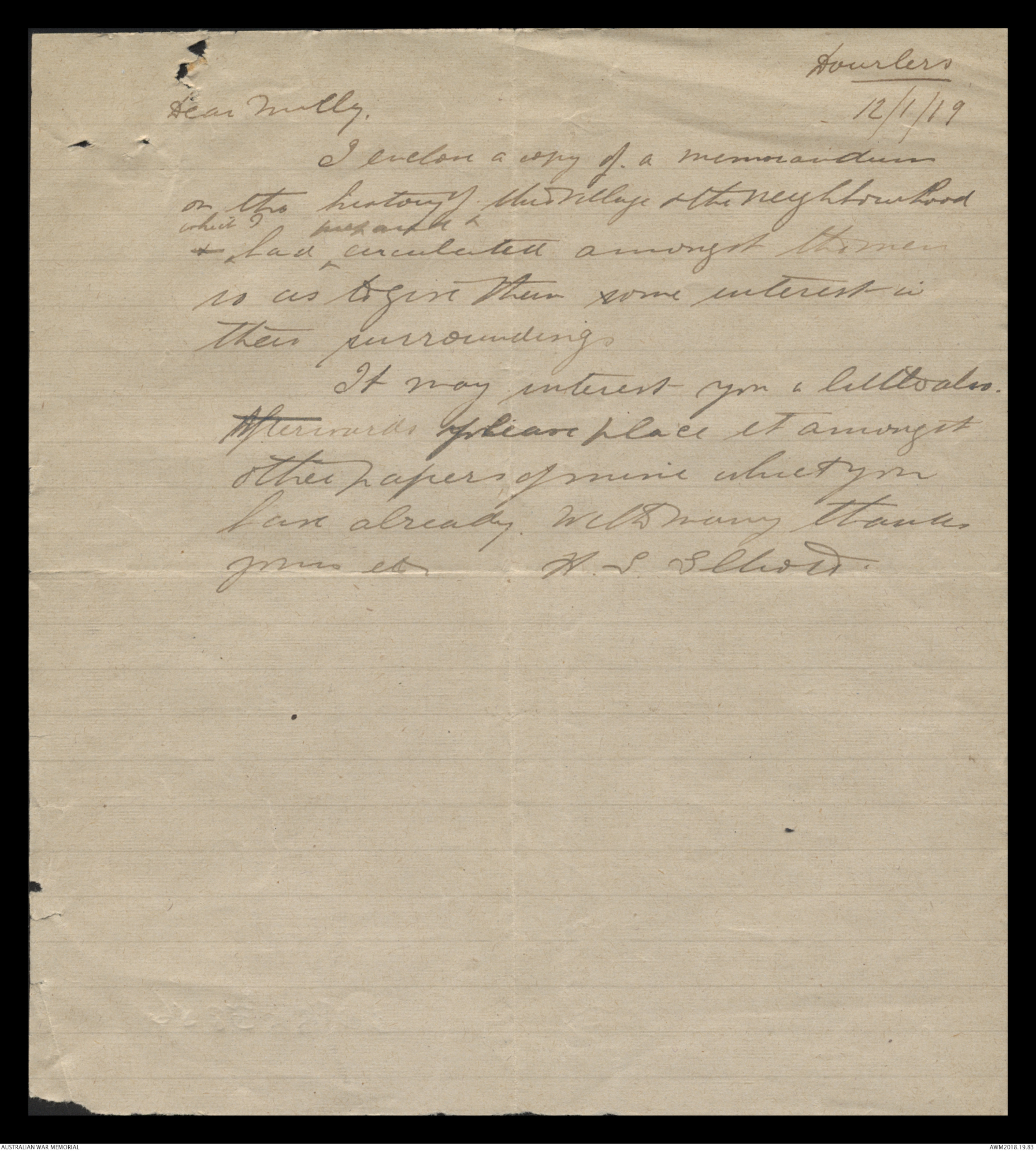 yours etc H.E. Elliott