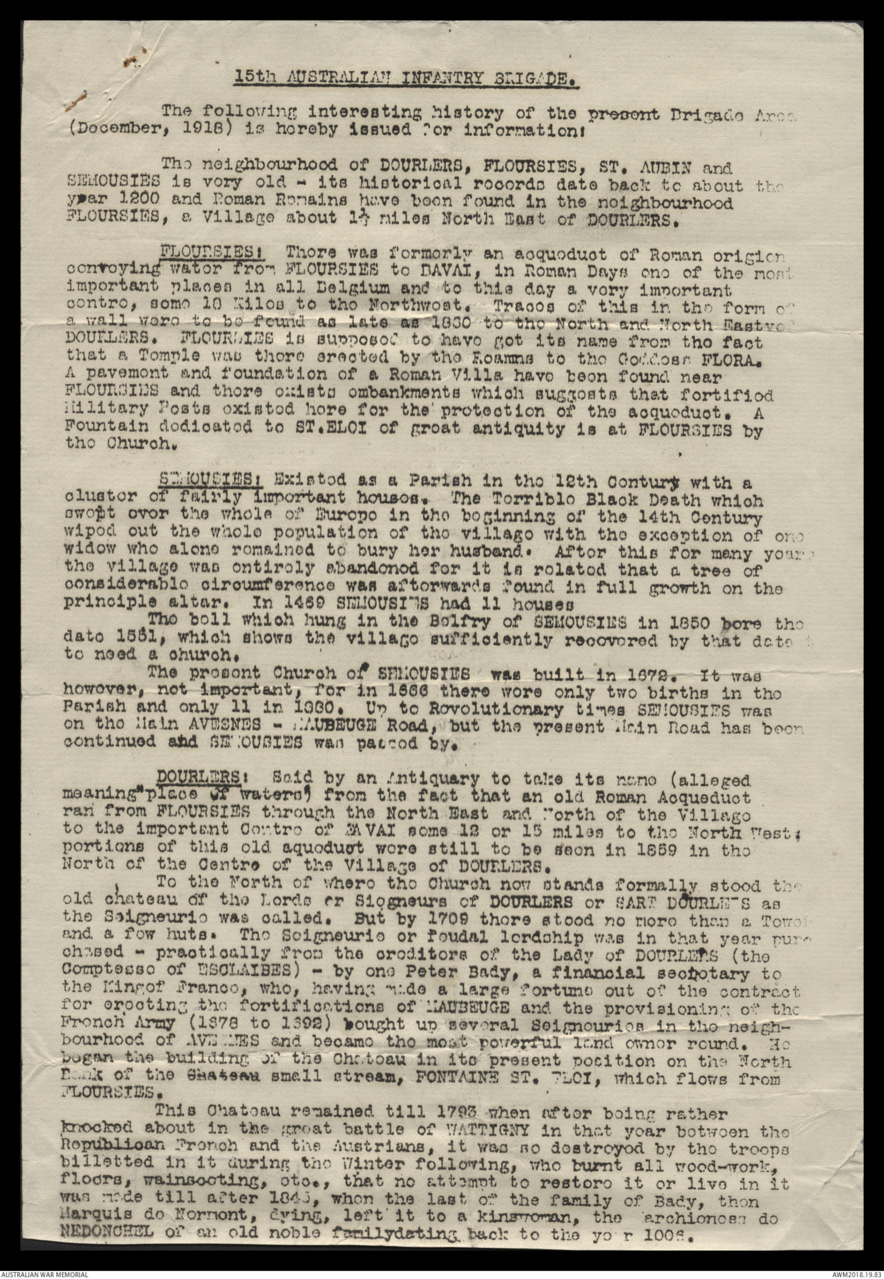 DOURLERS, as well as the neighbouring villages, was occupied by the