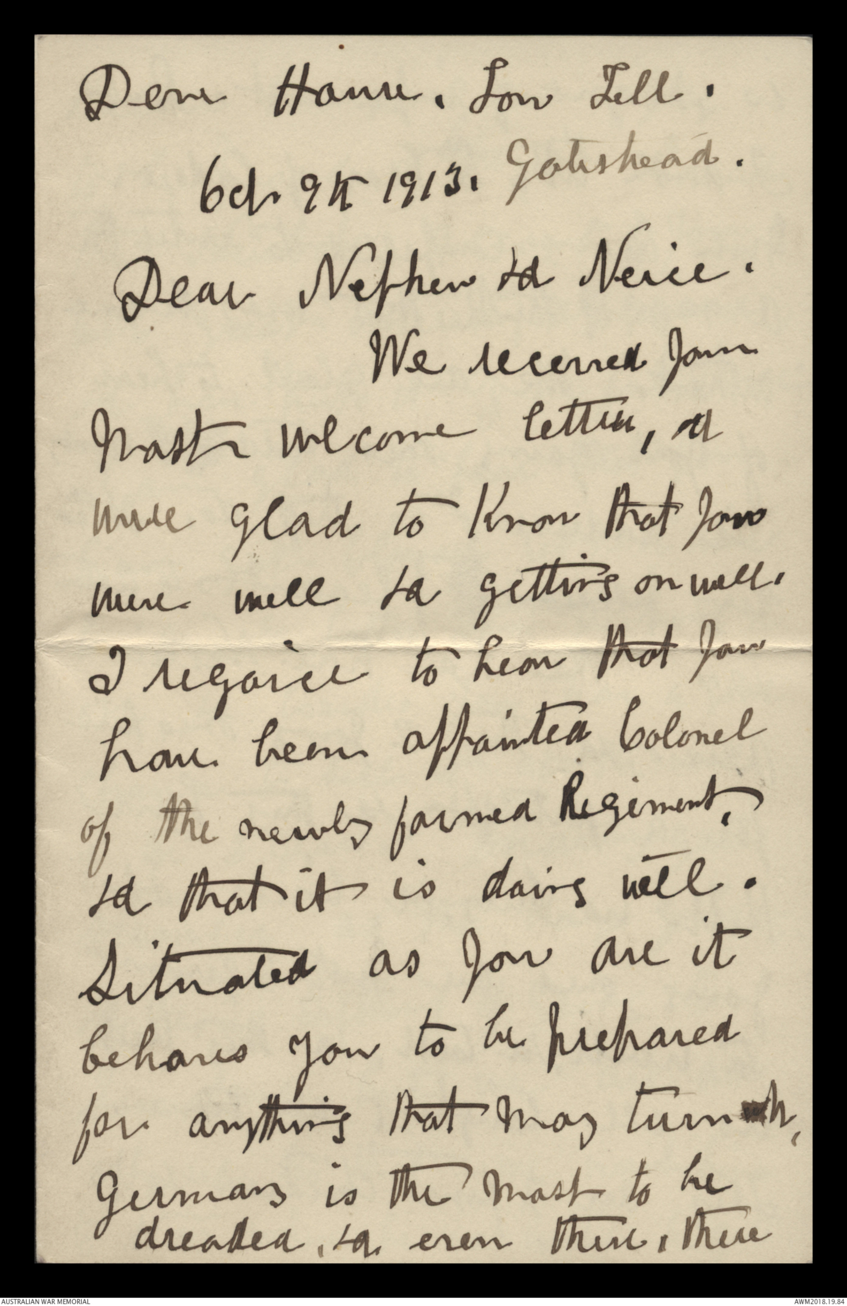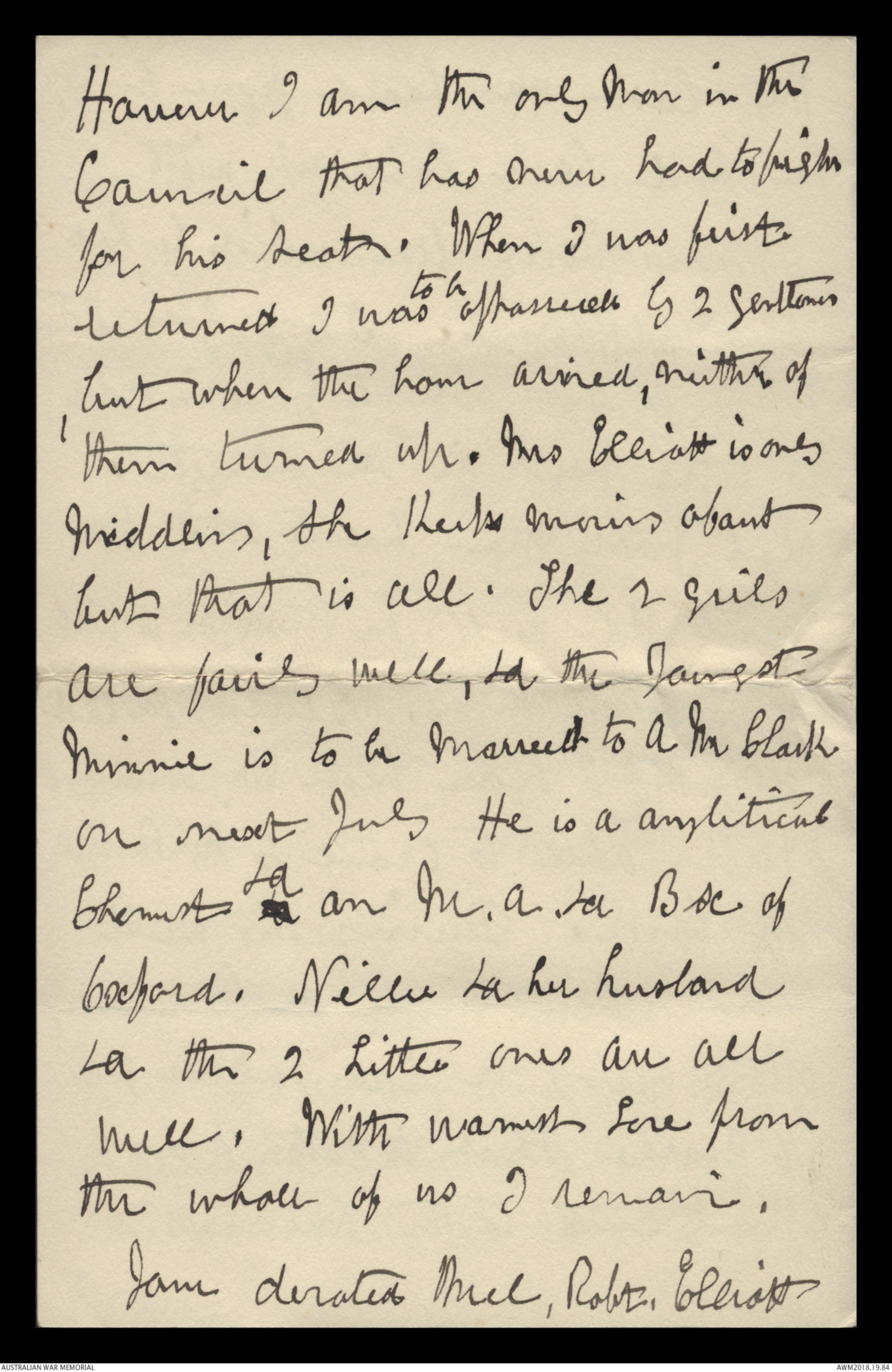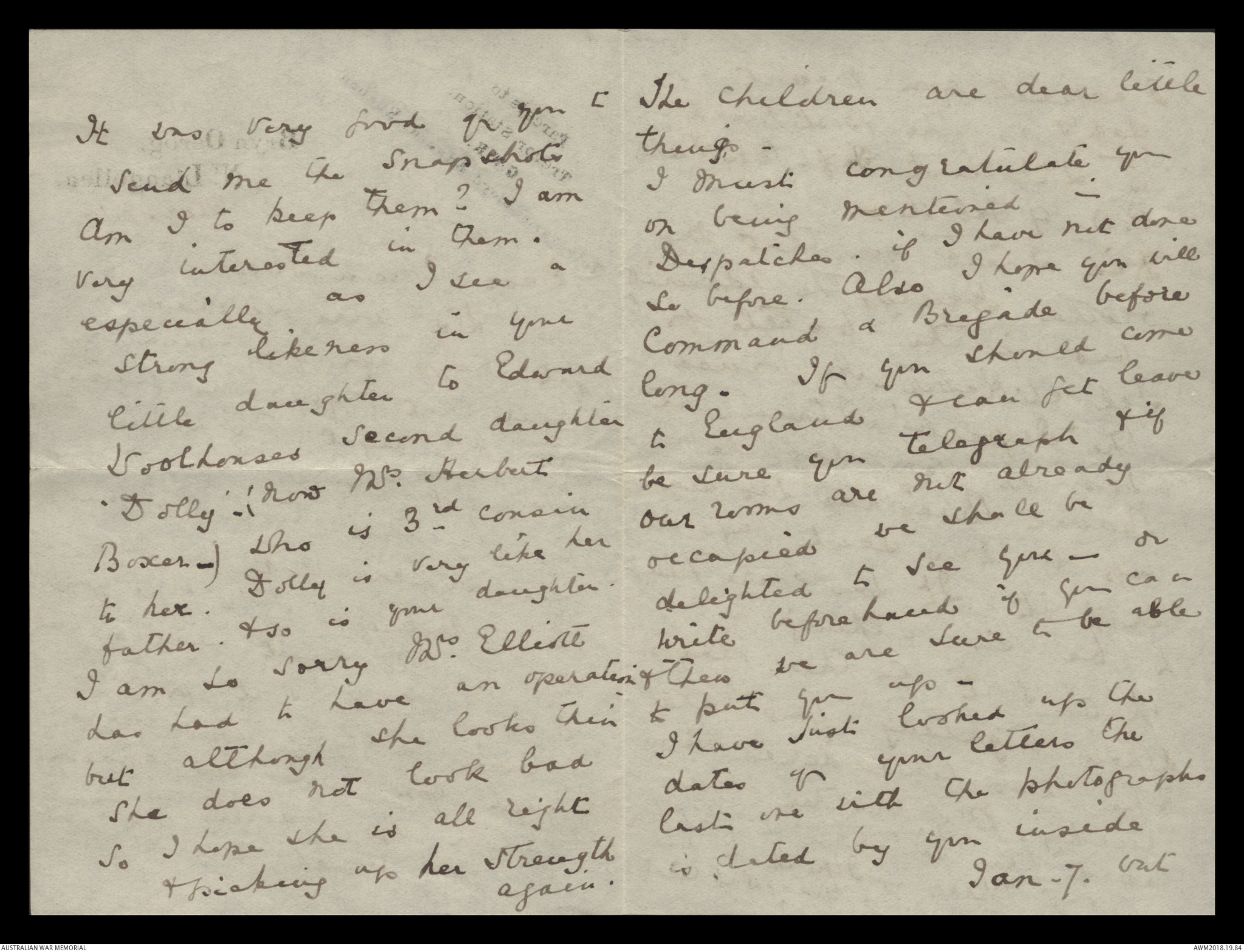 Letters to Harold Edward 'Pompey' Elliott from various family members, September 1913 - September 1930 - Part 1