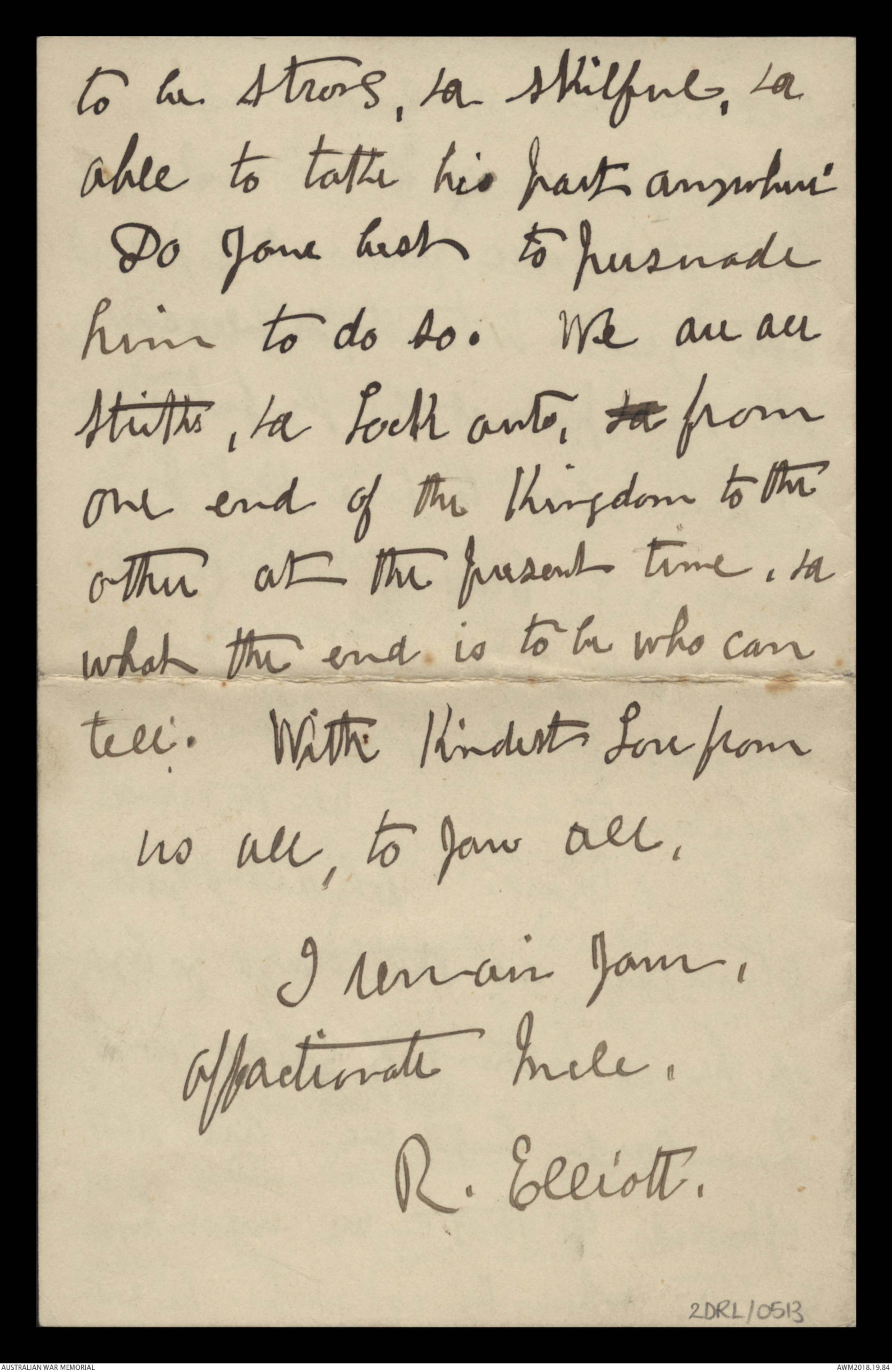 Your devoted Uncle, Robt. Elliott