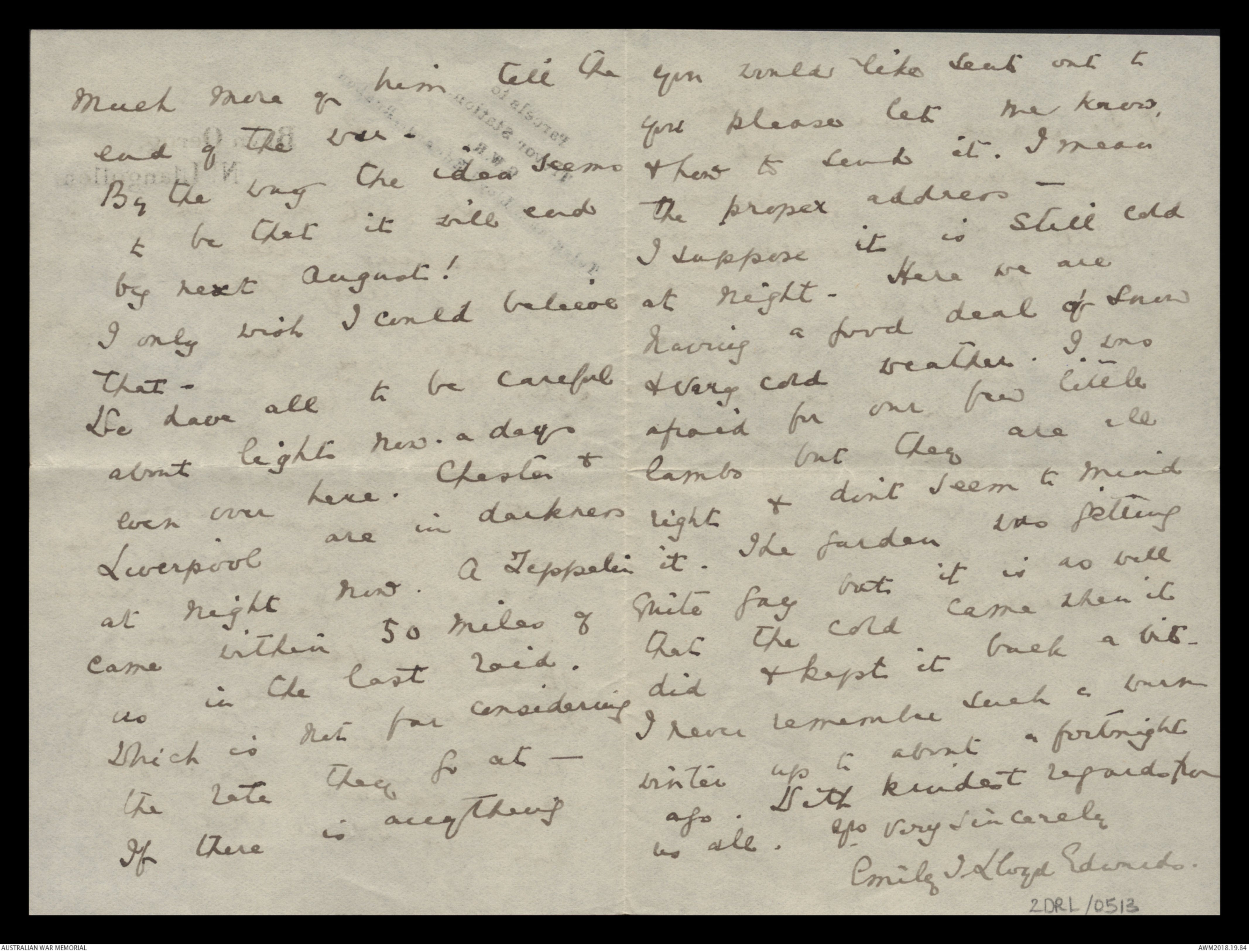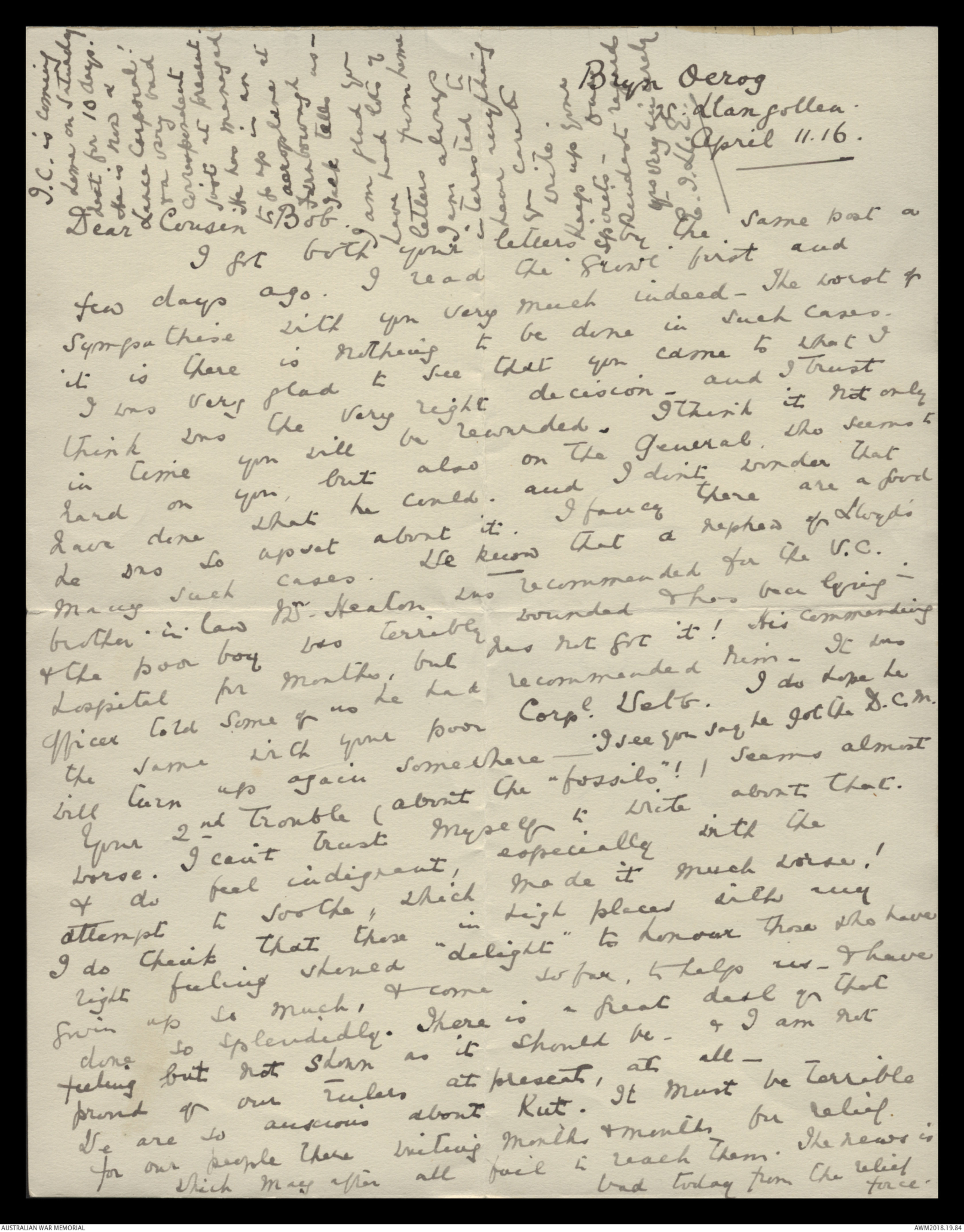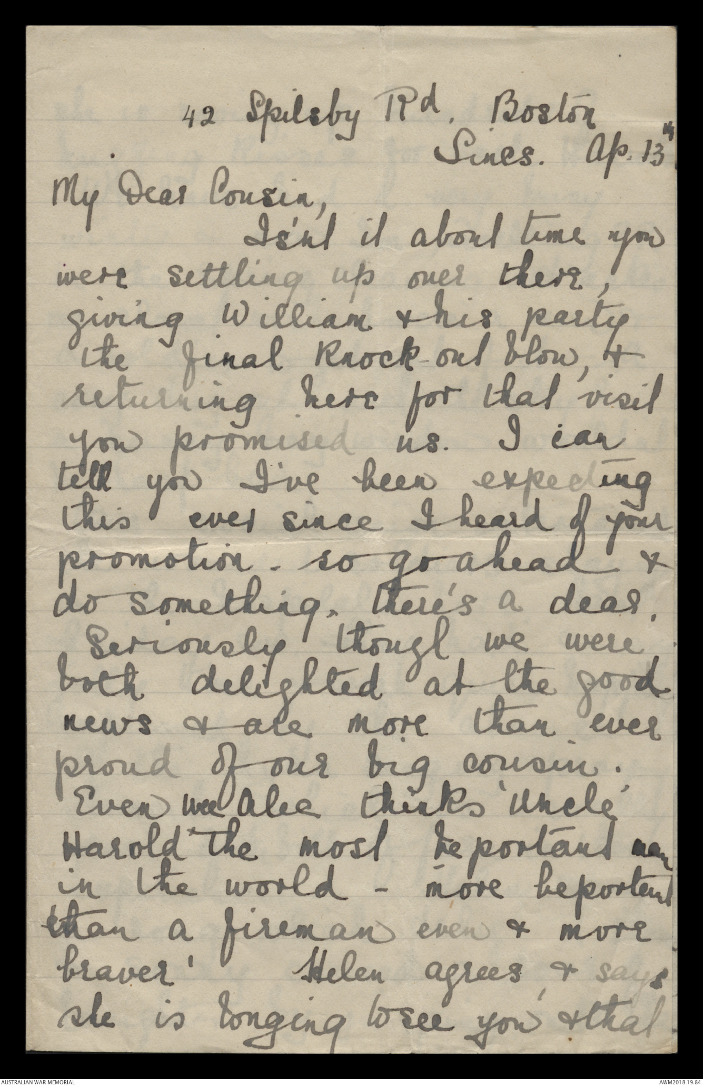 Letters to Harold Edward 'Pompey' Elliott from various family members, September 1913 - September 1930 - Part 2