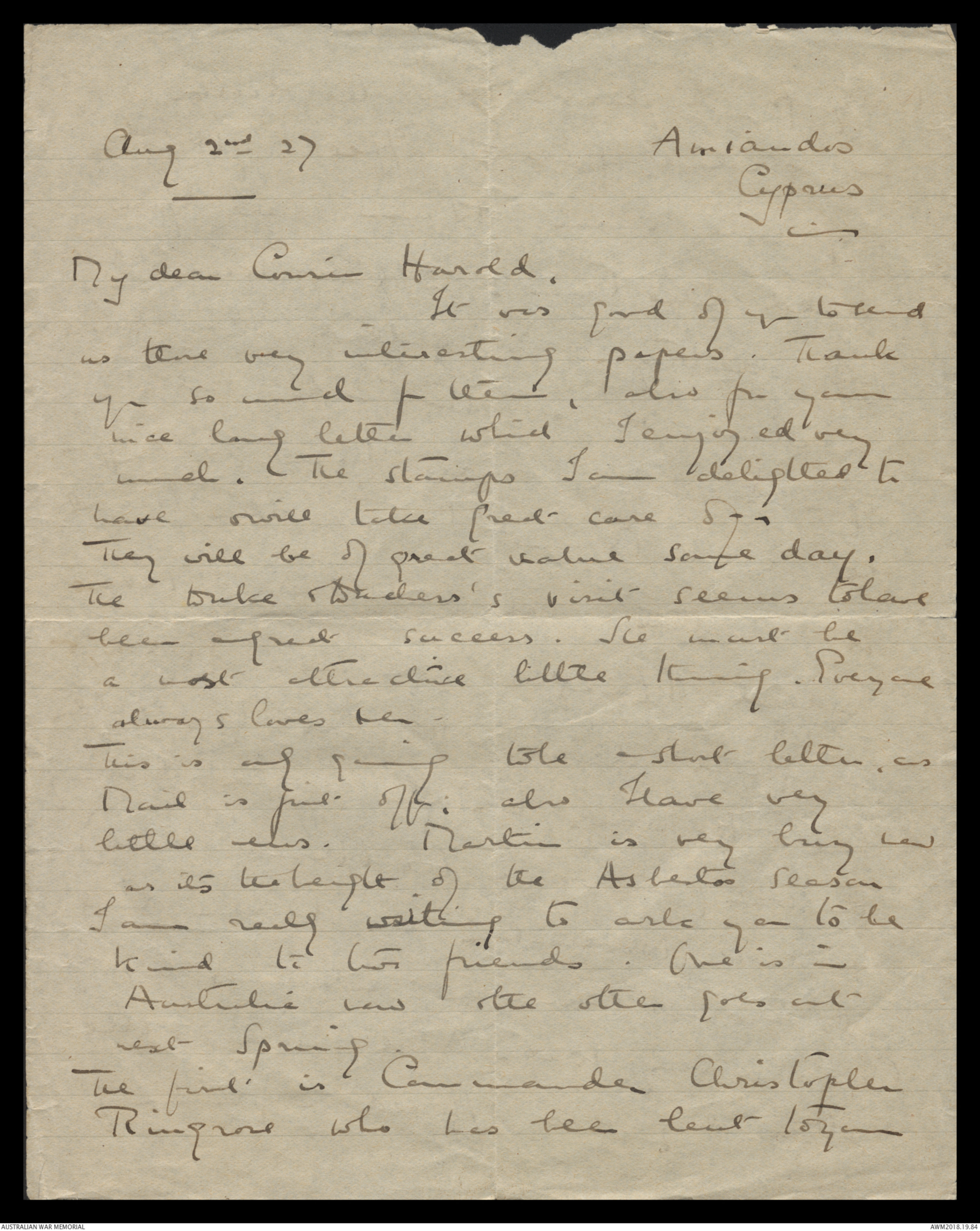 Letters to Harold Edward 'Pompey' Elliott from various family members, September 1913 - September 1930 - Part 12