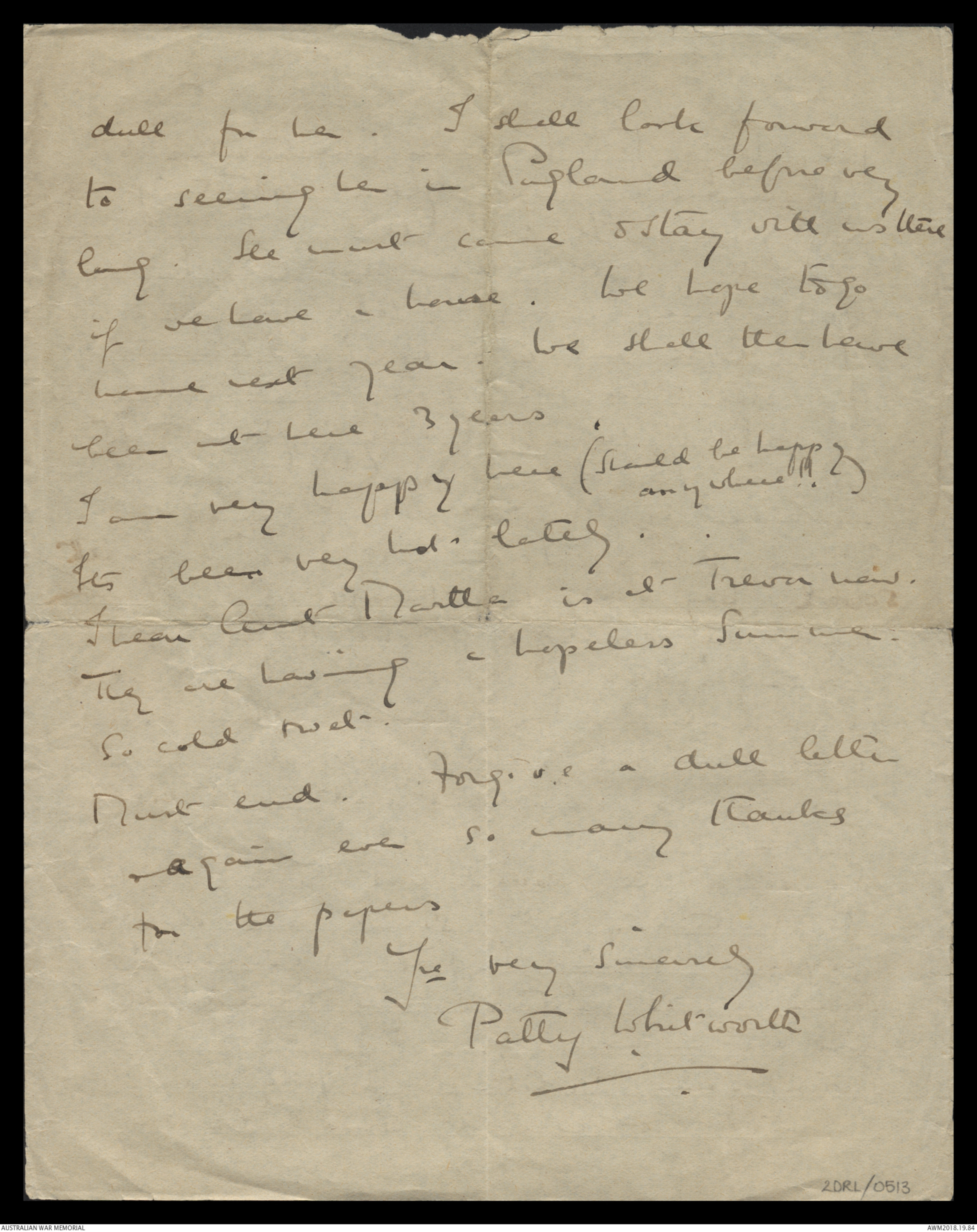 nice long letter which I enjoyed very