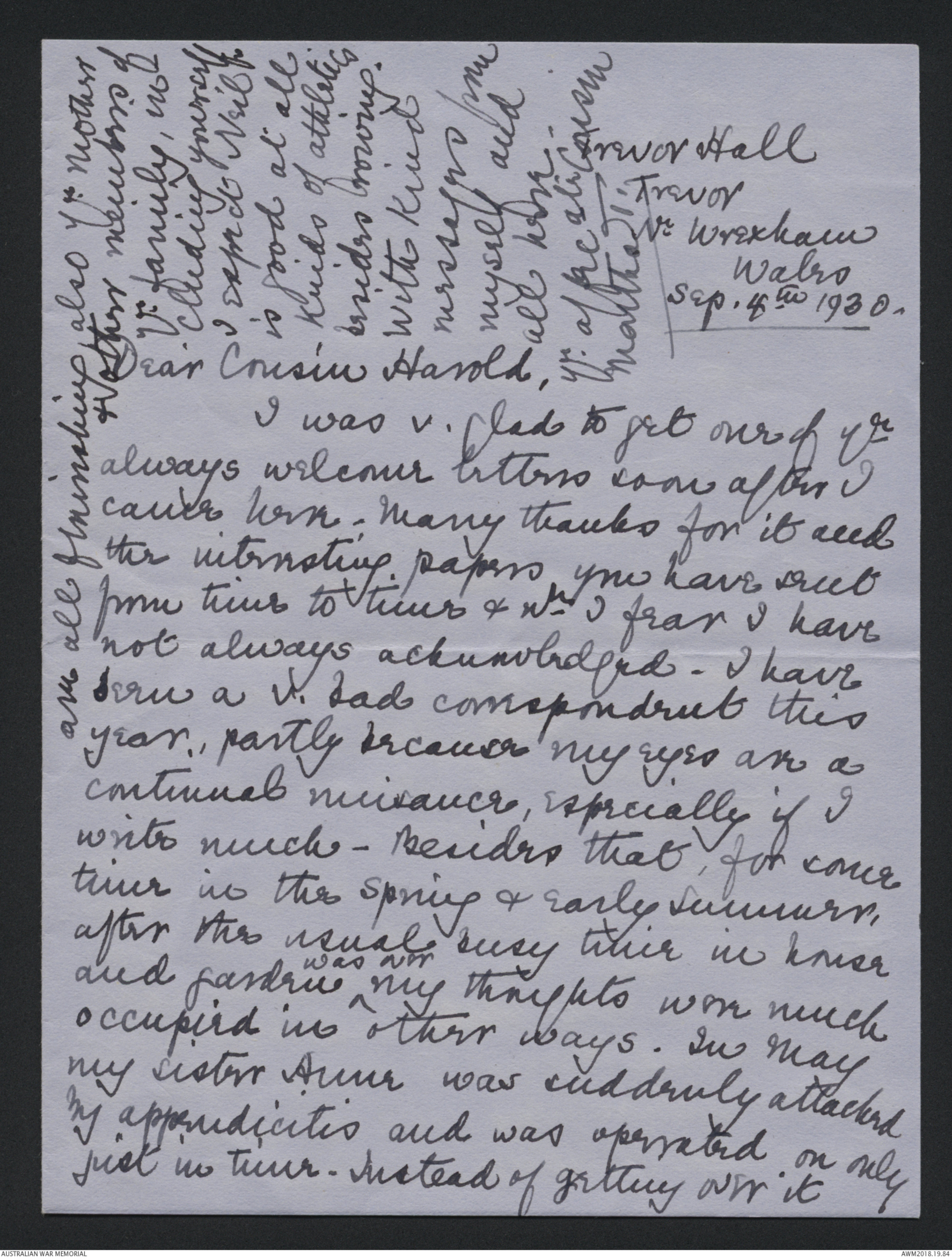 Letters to Harold Edward 'Pompey' Elliott from various family members, September 1913 - September 1930 - Part 19