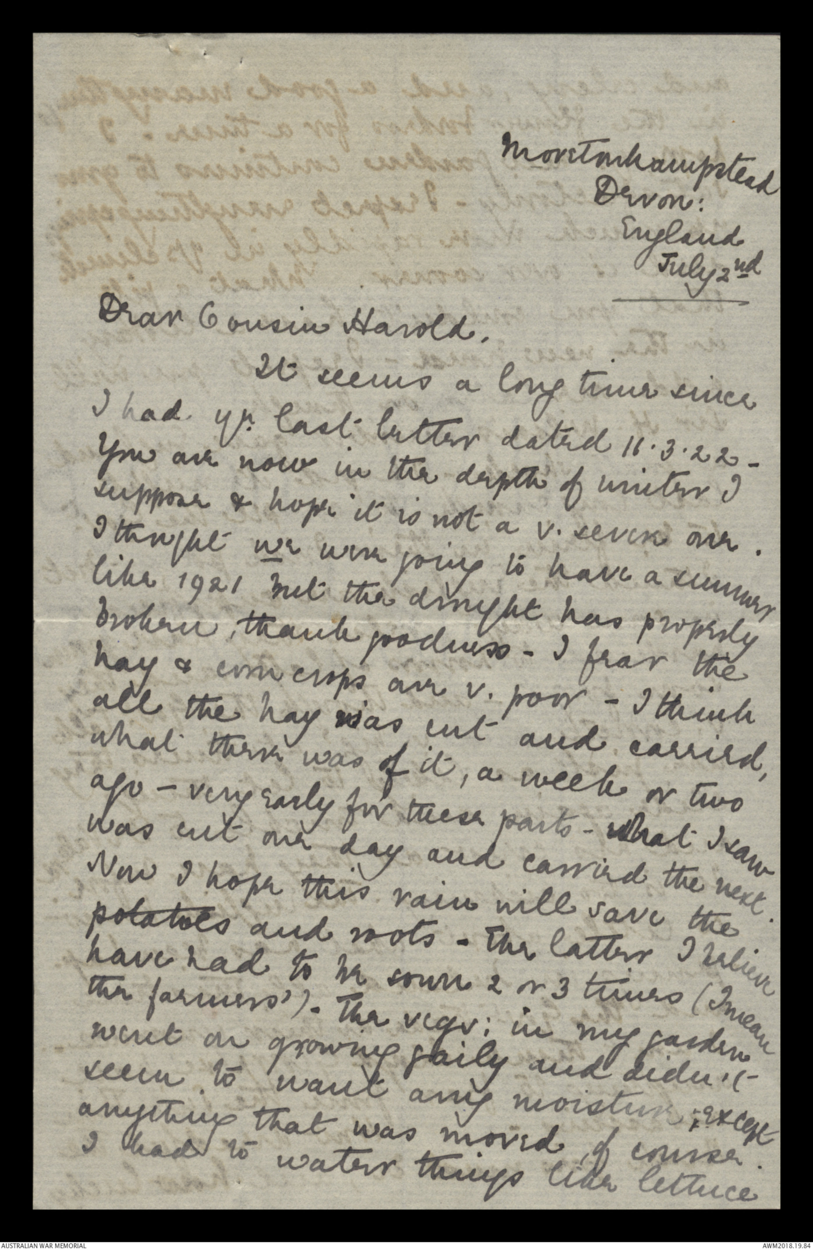 Letters to Harold Edward 'Pompey' Elliott from various family members, September 1913 - September 1930 - Part 6