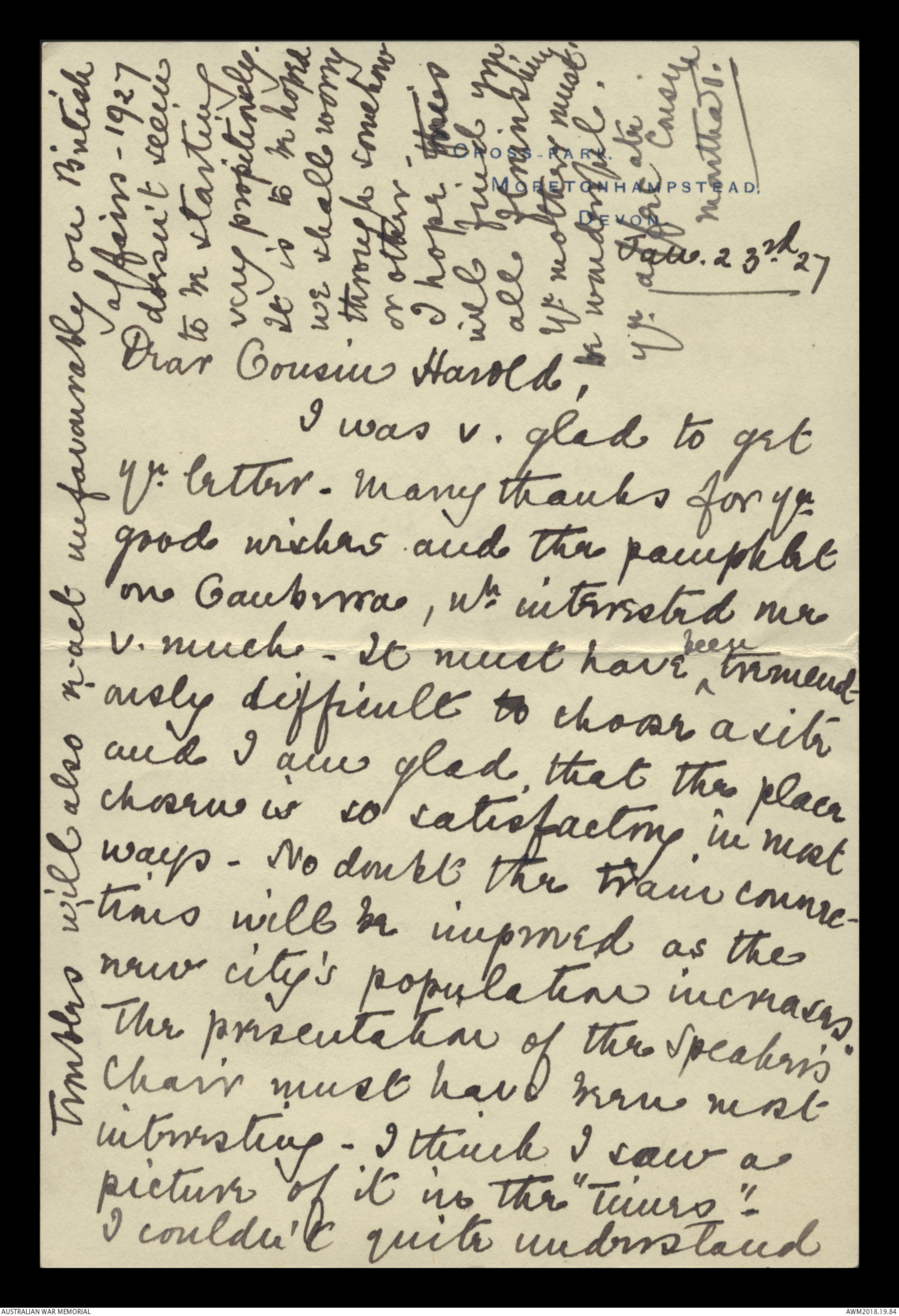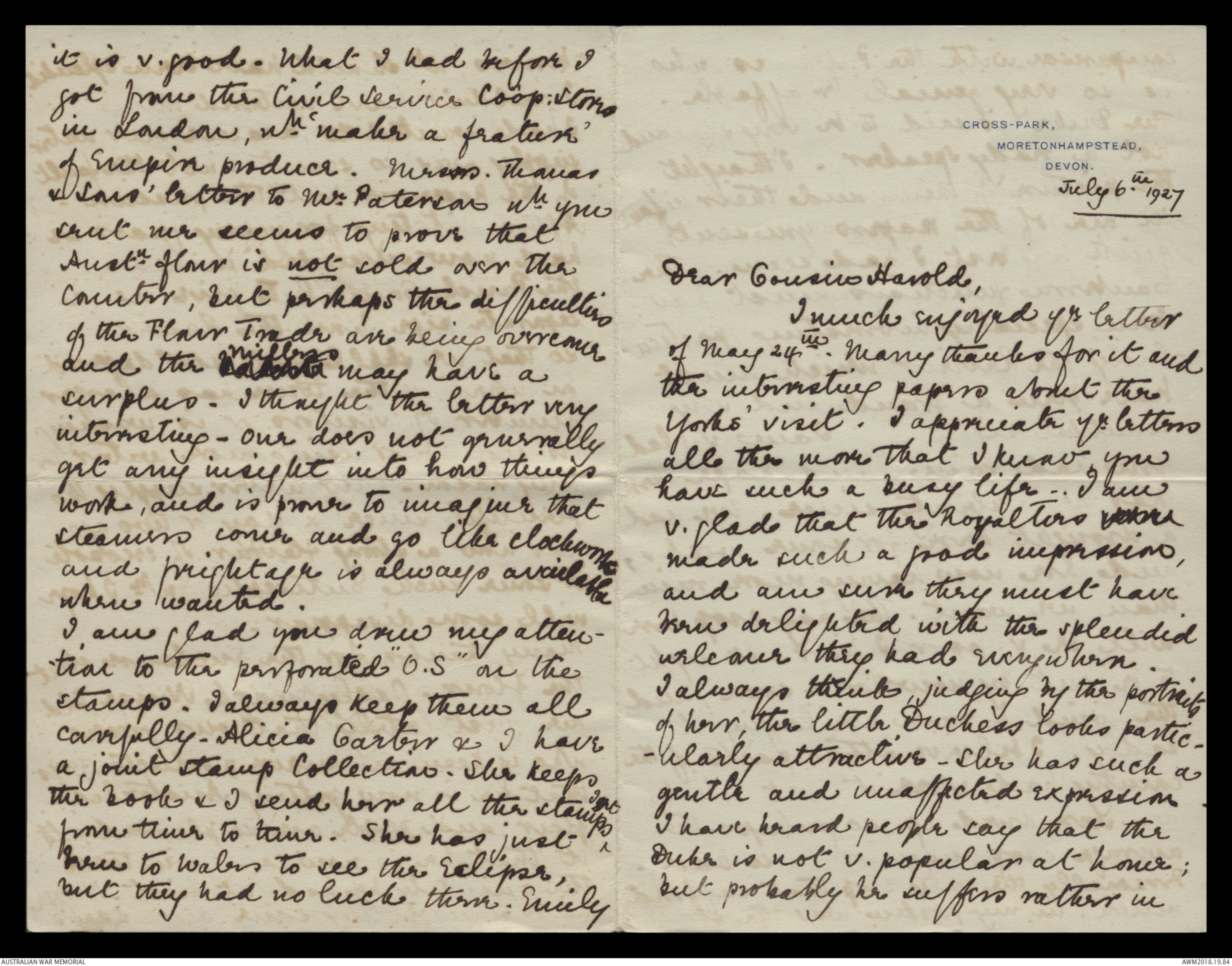 Letters to Harold Edward 'Pompey' Elliott from various family members, September 1913 - September 1930 - Part 11