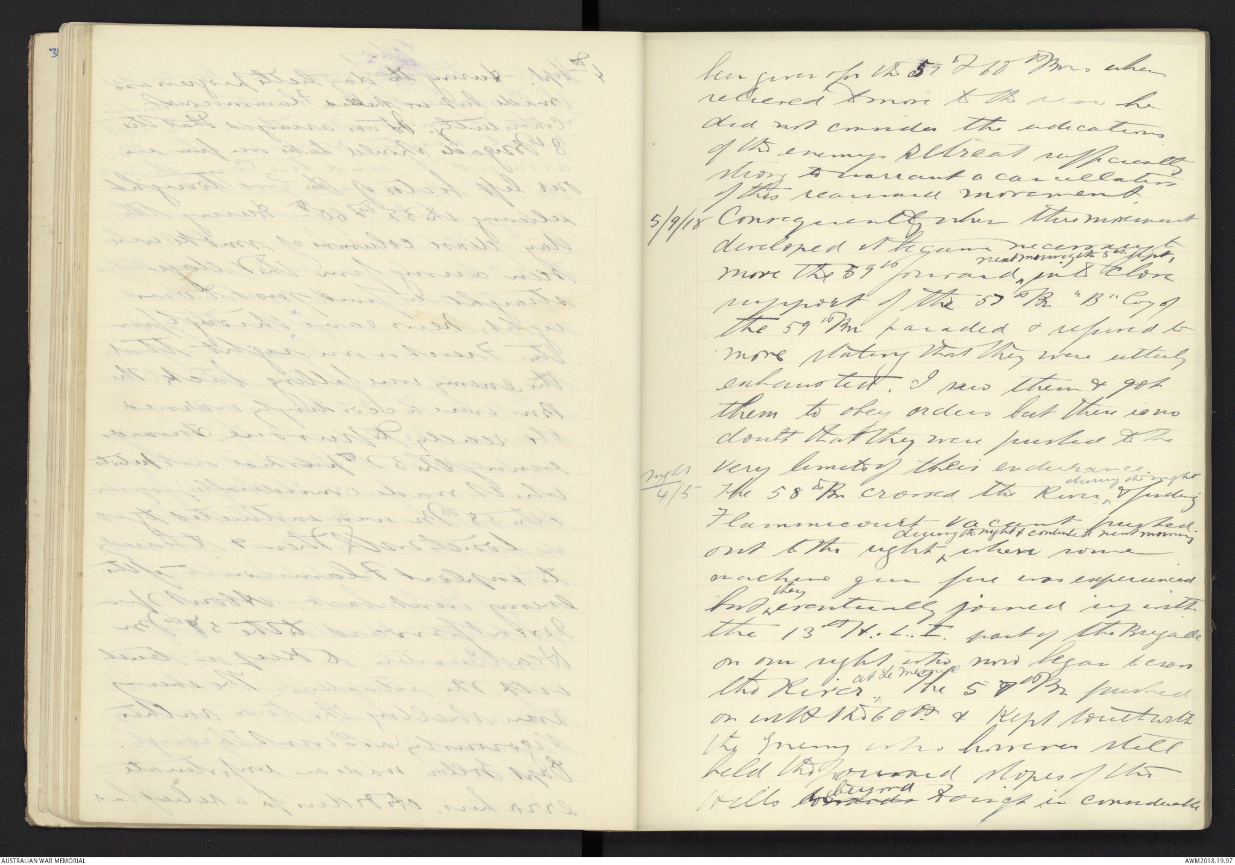 [*Nights 4/5*] The 58th Bn crossed the River during the night & finding
