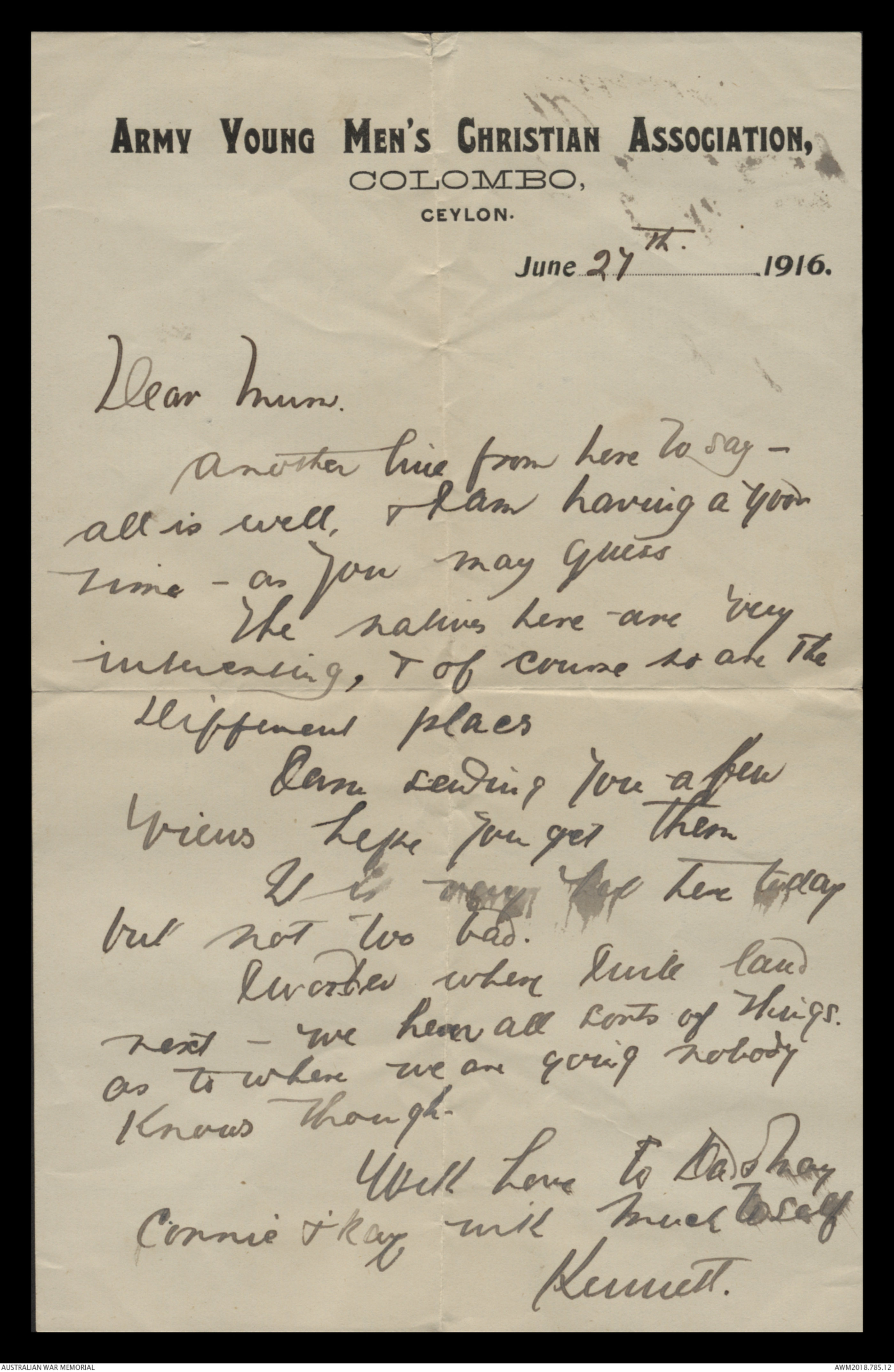 Letters from Kenneth Jack Young to his family, 1916 - Part 2