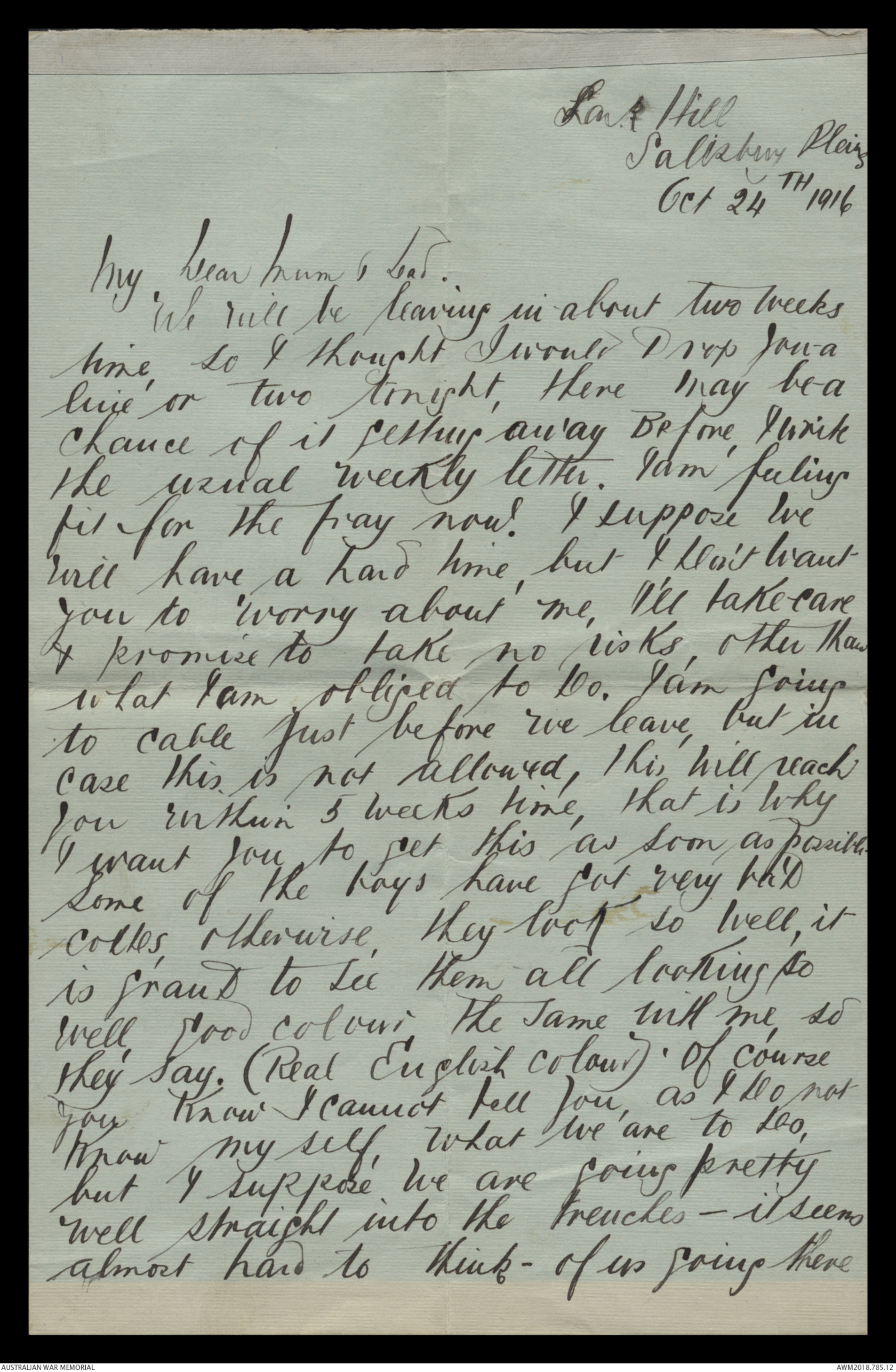 Letters from Kenneth Jack Young to his family, 1916 - Part 16