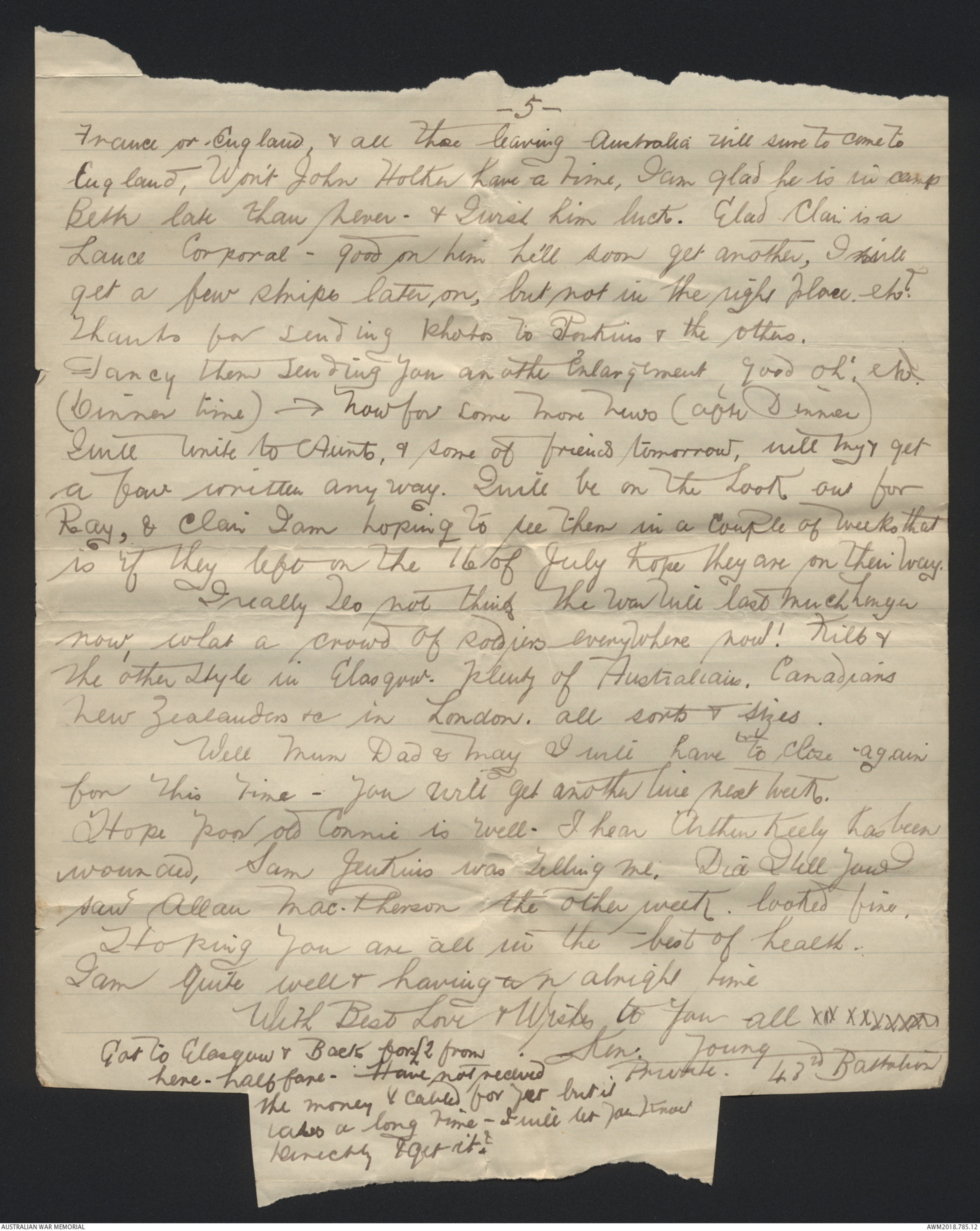 Letters from Kenneth Jack Young to his family, 1916 - Part 4