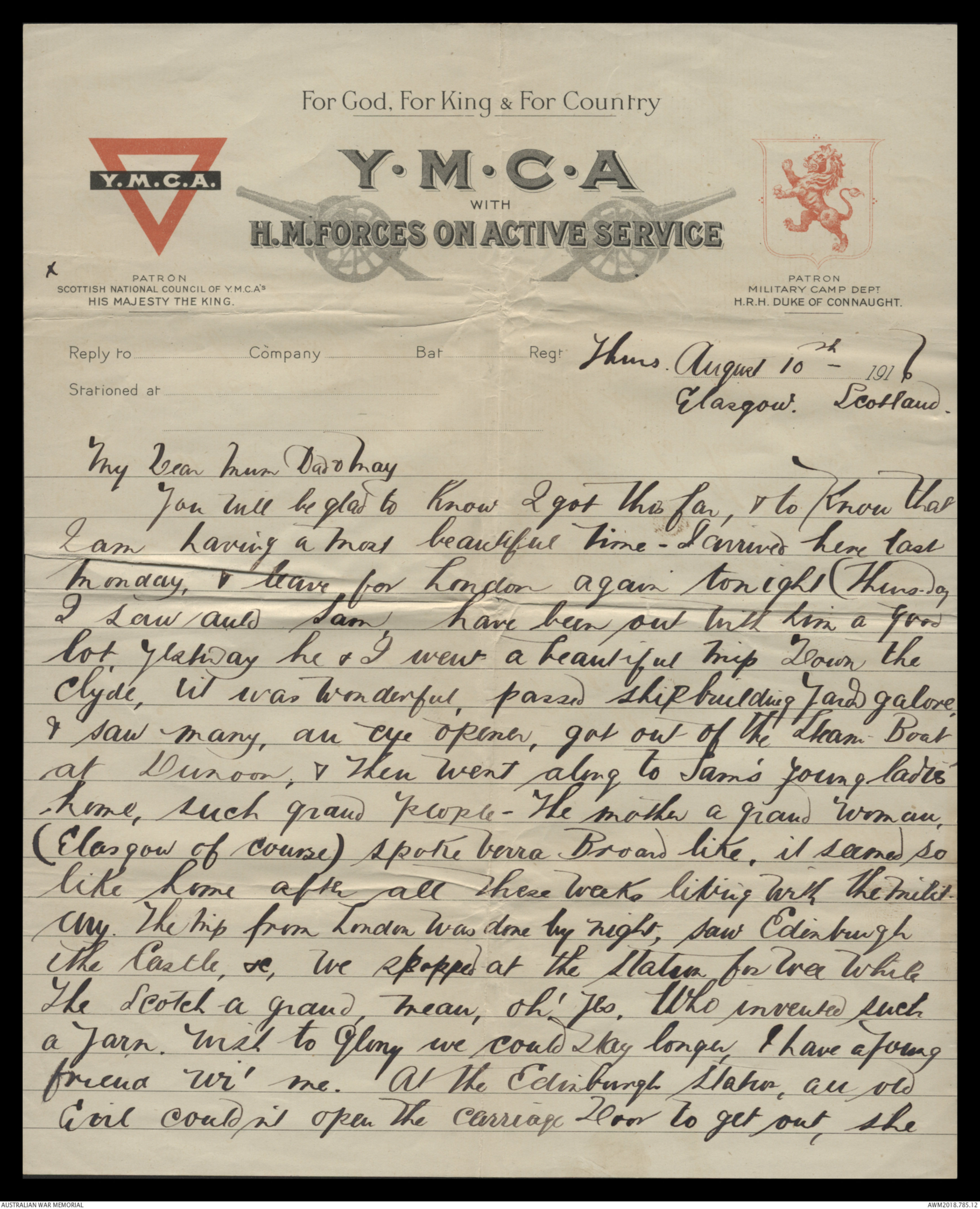 receive this Mum, I will have had another trip to Glasgow.