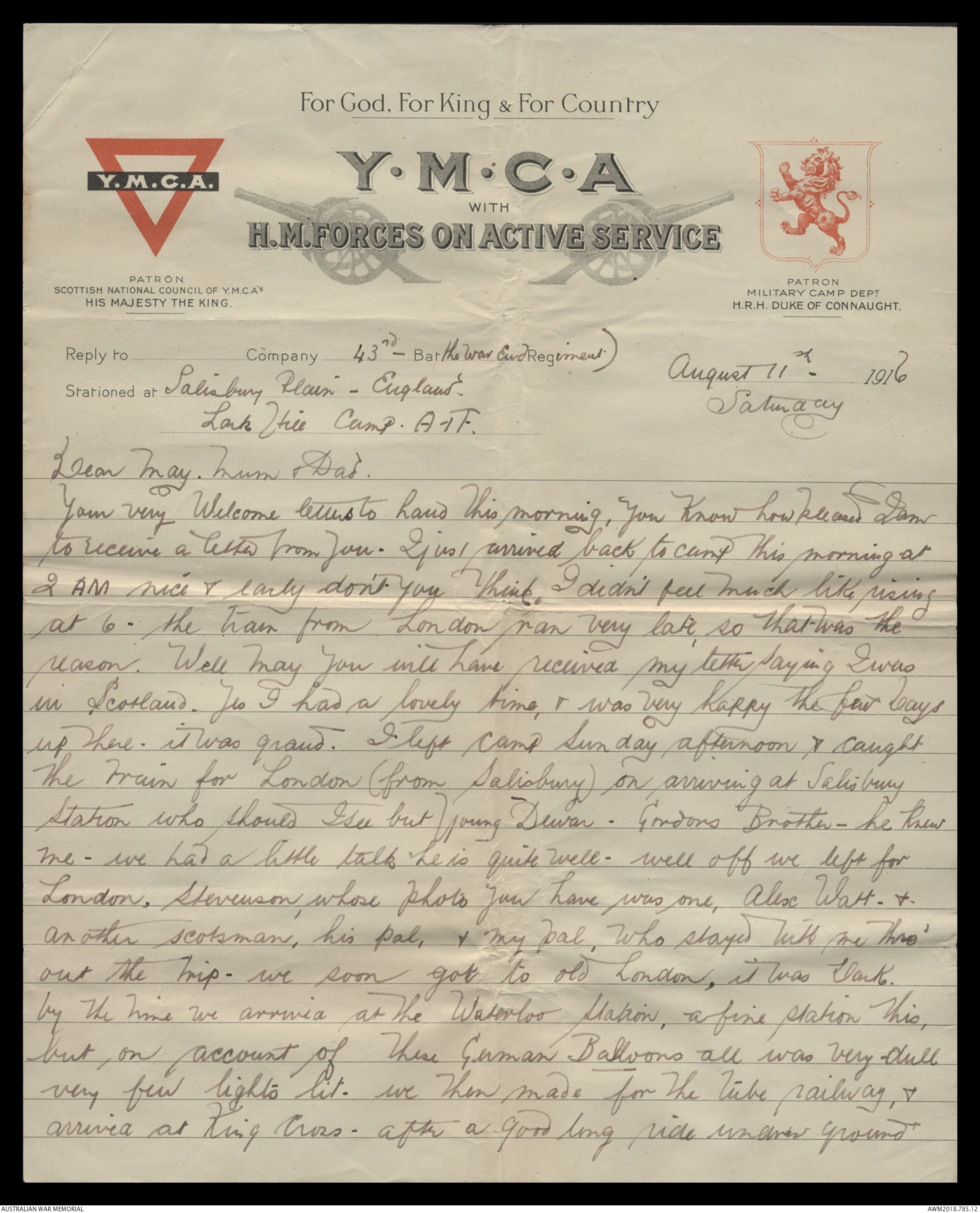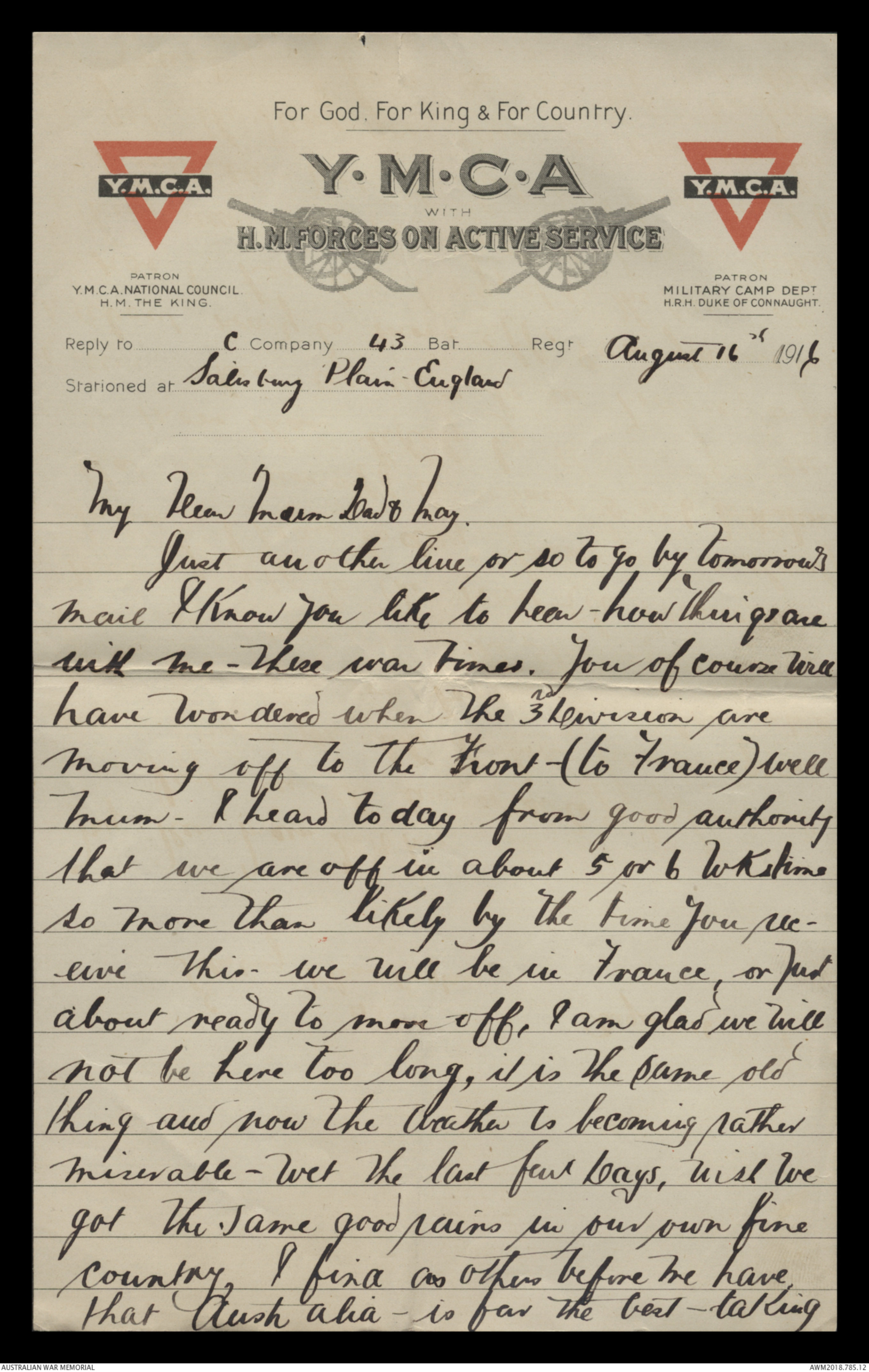 Letters from Kenneth Jack Young to his family, 1916 - Part 5