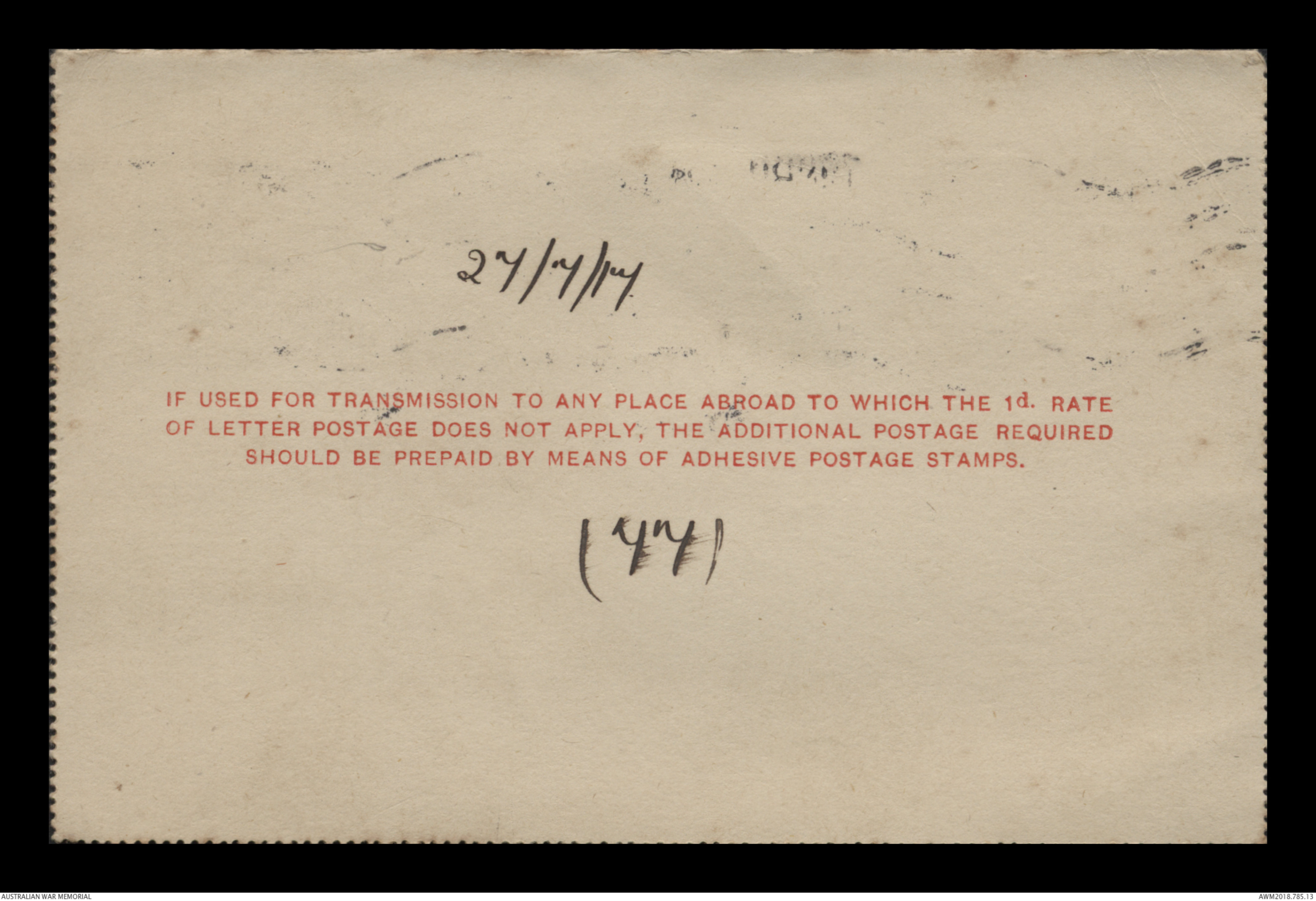 Rear of envelop ~ see original