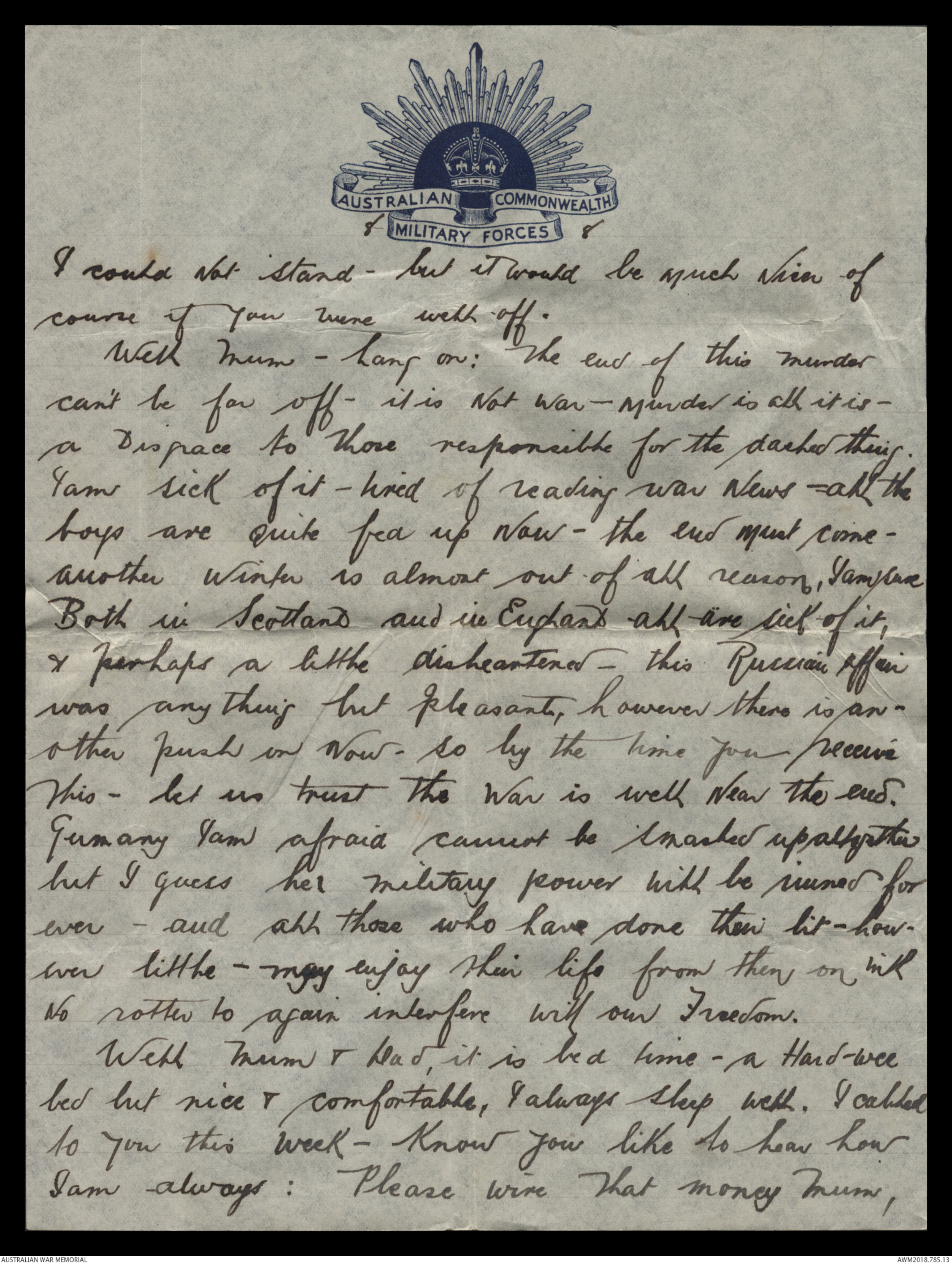 me to receive my letters Mum, & it is now hard to