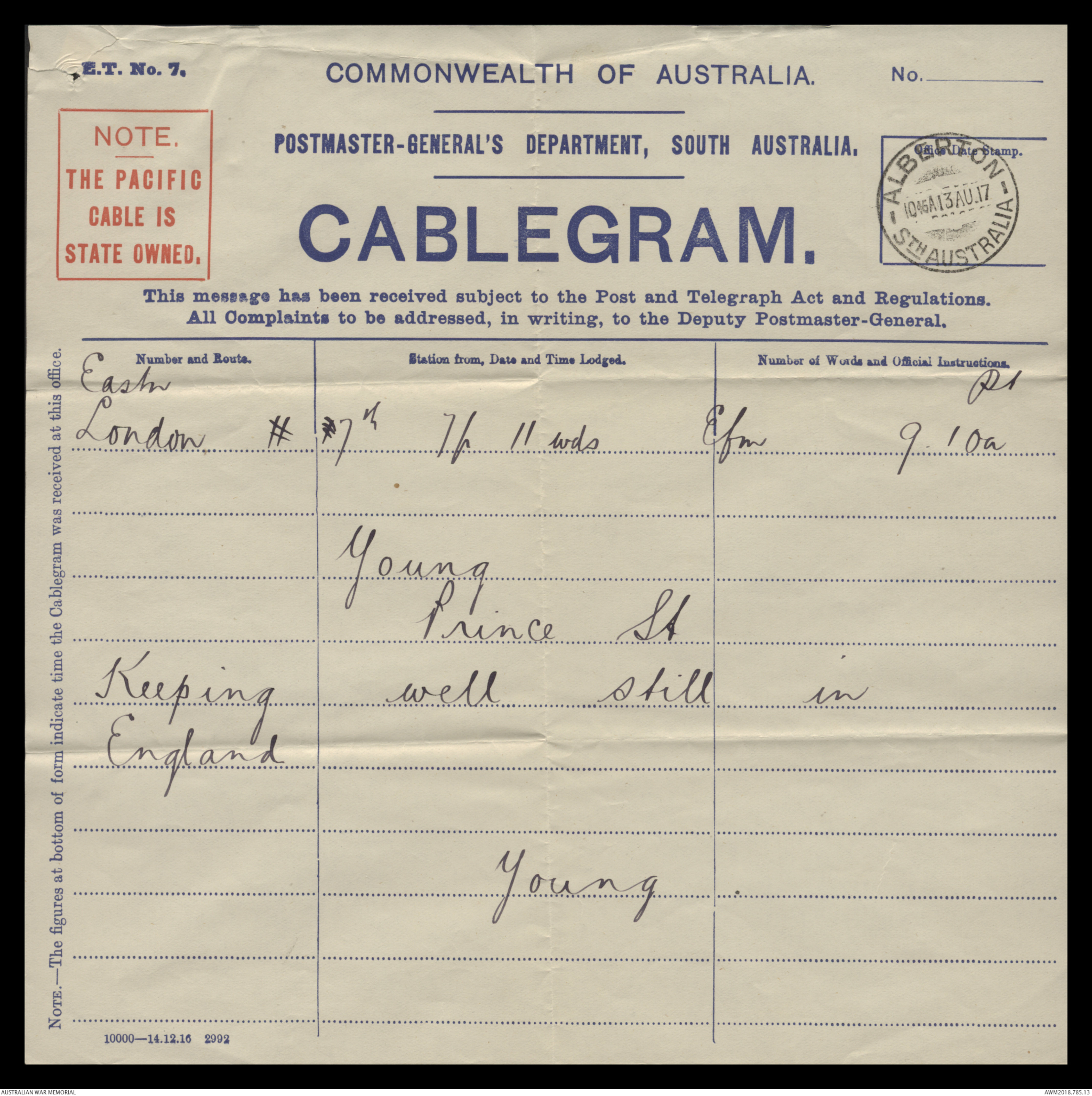 Australian Base P O London, Would you address my