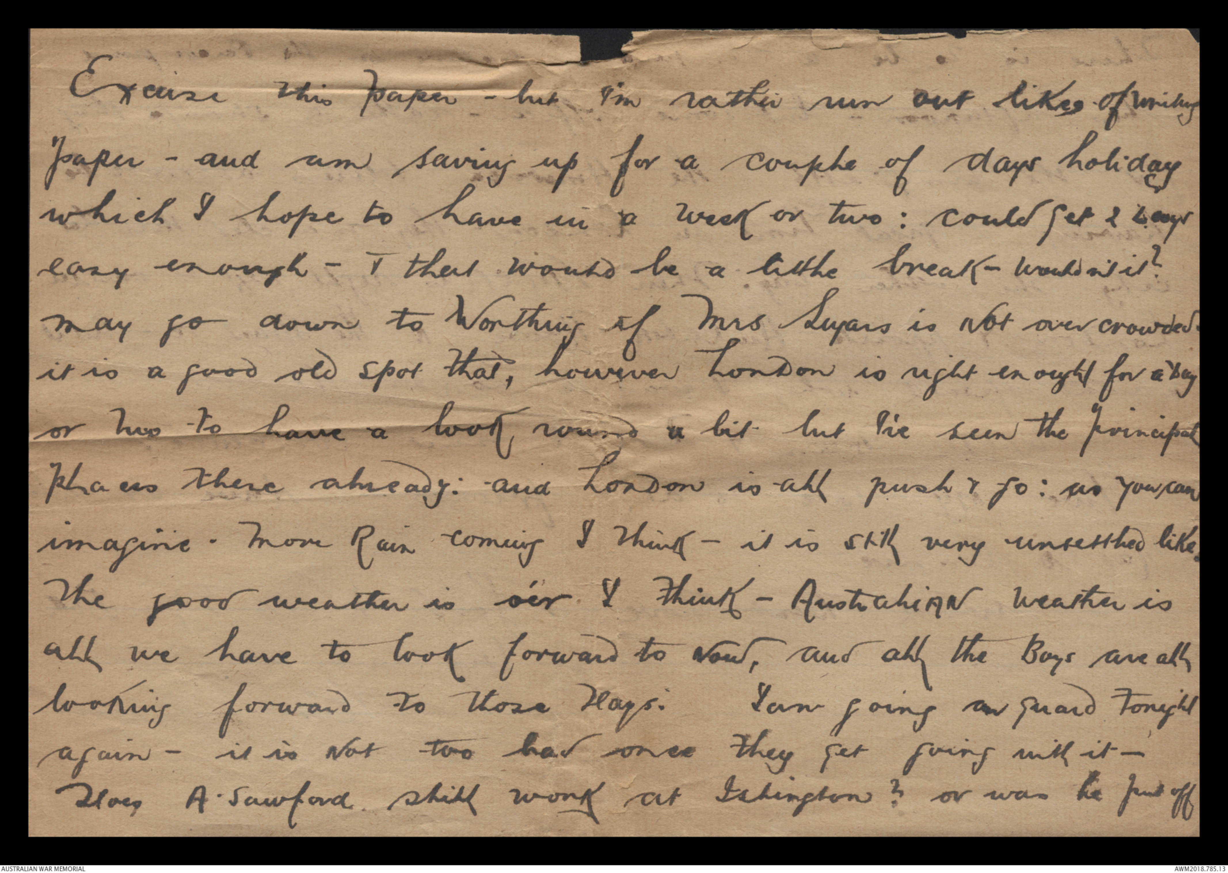 Worthing for a day or two but Mrs Sayers has been