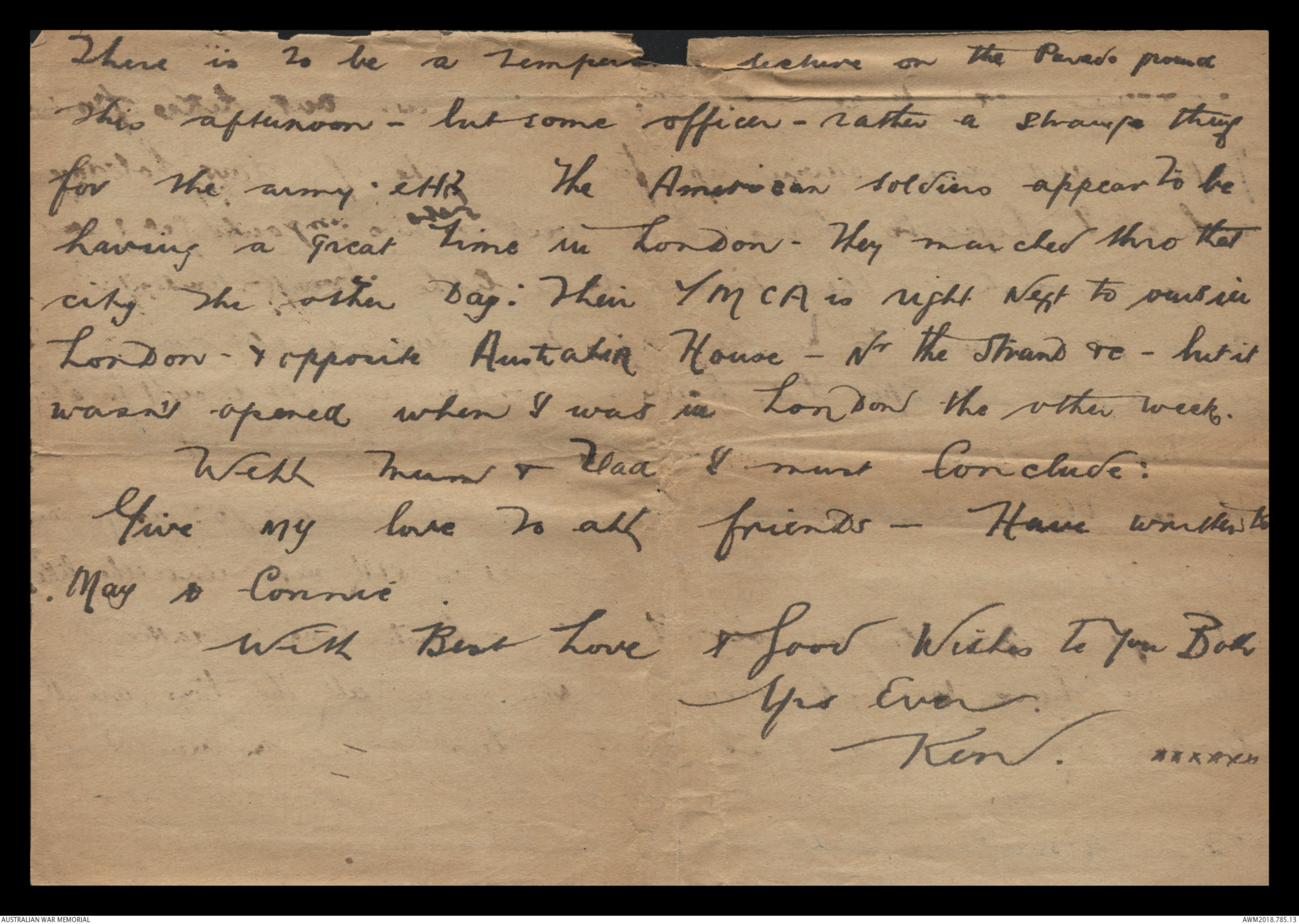 Give my love to all friends - Have written to