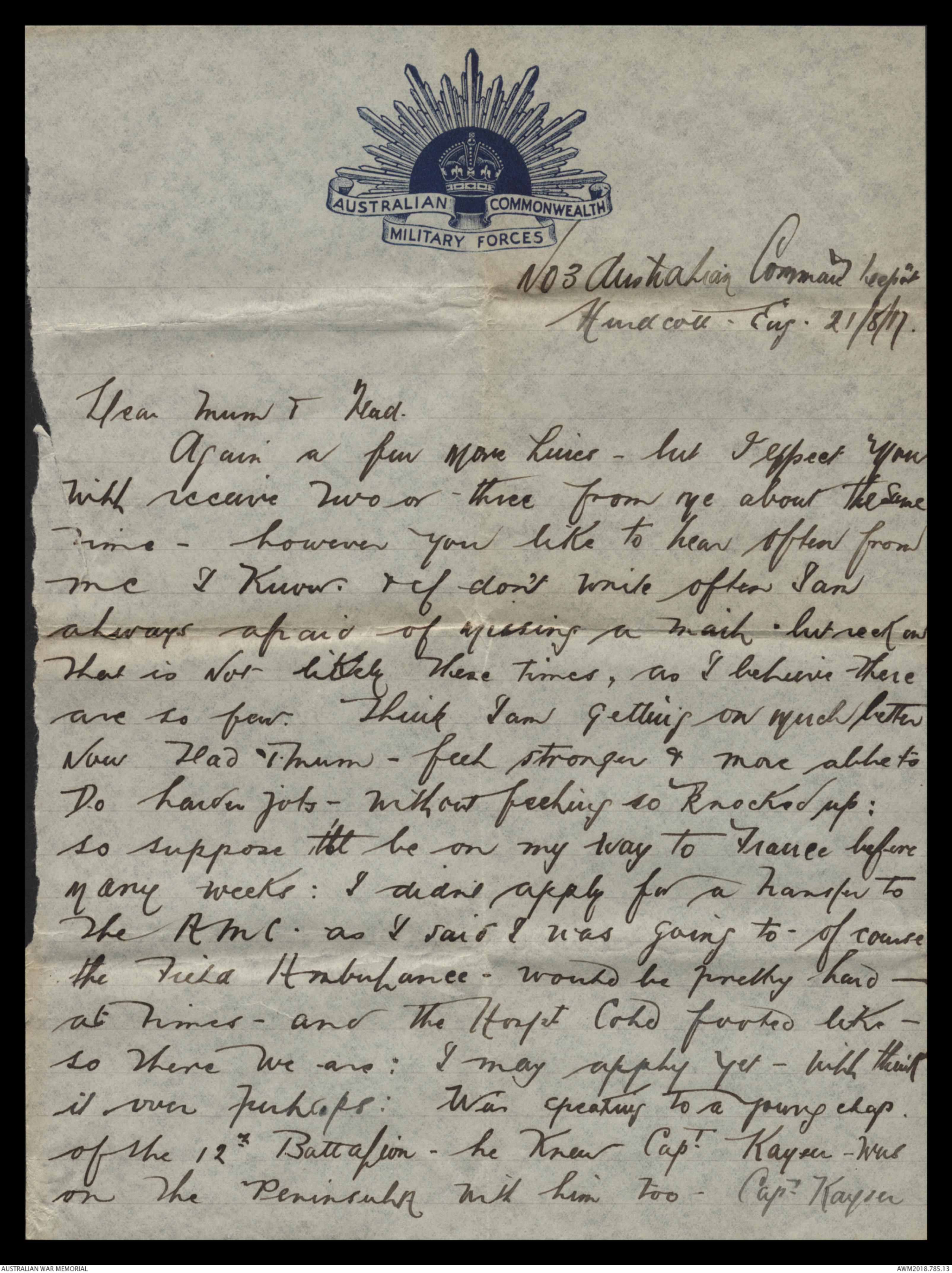 Letters from Kenneth Jack Young to his family, 1917 - Part 14