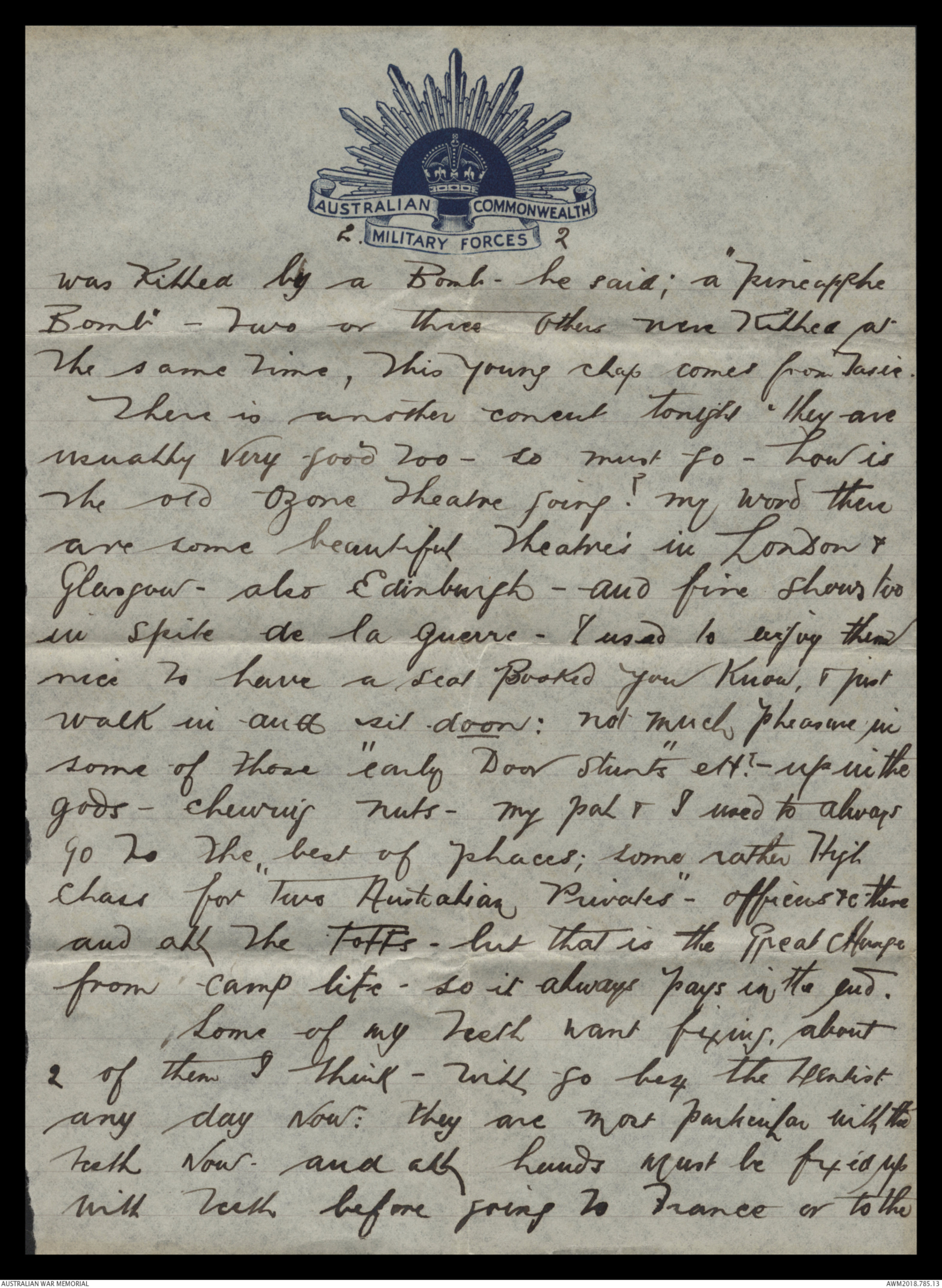 Class for "two Australian Privates" -officers &c there