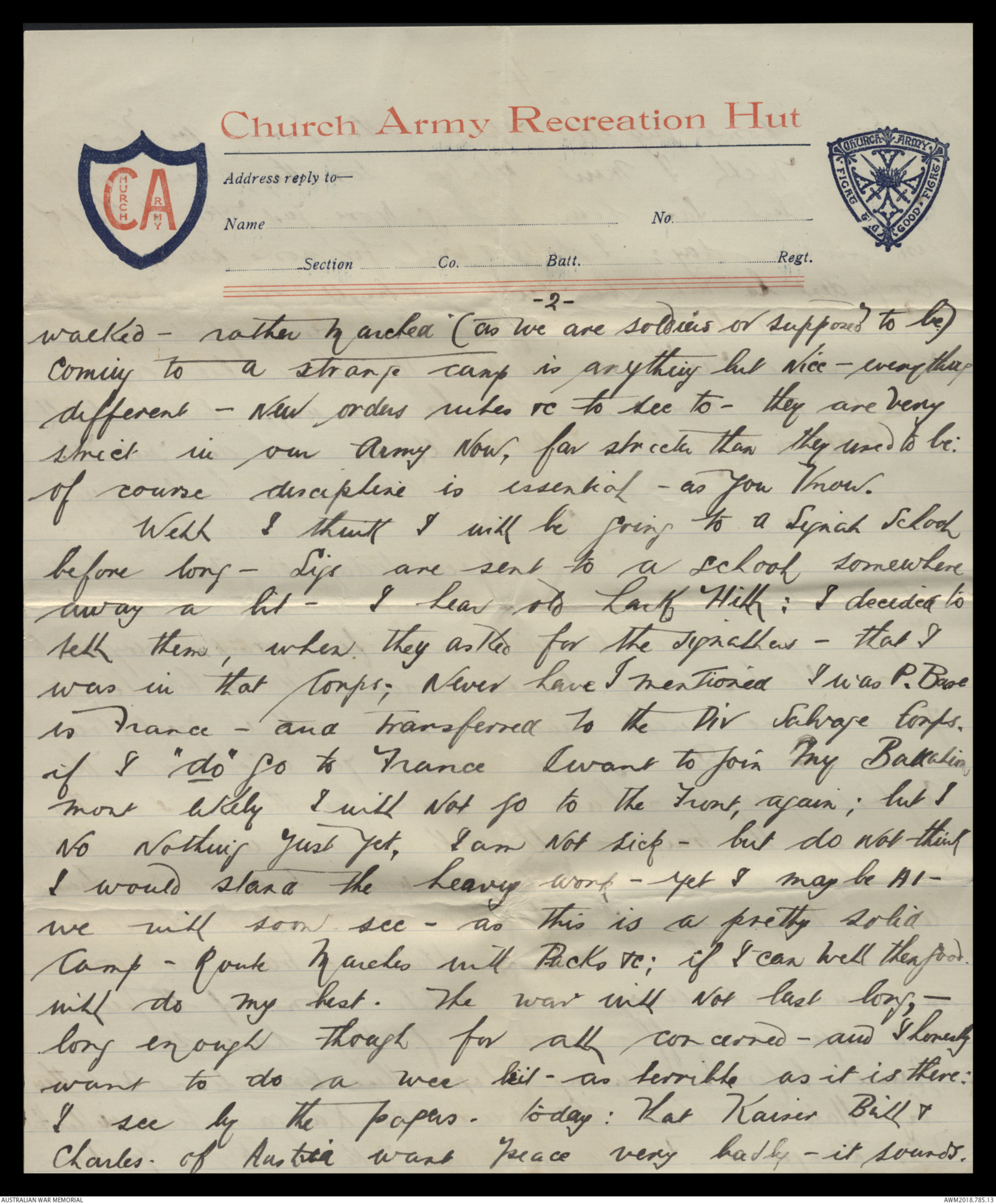 here in this Aussie camp this morning" the war &c is