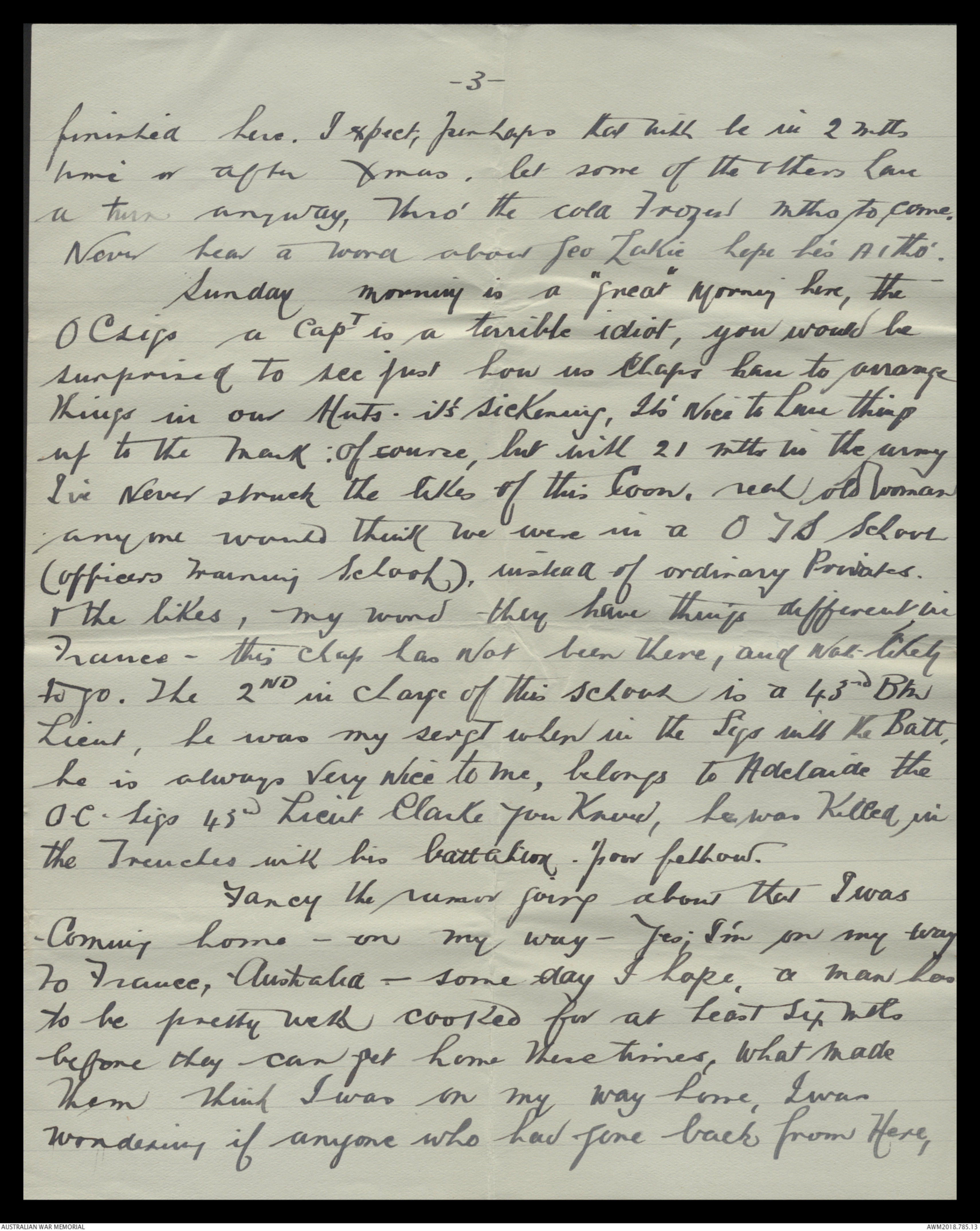 O.C. Sigs 43rd Lieut Clarke you know, he was killed, in