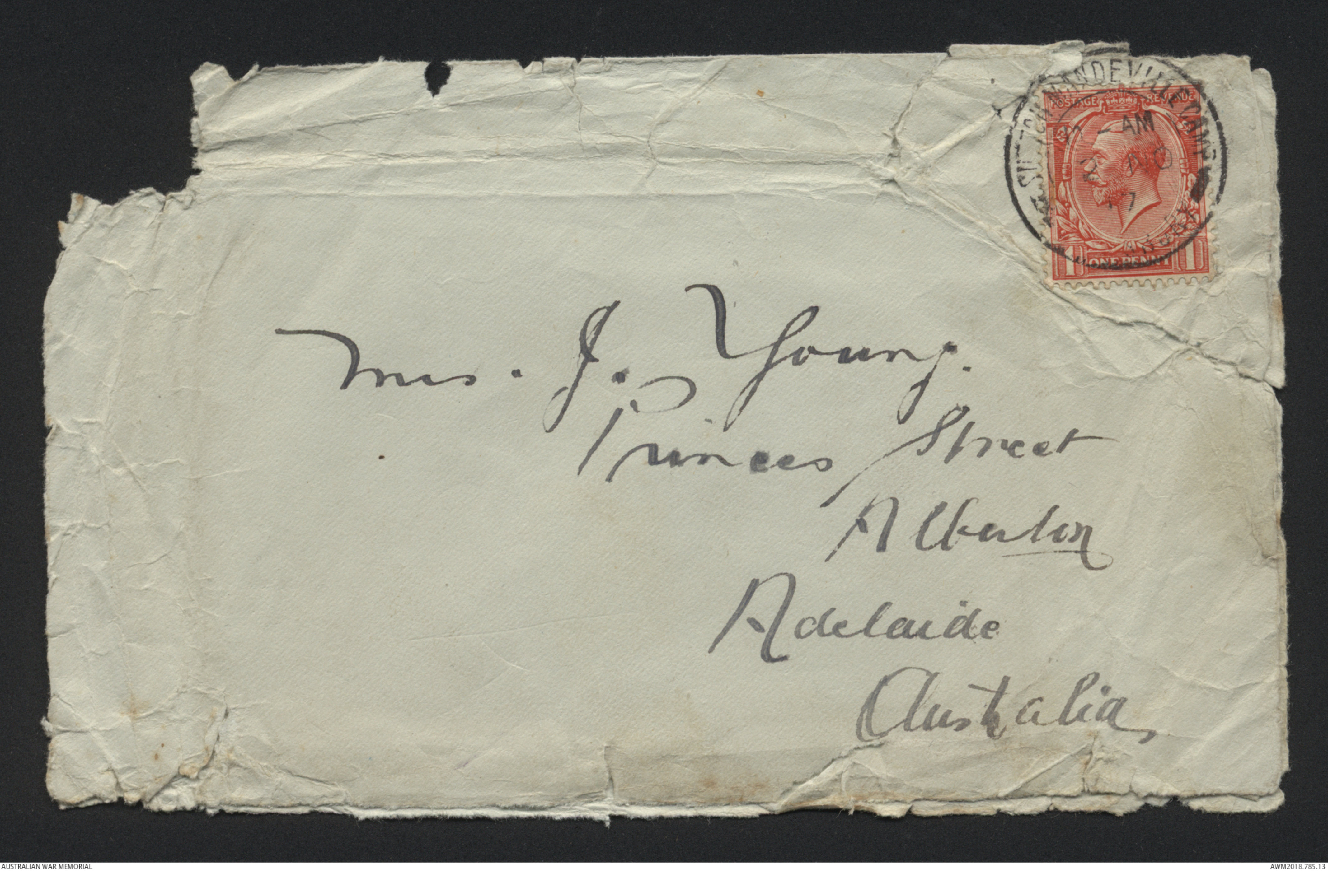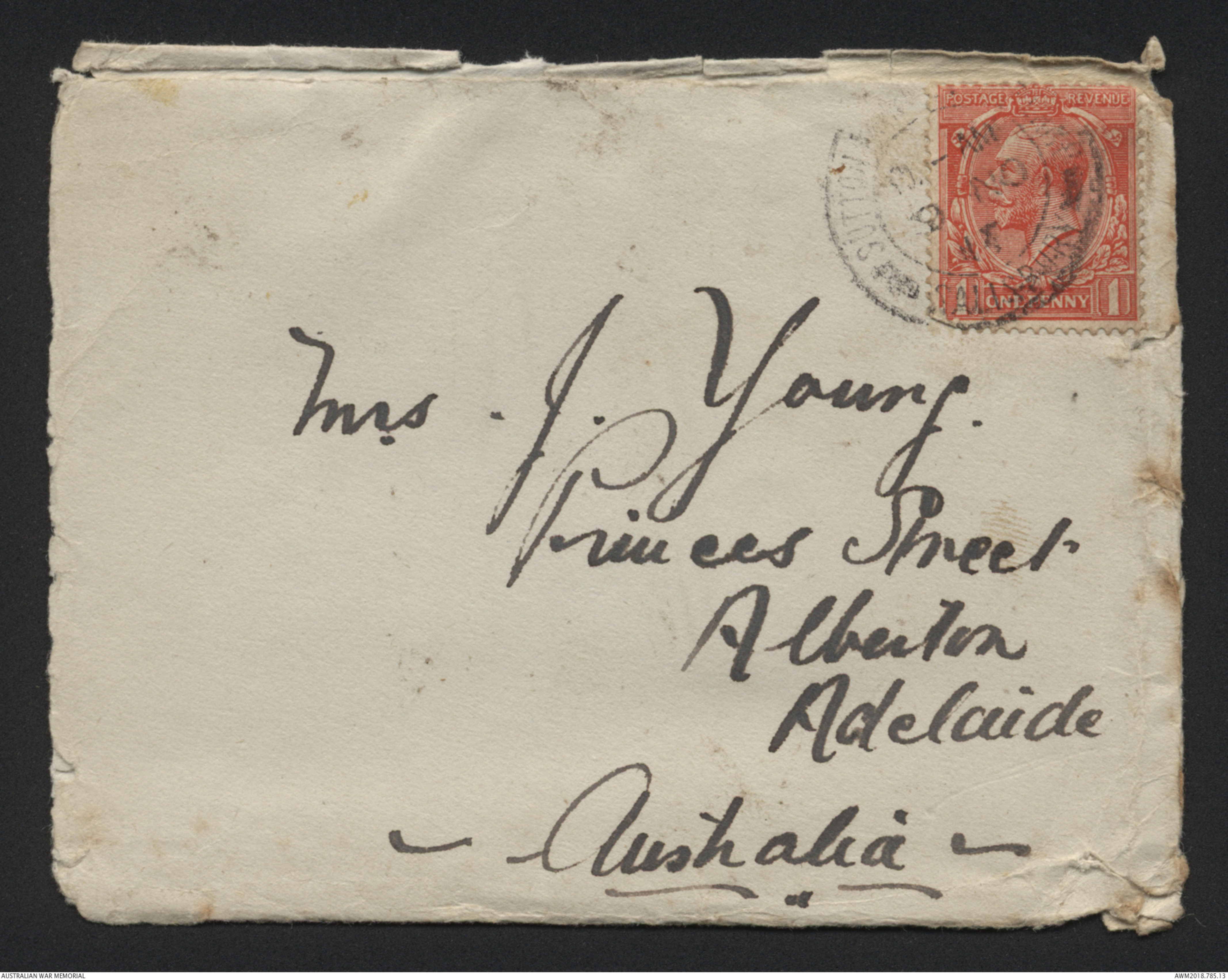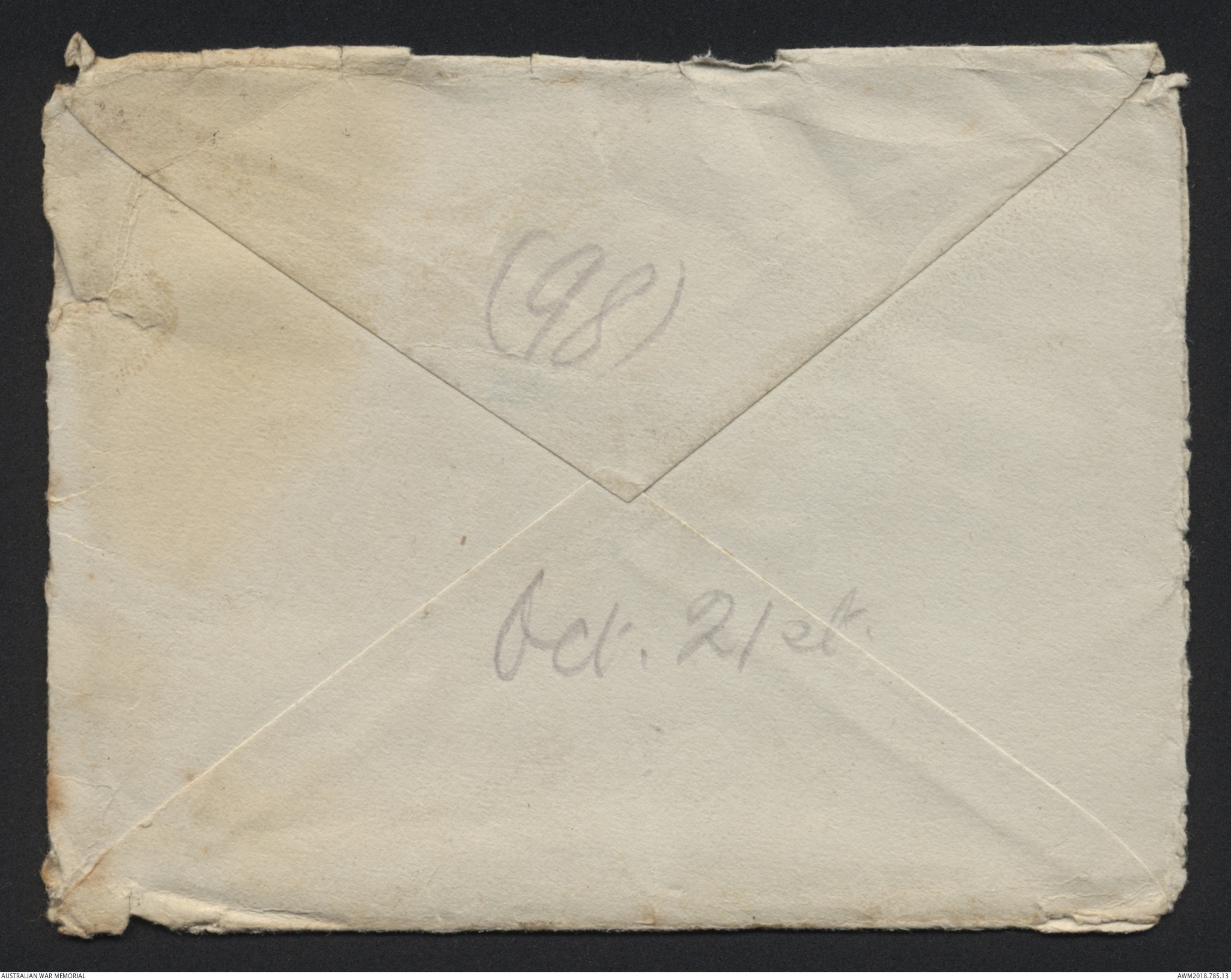 Rear of envelope ~ see original document