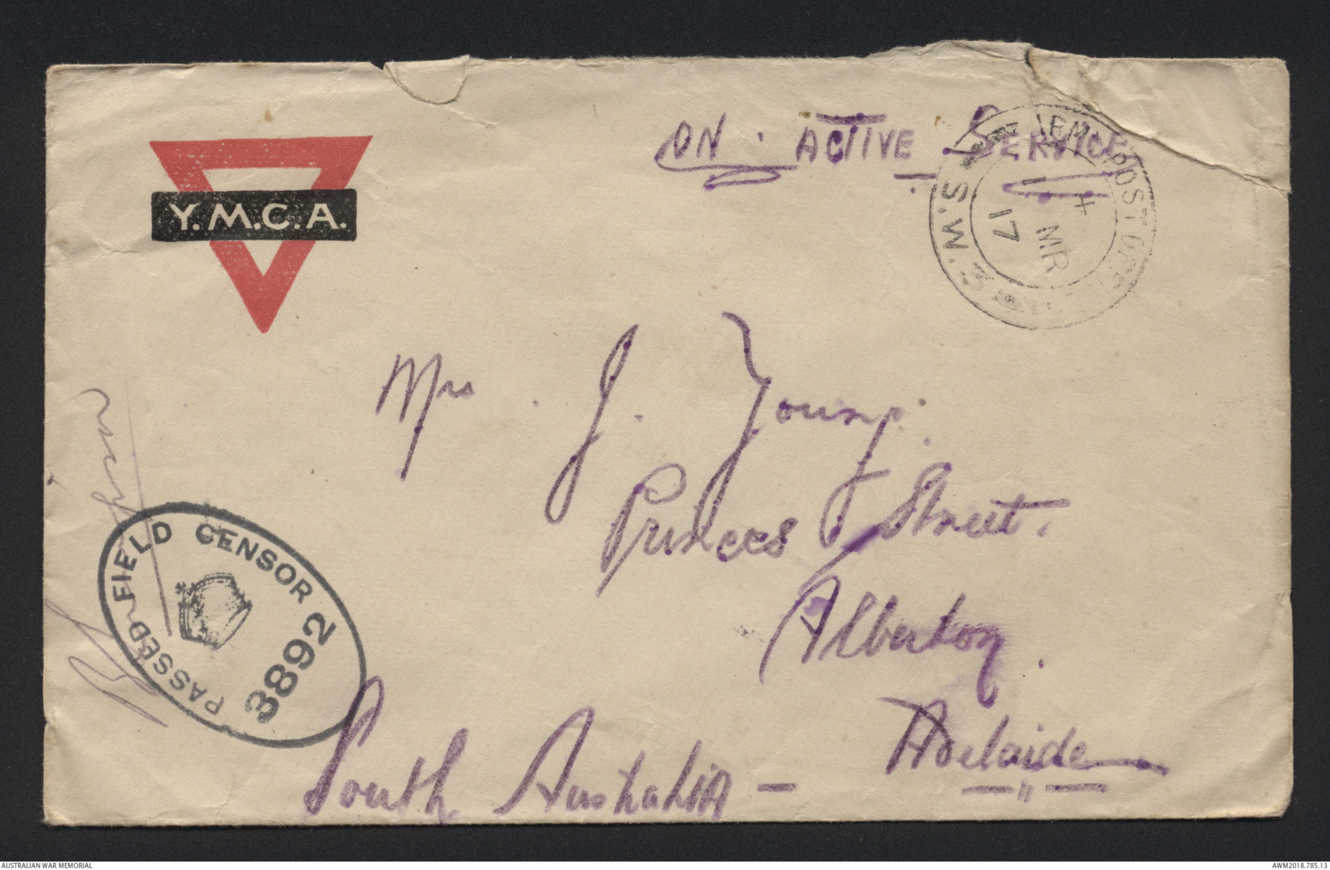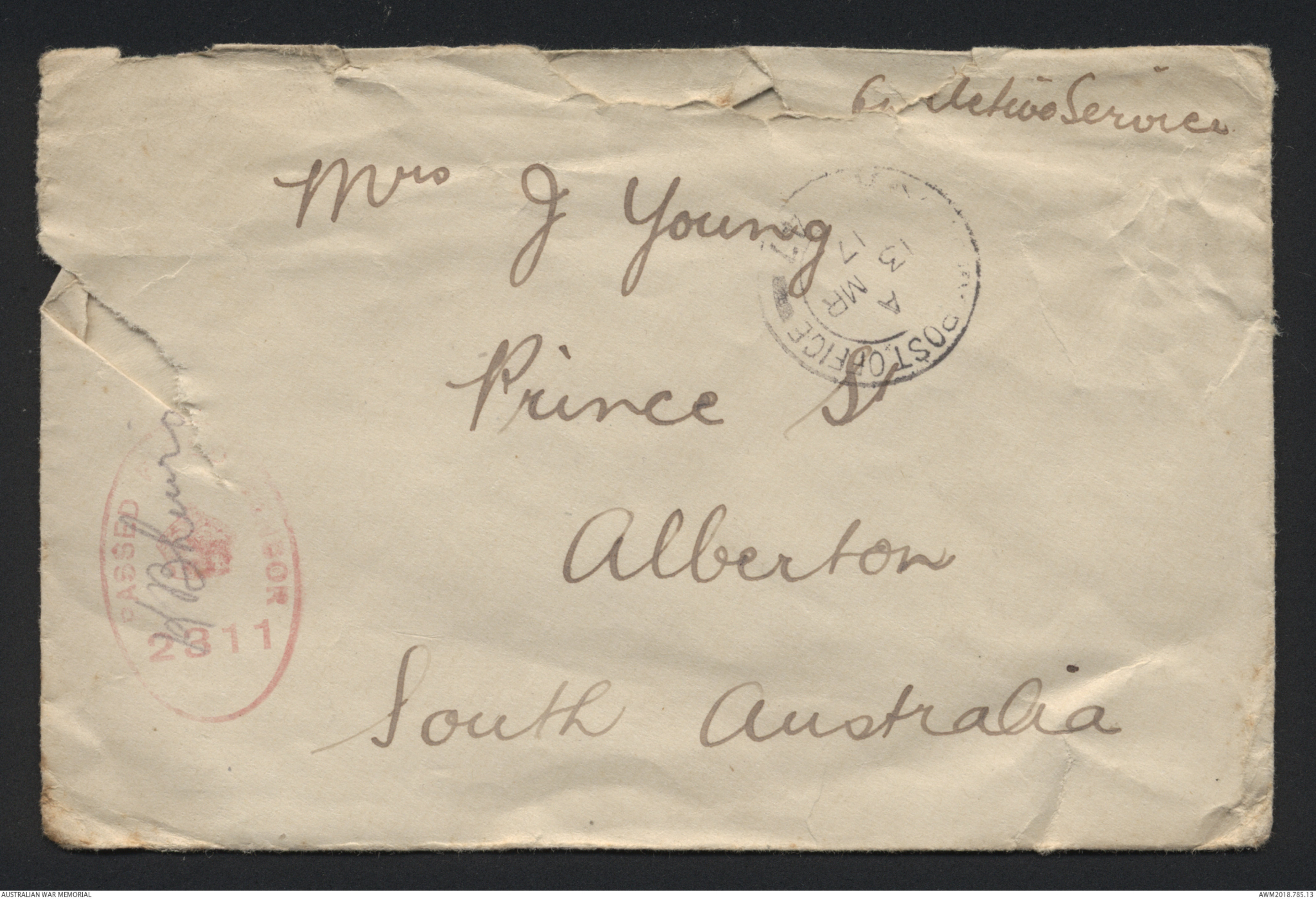 Rear of envelop ~ see original