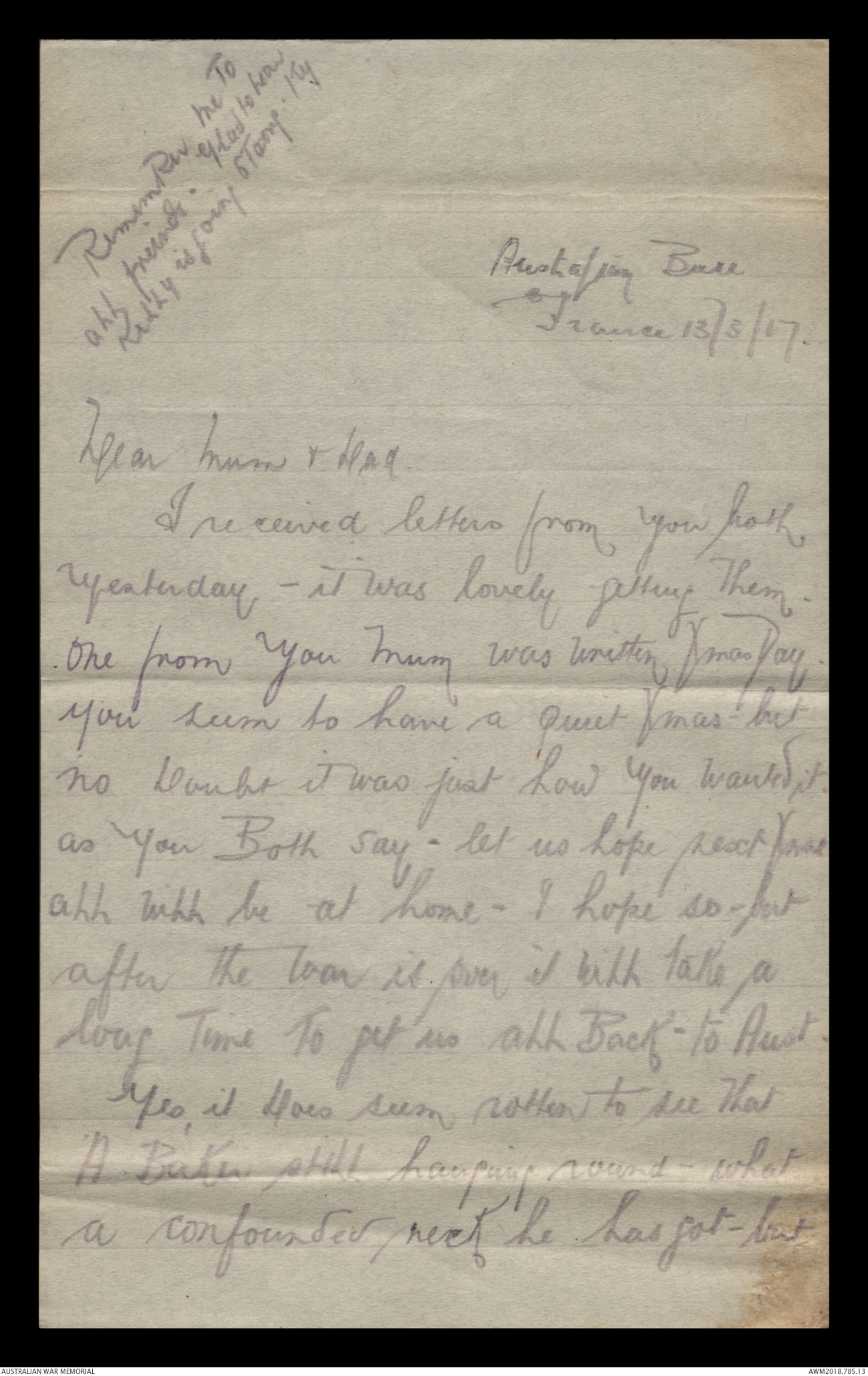 Letters from Kenneth Jack Young to his family, 1917 - Part 5