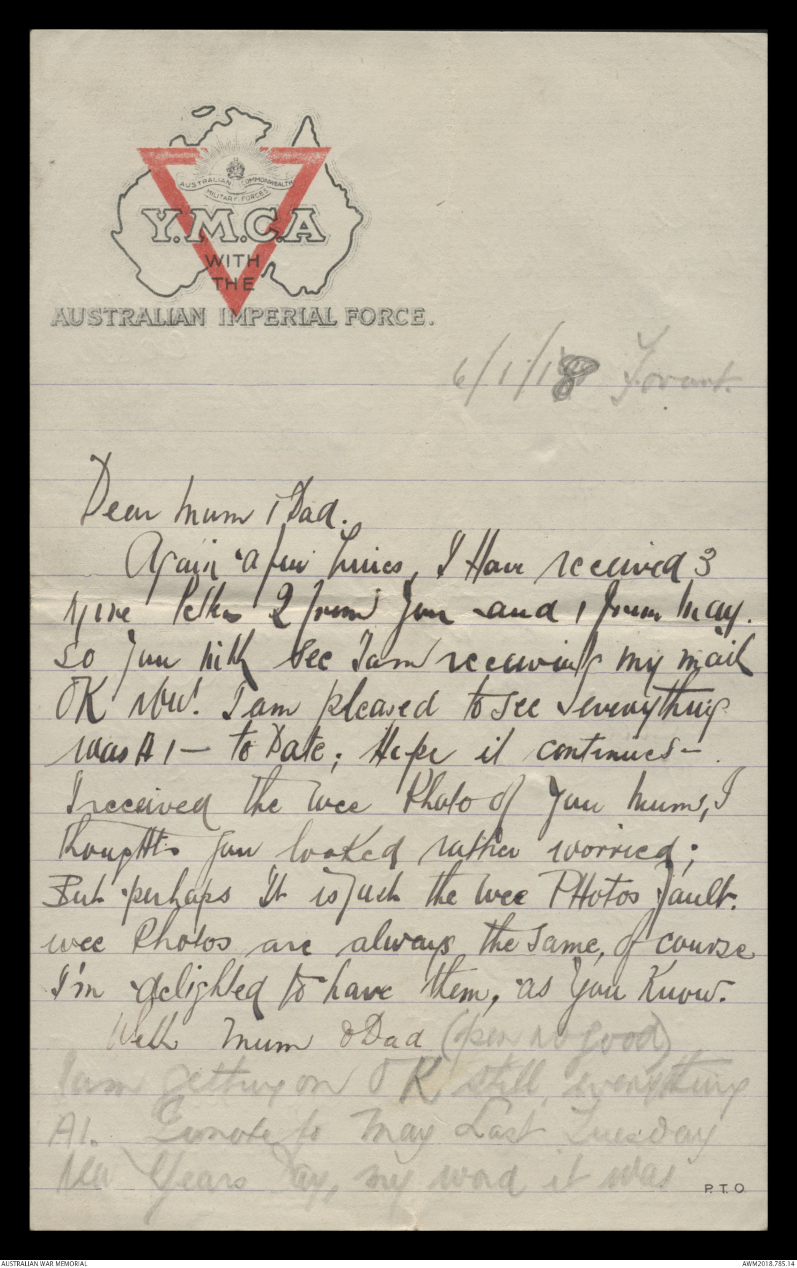 Letters from Kenneth Jack Young to his family, 1918 - Part 1