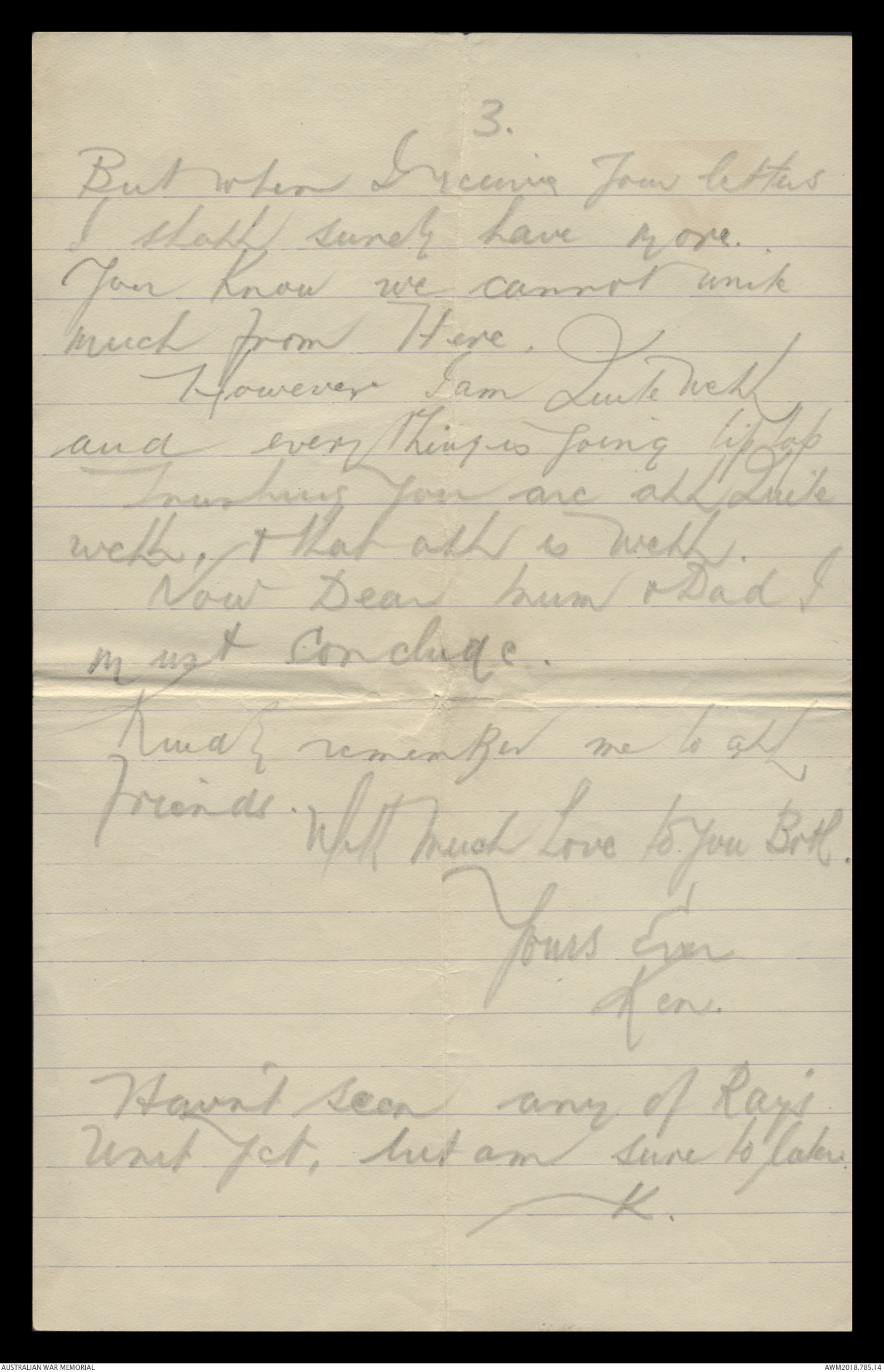 now dear Mum & Dad I must conclude.