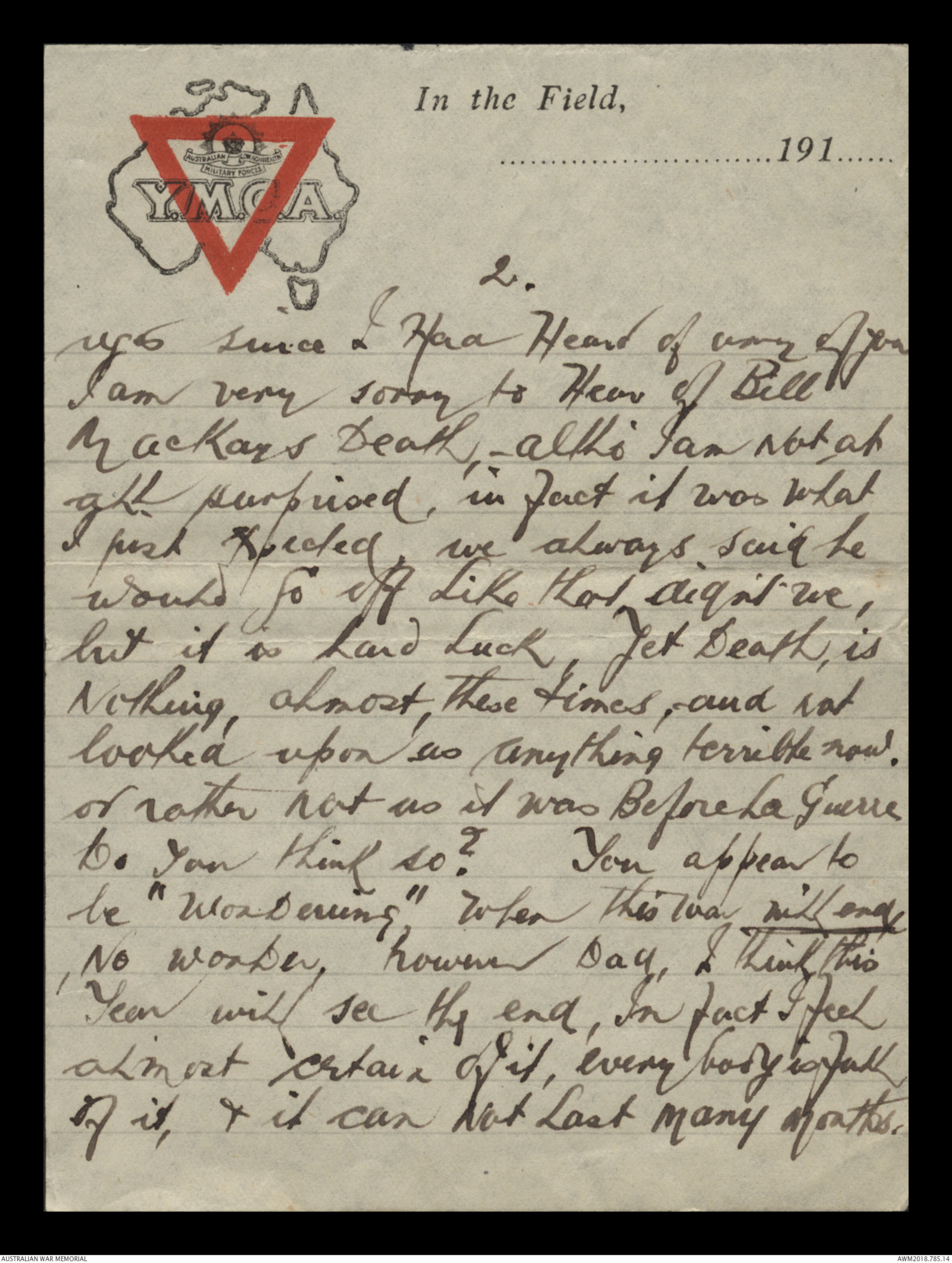 Mackays death - altho' I am not at
