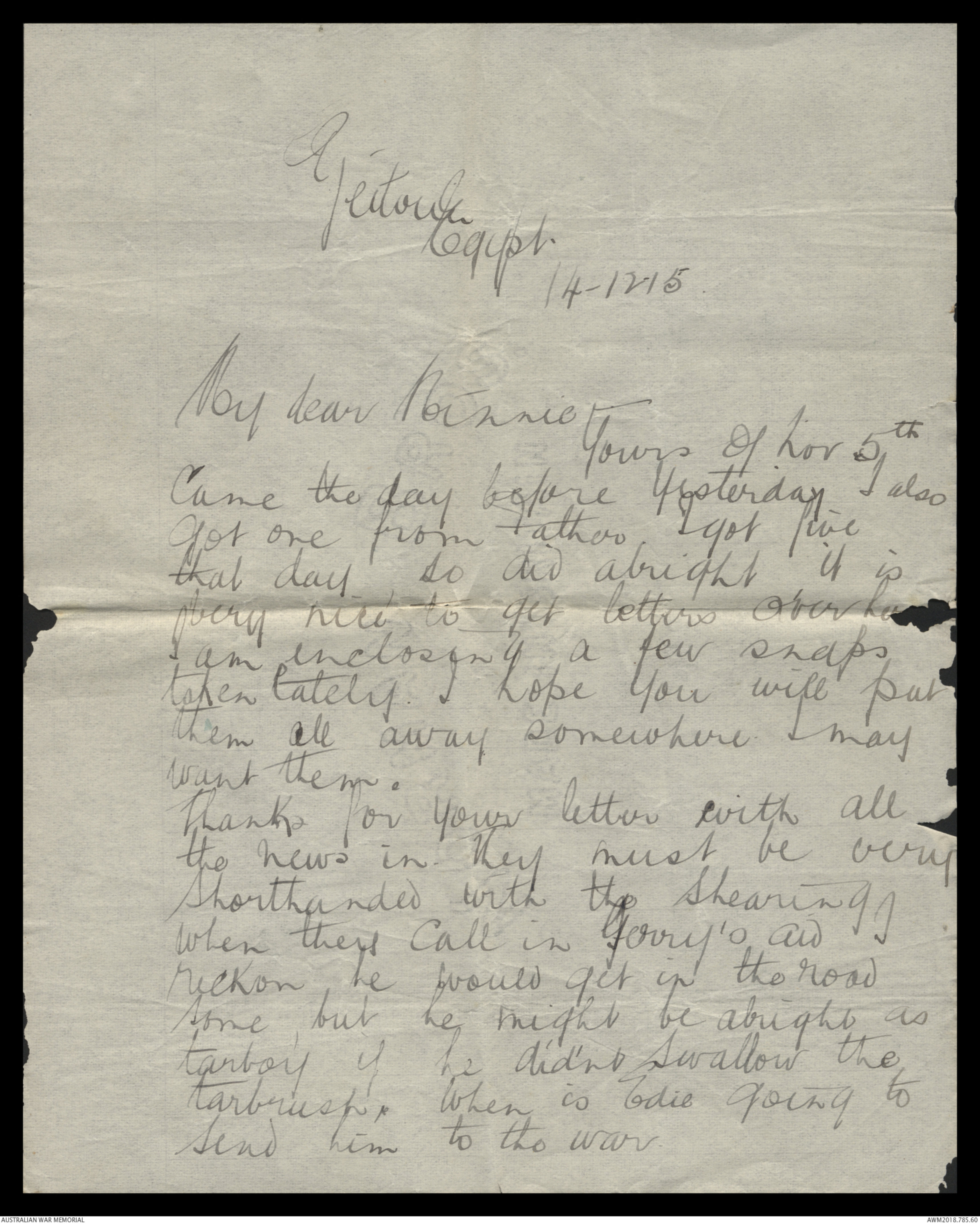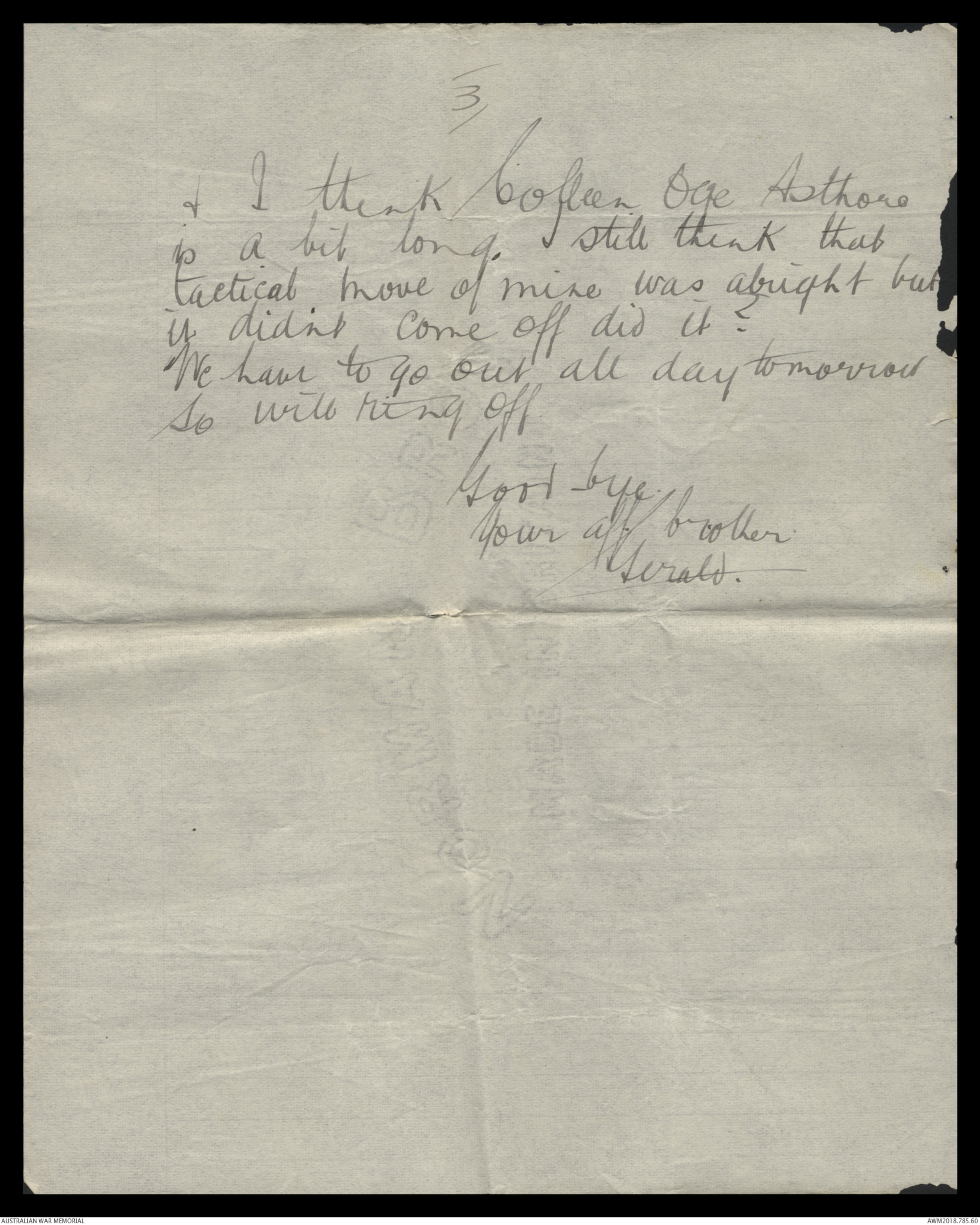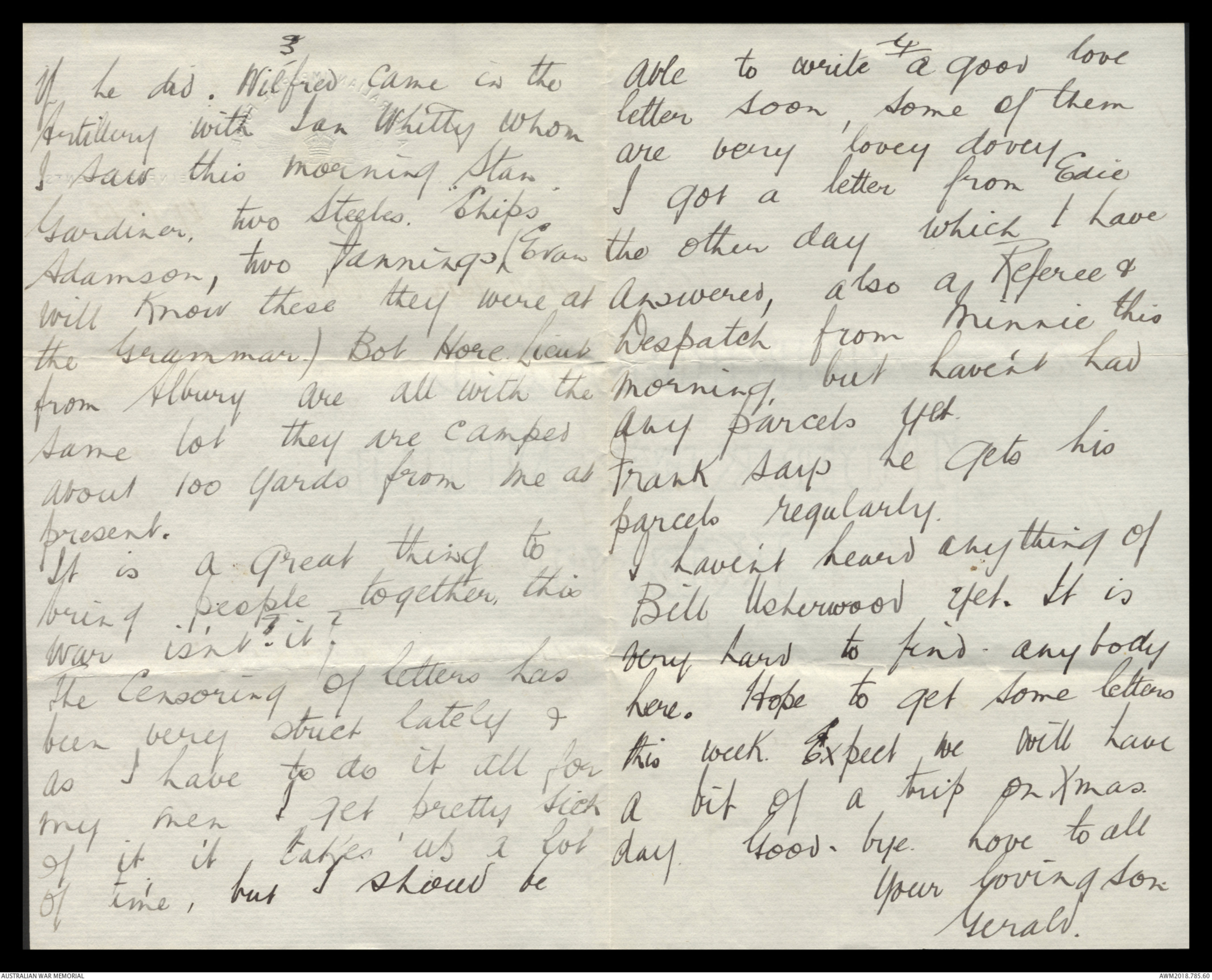 Letters from David Gerald Evans to his family, 1915 - Part 4